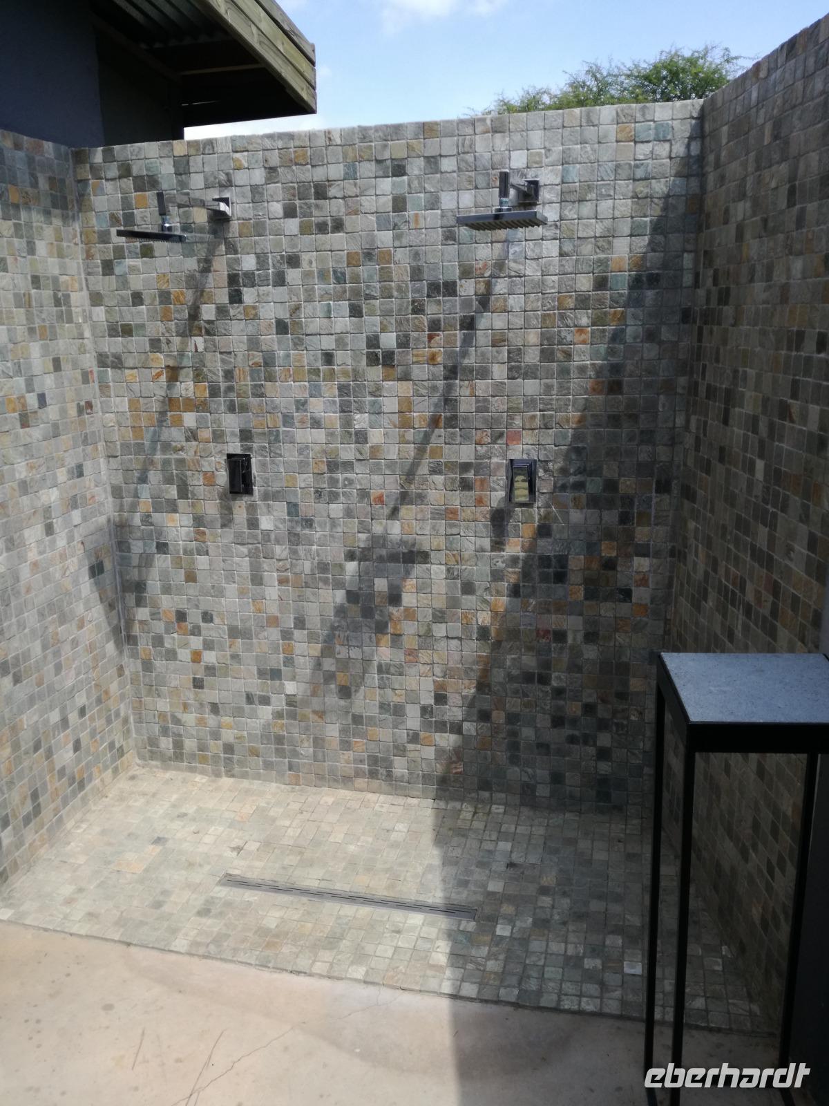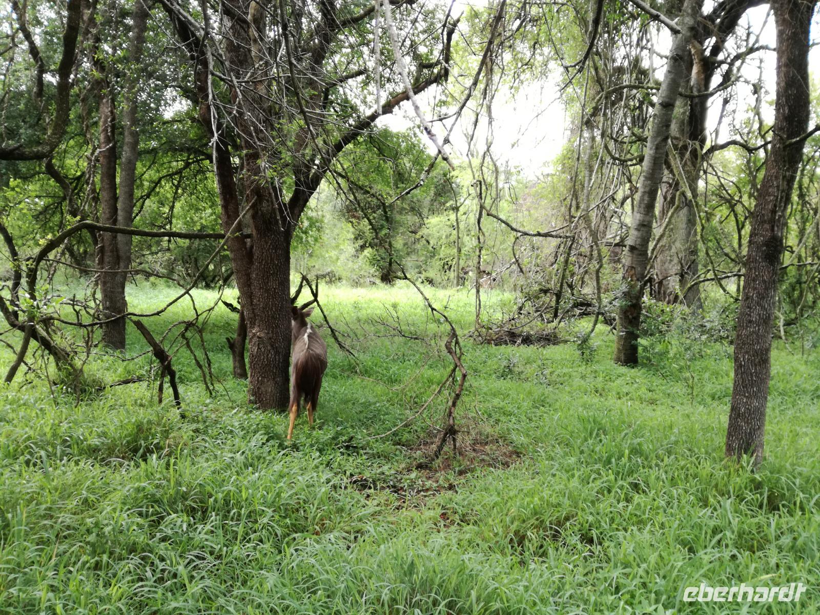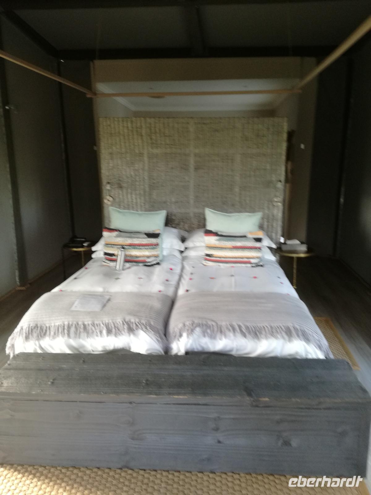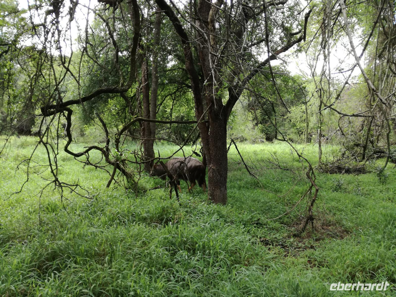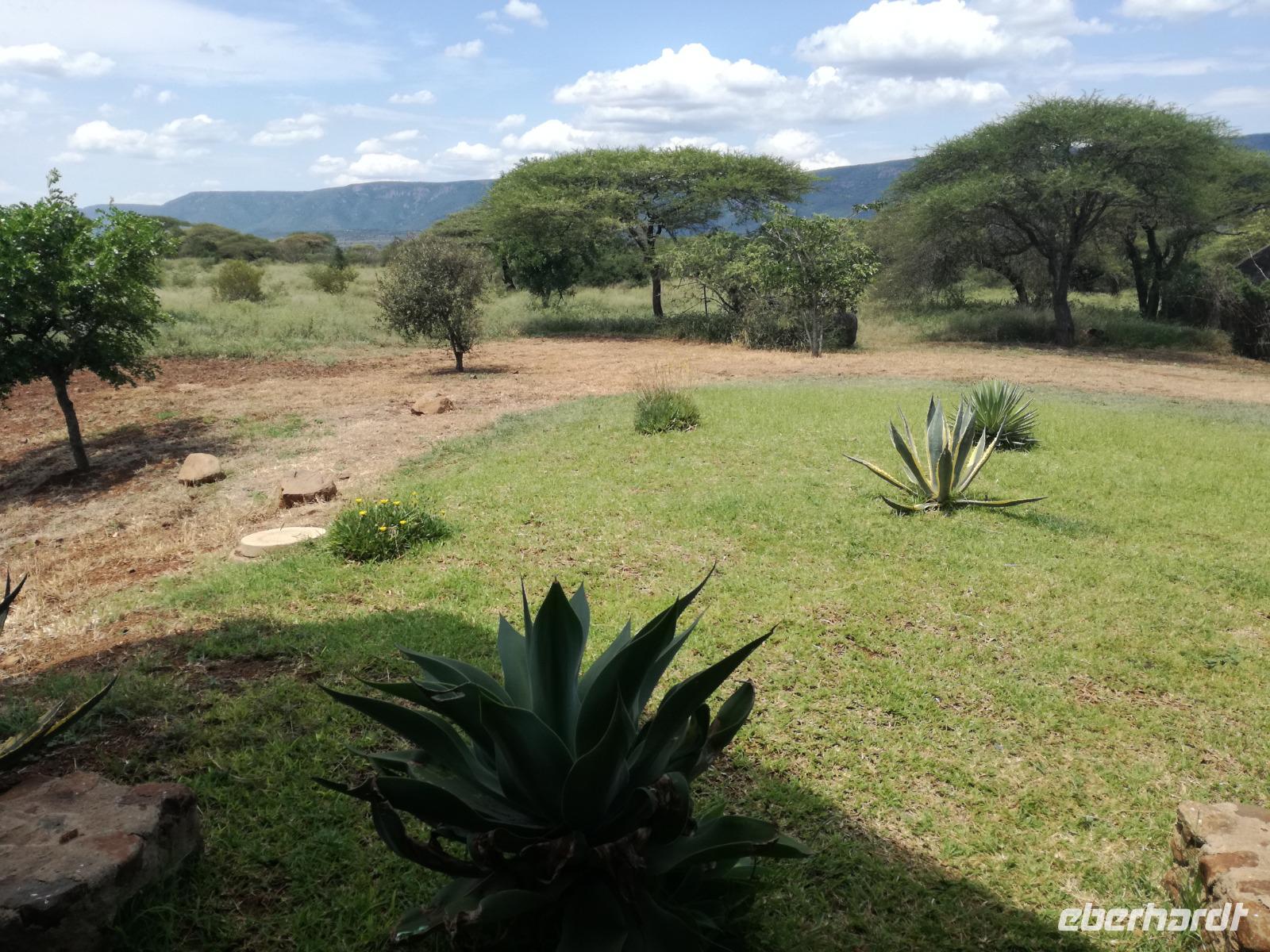 Heute Morgen starteten wir etwas früher in den Tag. Nach dem Frühstück brachen wir auf in Richtung Swaziland. Auf dem Weg erklärt uns Sonet einiges über Land und Leute und über das unabhängige Königreich Swaziland. Um die Mittagszeit überquerten wir die Grenzen von Südafrika nach Swaziland bzw. Königreich Eswatini wie es seit 2018 offiziell heißt. Das Königreich wird seit 1986 vom König MSwti III und er gilt als der letzte absolutitischer Monarch Afrikas. Insgesamt hat der 50 Jährige 19 Ehefrauen und ca. 30 Kindern. Aber wir waren ja nicht wegen dem König gekommen, sondern wir wollten den Mkhaya Game Reserve besuchen. Nach einer kleinen Wartezeit erreichten uns endlich die zwei Jeeps. Das Gepäck blieb beim Bus und wir reisten nur mit Handgepäck ins Stone Camp. Nach einem kurzen Einschreiben wollten wir unsere Pirschfahrt beginnen. Allerdings standen plötzlich zwei Breitmaulnashörner vor uns. Schnell zuckten wir unsere Kameras und hatten somit nach dem Büffel das zweite Mitglied der Big 5 gesehen. Während diese Nashornart im Nationalpark weit verbreitet ist, werden Spitzmaulnashörner eher selten gesehen, da sie sich hauptsächlich im Gebüsch verstecken. Wie der Name bereits verrät, unterscheiden sich die Arten hinsichtlich der Form ihres Mauls. Während das Breitmaulnashorn mit seinem breiten Maul das Gras am Boden frisst, rupft das Spitzmaulnashorn mit der Oberlippe die Blätter von den Ästen. Mit einer Vielzahl an Nashornfotos geht unsere Safari auch schon weiter. Die Gruppen fahren auf unterschiedlichen Routen durch das Reservat. Wir sehen Giraffen, Zebras, Nyalas, "Hippos" und verschiedene Vogelarten. Allerdings spielte uns plötzlich das Wetter einen Strich durch die Rechnung. Plötzlich begann es zu regnen und Gewittern. Schnell bekamen wir Ponchos und fuhren in Richtung Camp. Gegen 18.00 Uhr passieren wir die Einfahrt zum 2,5-Sterne-Stone Camp im Mkhaya Game Reserve. Zuerst werden uns die Unterkünfte gezeigt. Wir werden die Nacht im halboffenem Steinhäuschen mit halbhohen Steinmauern verbringen. Es gibt keinen Strom und das Handgepäck ist am besten in der Truhe zu verstauen, bevor neugierige Affen kommen und einzelne Dinge stibitzen. Das Bett ist von einem Mosquitonetz umgeben. Das Camp ist komplett mit Lichtern und Kerzen beleuchtet. Mit Schirmen gingen wir zunächst in unsere Steinhütten. Zum Abendessen wurde der Regen etwas weniger und wir wurden mit einem tollen Abendessen verwöhnt. Dazu gab es leckeren Wein, Bier und natürlich unser Lieblingsgetränk der Reise - Amarula Wodka. Nach dem Essen ging es in die Hütten und wir verbrachten eine aufregende Nacht in den offenen Steinhäusern.