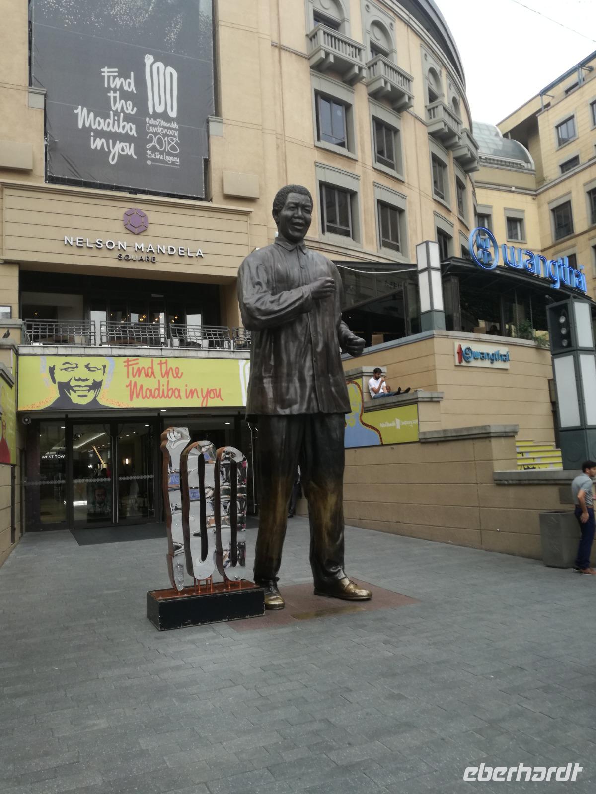 Nach dem späten, sehr guten Frühstück checkten wir aus und unternahmen eine Rundfahrt durch Johannesburg. Zunächst besuchten wir, auf Wunsch vieler Reisegäste, ein großes Souvenirgeschäft, wo fleissig und ausgiebig geshopt wurde. Danach fuhren wir durch das alte und neue Johannesburg, über Nelson-Mandela-Brücke und machten einige Fotostopps, auch am großen Fußballstadion, Sokker City. In Soweto bummelten wir über die bunte Vilakazi Straße. Endpunkt unsere City Tour war Sandton. Hier, um den Mandela Square gibt es ein riesiges Einkaufszentrum mit vielen trendigen Cafes und Restaurants, wo wir die letzte, individuelle Pause vor unserem Abflug einlegten. Das Hard Rock Cafe war wie immer ein beliebter Treffpunkt. Anschließend fuhren wir zum Flughafen von Johannesburg und verabschiedeten uns. Am Abend startete unser Flieger nach Deutschland nach Frankfurt. Die Wartezeit im Flughafen verbrachten wir jagen von letzten Souvenirs.
