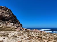 Der letzte Tag ist angebrochen, aber wir haben noch einige Highlights auf dem Zettel. Mit unserem Reiseleiter Thomas fahren wir zunächst zum Cape Point, der Beginn des Nationalparks Tafelberg am Kap der Guten Hoffnung. Auf der Strecke fahren wir an der eleganten und sonnigen Küste Kapstadts entlang. Die Südafrikaner genießen am Strand das schöne Wetter. Atemberaubende Ausblicke bieten sich uns entlang der Panoramastraße Chapman's Peak Drive, die von Hout Bay nach Noordhoek führt. Sie gehört zu den schönsten Straßen der Welt. Wir kommen vorbei an breiten Dünen und weißen Stränden. Kurz vor dem Eingang zum Cape Point besuchen wir eine große Straußenfarm. Im Park stoppen wir an der Aussichtsplattform am Cape Point und fahren mit der Standseilbahn hoch zum Alten Leuchtturm, der auch zu Fuß erreichbar ist. Oben angelangt erfreuen uns herrliche Aussichten auf das Kliff am Südende der Kap-Halbinsel. Nach einer kurzen Autofahrt erreichen wir anschließend das absolute MUSS der Tour auf der Kaphalbinsel: Das Kap der Guten Hoffnung. Viele Besucher tummeln sich hier bereits, um das berühmte Foto am Schild des südwestlichsten Punkts Südafrikas zu schießen. Wir tun es ebenso.