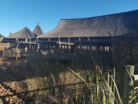 Um 17 Uhr sind wir mit unserem Fahrer Abie zur Safari verabredet. Insgesamt haben wir in zwei Tagen vier Pirschfahrten vor uns. Wann werden wir die Big Five sehen? Da es sich um einen privaten Wildpark handelt, haben wir eine sehr gute Chance, alle Tiere während unserer Anwesenheit anzutreffen. Der Wildpark bietet auch Tieren Obdach, die wegen ihrer früheren Haltungsform allein nicht mehr in der Wildnis überleben könnten. Dies trifft auf die vier Löwen zu, die wir an mehreren Tagen entspannt im Park ruhen sehen. Sie werden gefüttert und stellen daher keine Gefahr für Besucher oder andere Tiere dar. Zunächst treffen wir auf Cheetahs. Da es schon später am Tag ist, ruhen die zwei eleganten Wildkatzen gemütlich unter einem Strauch. Hier und da tauchen Ibisvögel auf. Das Wildgebiet ist sehr groß, und die Tiere können sich frei bewegen. Wir sehen eine Gruppe von Zebras, Perlhühner, eine Gnu-Gruppe, Antilopen, Bussarde und afrikanische Büffel mit Kälbern. Zeit für einen Sundowner, aber heute ist es etwas zu kühl für ein kaltes Bier oder einen Cider, daher machen wir keine lange Pause und fahren weiter Richtung Lodge zurück. Wir werden mit einem Lagerfeuer überrascht, das tut gut. An der Bar bestellen wir uns ein Getränk und wärmen uns am Feuer auf. Den Abend lassen wir bei einem typisch afrikanischen Menü im Restaurant der Lodge ausklingen.