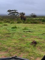 Nach einem kurzen ersten Frühstück begeben wir uns um 7 Uhr mit Abie auf die nächste Pirschfahrt. Zunächst treffen wir auf Büffel, dann auf Elefanten mit den für Afrika typischen riesigen Ohren. Heute früh sind wir in warme Ponchos eingepackt. Wir sehen Nashörner, Antilopen, Zebras, Strausse und gazellenartige Springböcke (afrikaans: Springbok). Wir erleben, wie die zwei Cheetahs ein Auge auf die Strausse werfen. Eine Verfolgungsjagd beginnt. Am nächsten Tag erfahren wir, dass die Cheetahs einen Strauss erlegen konnten, nachdem ihnen zunächst die Flucht gelungen war. Die Nashörner grasen in einer größeren Gruppe im Park, sie sehen beeindruckend aus. Im neuen Waldgebiet des Parks treffen wir heute auf die Giraffen. Sie haben eine ganz besondere Färbung in diesen Gefilden. Im Anschluss an die Pirschfahrt nehmen wir das reichhaltige Frühstück ein. Tolle Fotos konnten wir machen. Wer weiß, was die nächste Pirschfahrt am Nachmittag noch für uns bereit hält.