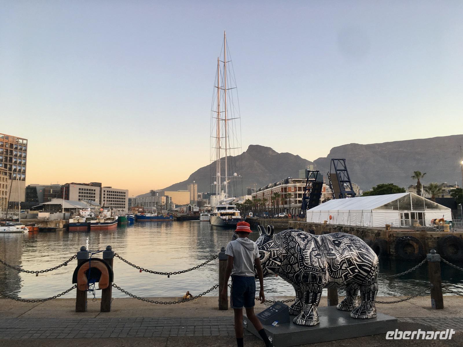 Zurück nach Kapstadt, genießen wir den Abend an der Waterfront ganz individuell. Etwas einkaufen, ein wenig bummeln und schauen, dies und jenes Souvenir erstehen. Ein schöner Tag geht zu Ende.
