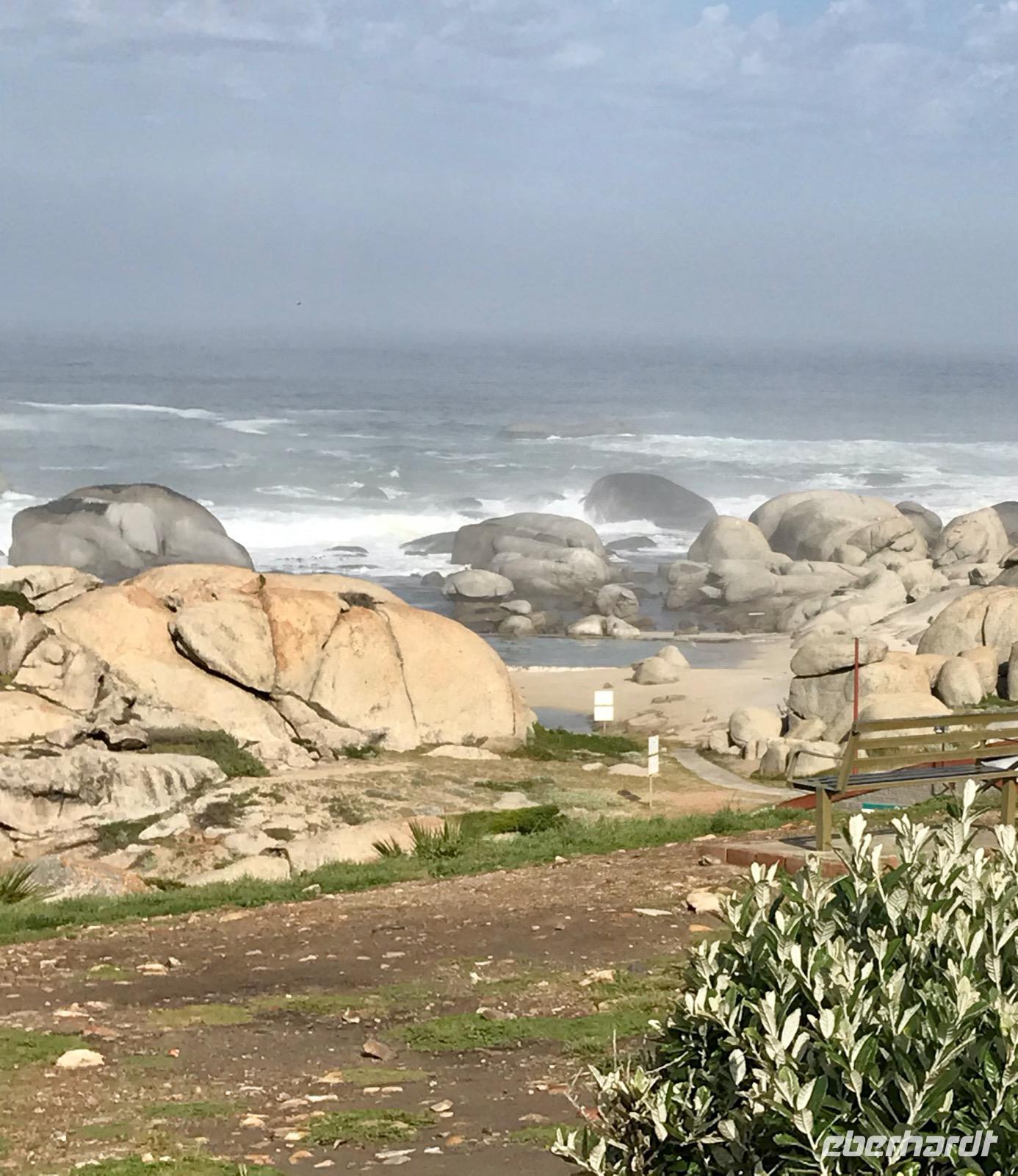 Anschließend geht unser Ausflug weiter vorbei an Simon's Town in der False Bay, benannt nach Simon van der Stel, zum Boulders Beach. Hier besuchen wir die geschützte Kolonie von über 2.100 Brillenpinguinen. Von einem Holzweg aus kann man die Brutplätze sehen und den kleinen Kerlen zusehen, wie sie geschickt am Strand entlang watscheln.