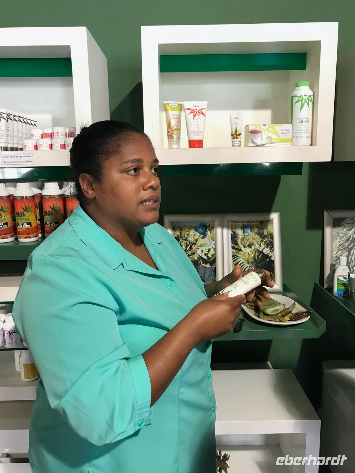 Wir verlassen heute die Kapregion und setzen unsere Rundreise in Richtung Norden, entlang der Ostküste des Landes fort. Wir fahren zunächst entlang der False Bay, dann auf der Fernstraße N2 nach Mossel Bay, der Muschelbucht. Hier fanden die holländischen Seefahrer besonders viele Muscheln, Austern und Langusten. Bevor wir jedoch die Mossel Bay erreichen, besuchen wir eine Aloe-Farm am Wege. Hier erklärt uns eine freundliche Dame die Herstellung und die Produkte aus Aloe ferox, der Kap-Aloe oder Bitteraloe, und welche Wirkung sie auf unsere Gesundheit haben. Wir sind beeindruckt, was man alles heilen kann und wie jung wir bald wieder werden können, so wir die Ratschläge auch befolgen.
