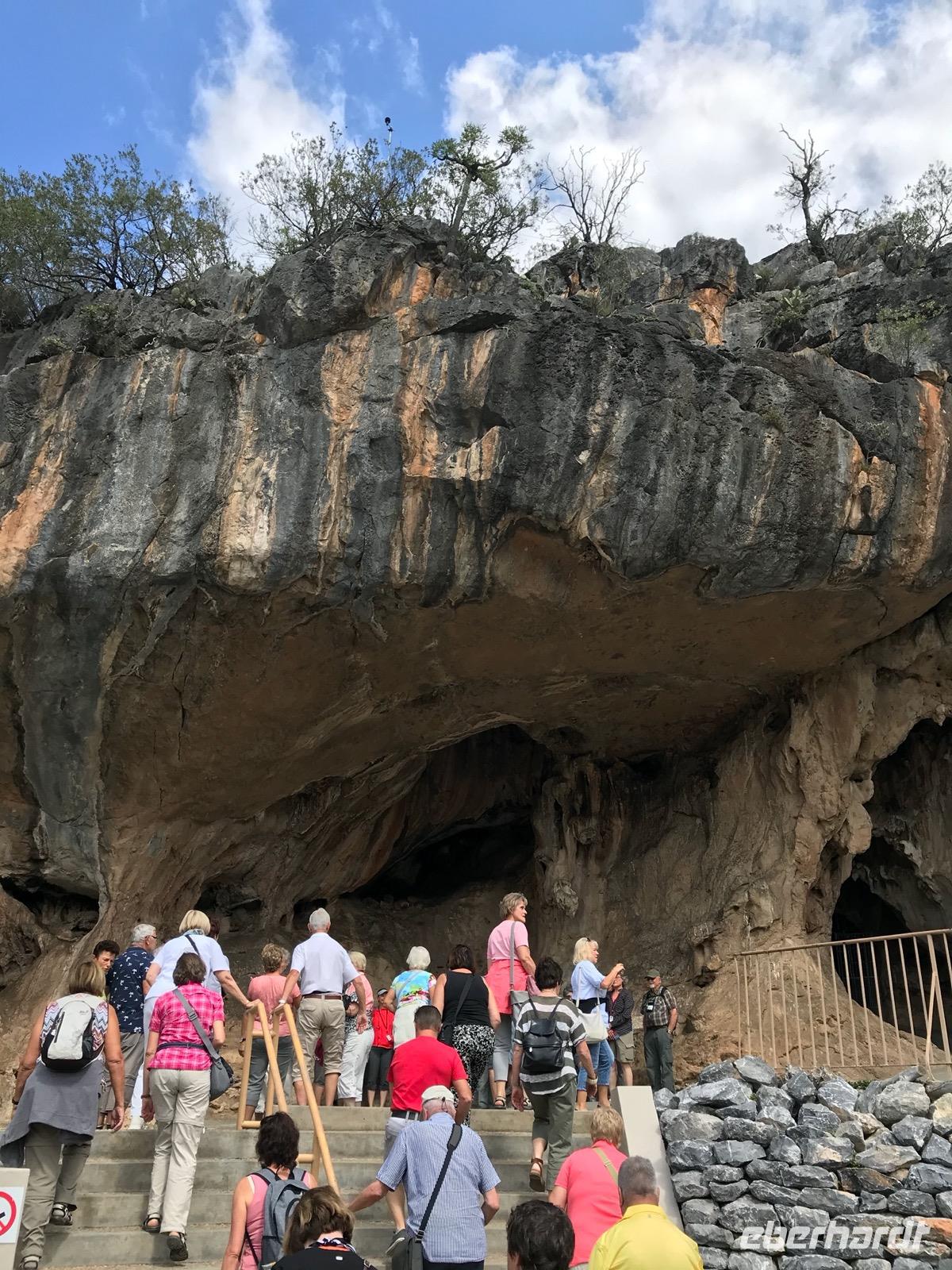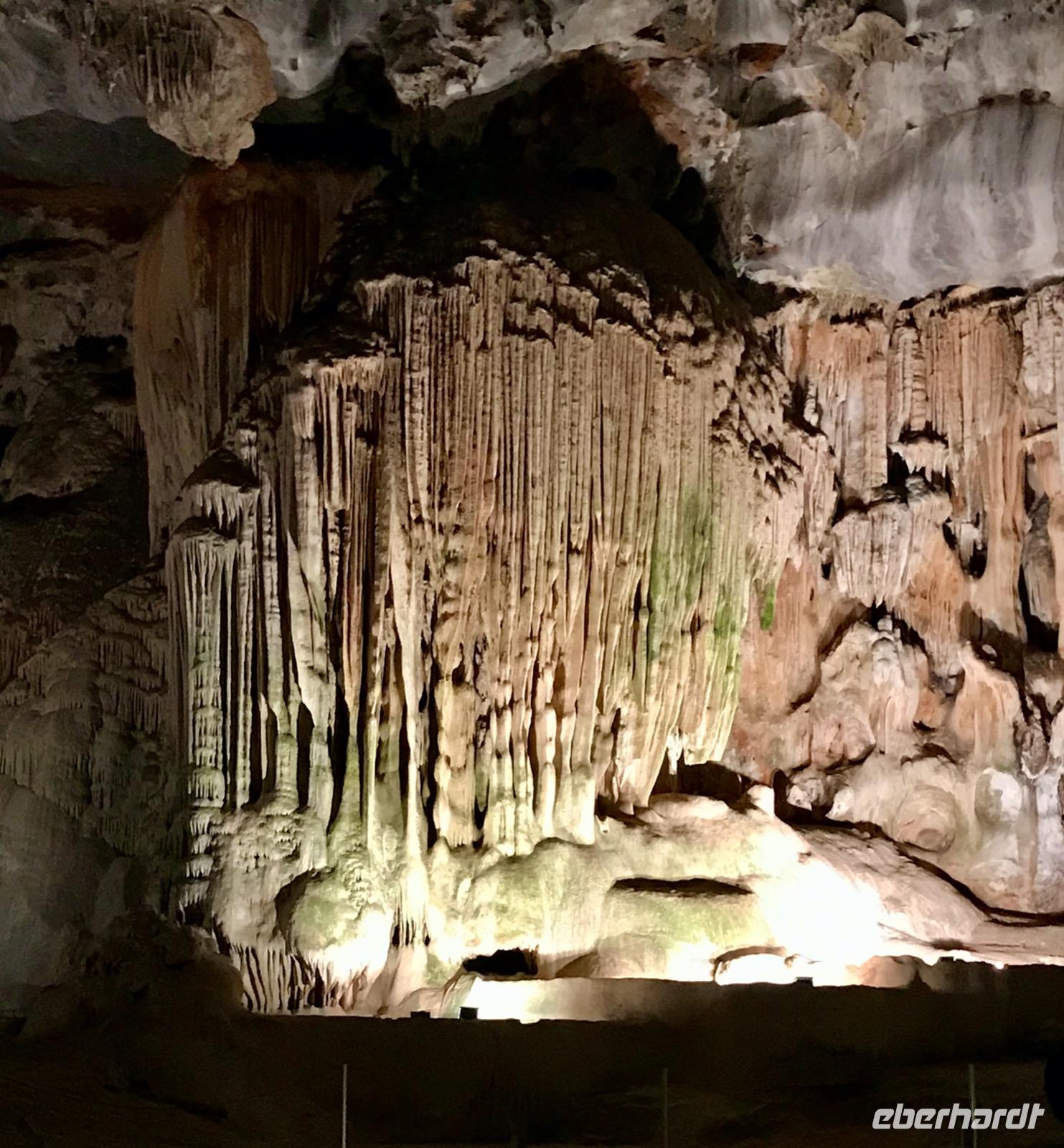 Wir verlassen diesen schönen Ort und begeben uns auf Besichtigungstour in die nähere Umgebung. Zunächst fahren wir hinein in die Swartberge. Hier befindet sich ein unterirdisches Netzwerk aus Räumen und Gängen in den felsigen Bergen. Wir besichtigen die Cango Caves, entdeckt 1780, die zu den größten Tropfsteinhöhlen der Welt gehören. Es wird vermutet, dass der Platz bereits vor 80.000 Jahren besiedelt war. Die Felsformationen im Inneren, bestehend aus Stalaktiten und Stalagmiten, formen sich zu wunderschönen Bildern. Unsere Führerin gewährt uns ein besonderes Highlight. In einem der Hallenräume lässt sie das Ave-Maria erklingen. Welch eine Stimme, welch ein ergreifender Gesang, welch eine beeindruckende Umgebung. Es ist, als ob man einen kurzen Moment in Ehrfurcht erstarren würde...