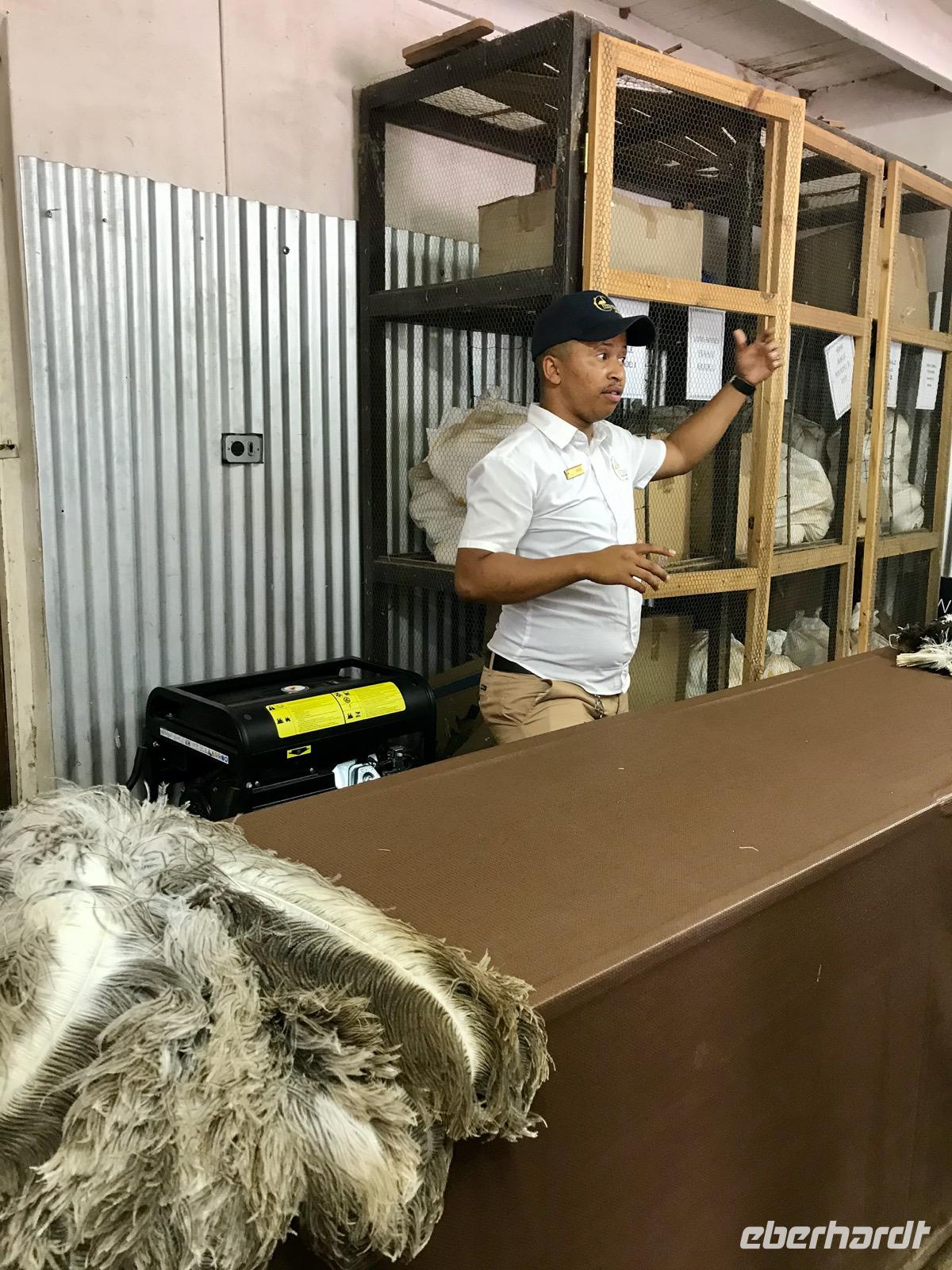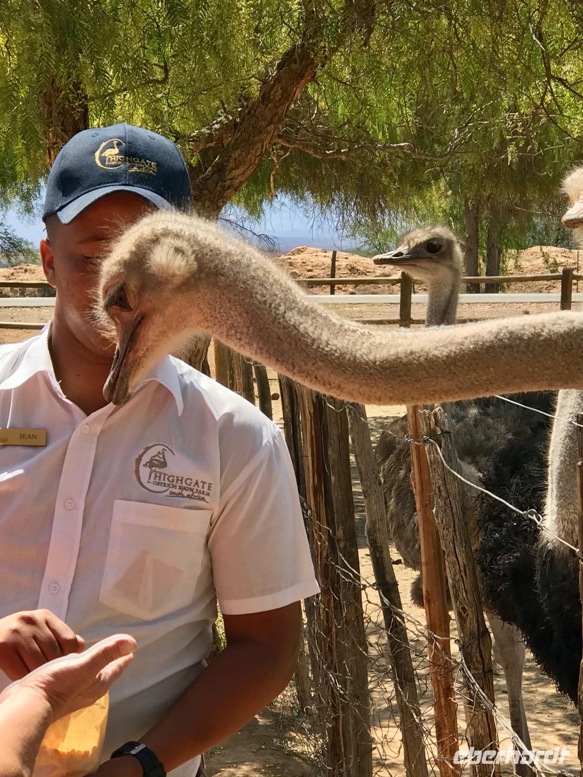 Wir fahren weiter im Straußenland und besuchen die Highgate Straußenfarm. Hier gibt es mehr als 2.500 Strauße. Wir besichtigen die Brutstätten für die kleinen Strauße, sehen uns die großen Strauße an, helfen beim Füttern und wir besuchen das Museum, wo uns gezeigt wird, was man aus dem Tier alles herstellen kann. In der Farm können wir auch zu Mittag essen. Es gibt Straußensteak. Wenn wundert es? Und nach Hause nehmen wir natürlich ein Staubwedel aus Straußenfedern mit.