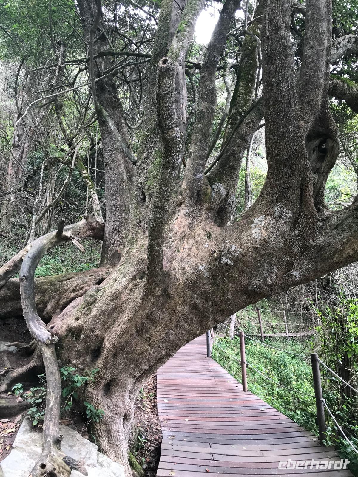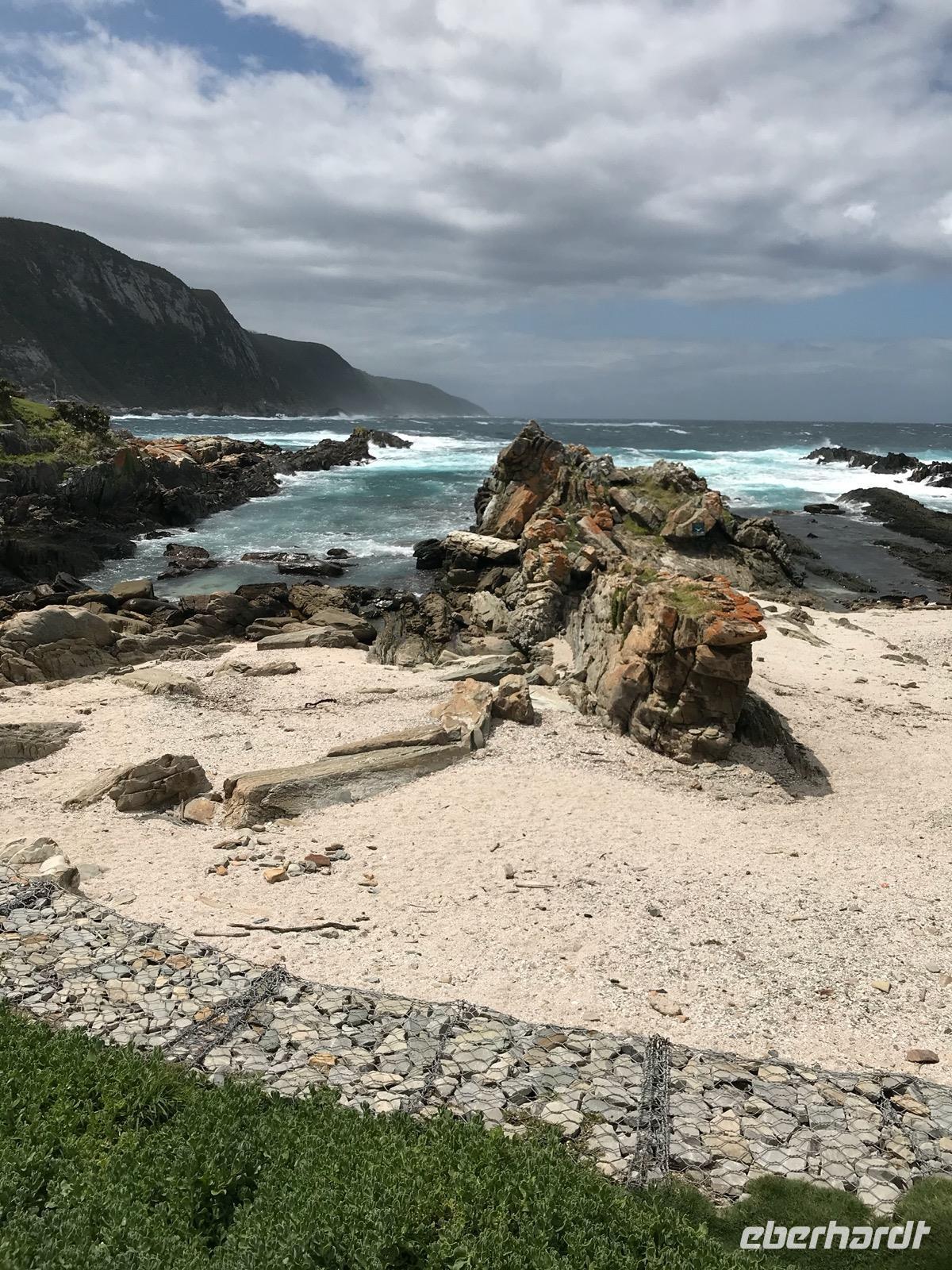 Am Morgen verlassen wir Knysna, das an einer riesigen Lagune liegt. Die Knysna Lagoon wird von zwei Sandsteinfelsenvorsprüngen geschützt. Die Stadt ist von großartigen Urwäldern umgeben. Trotz massiver Abholzungen ist der Regenwald noch vorhanden und beherbergt zahlreiche Baumriesen. Auf Schritt und Tritt kann man die Holzgewinnung in den Wäldern sehen und gleichermaßen werden Jungpflanzungen angelegt. Zu den wichtigsten Industriezweigen der Stadt gehören die Holzindustrie, Möbelherstellung und Bootsbau.