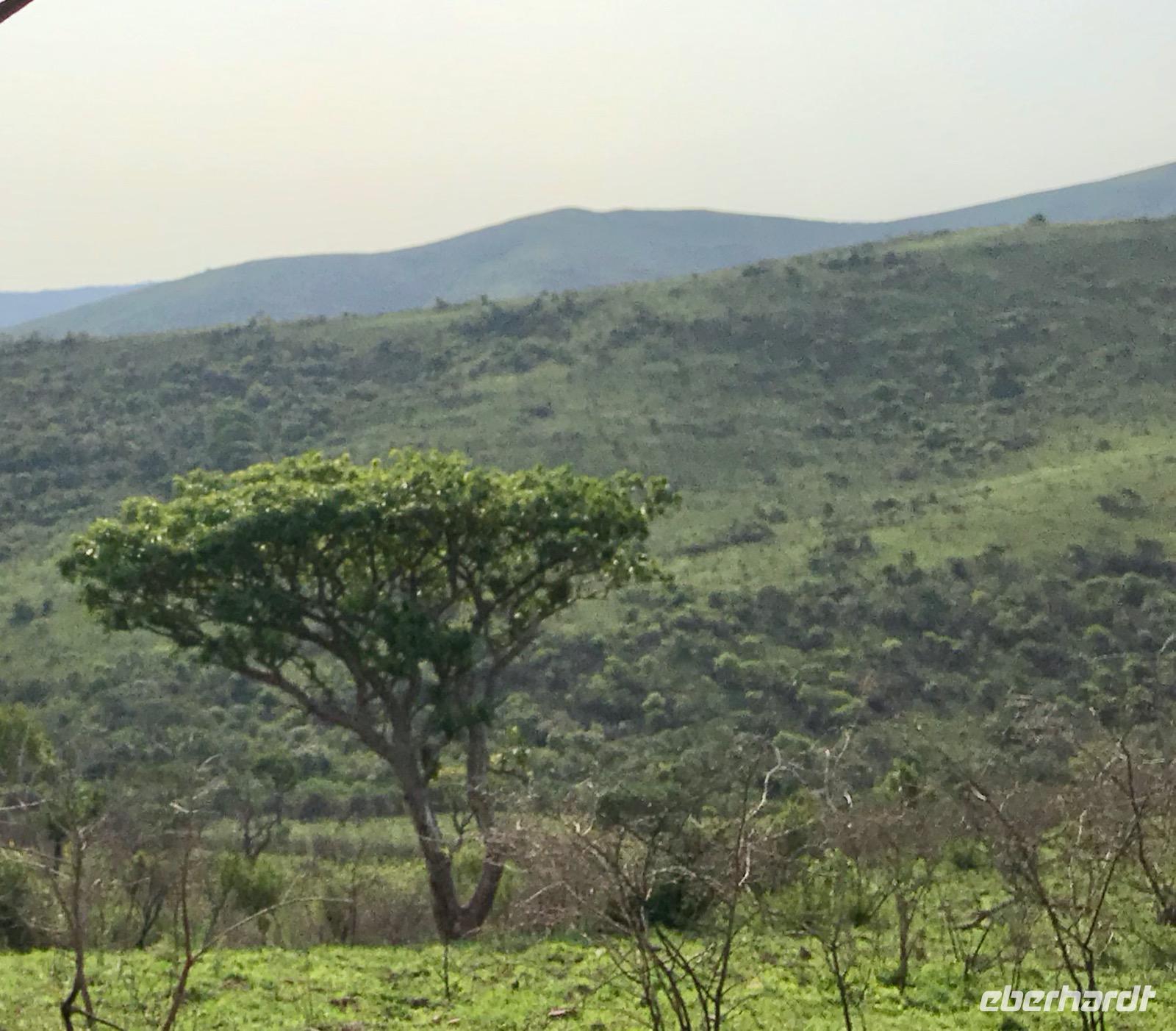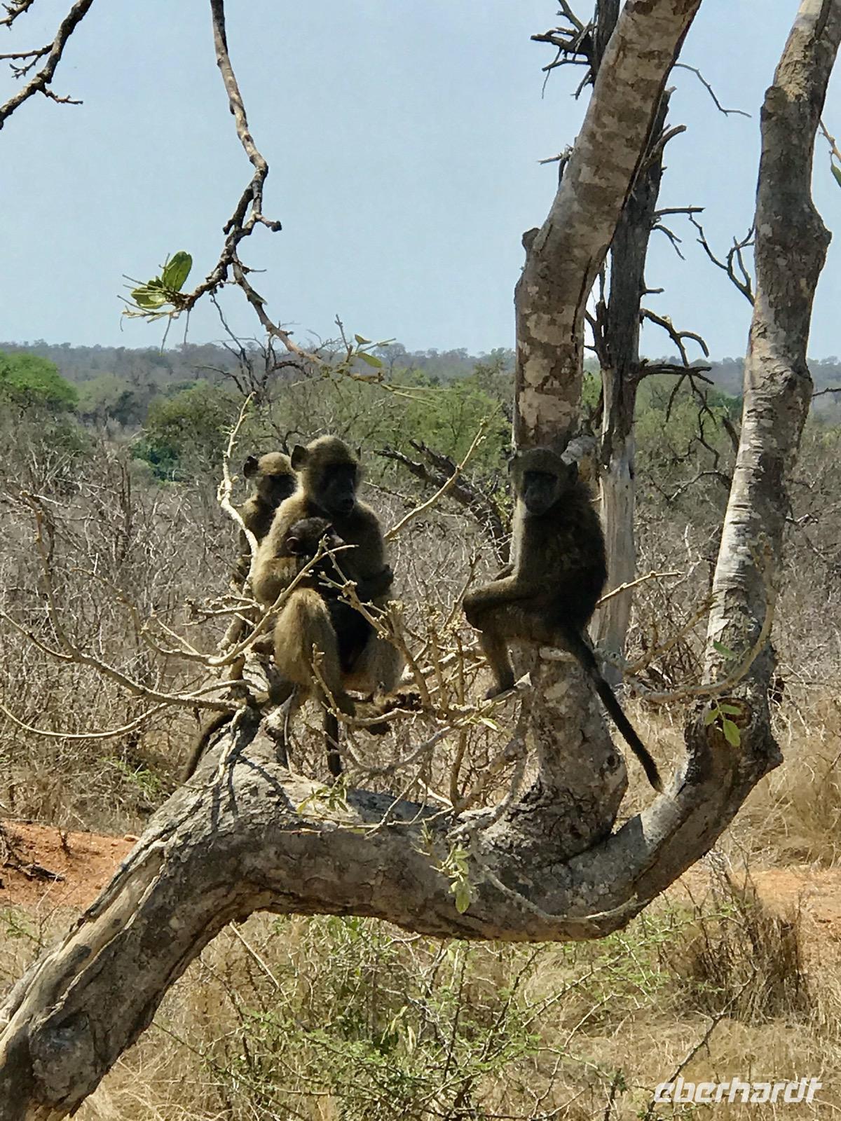 Wir staunen über die geübten Augen unseres Busfahrers, der direkt am Wegesrand an einem kleinen Ast die Grüne Mamba, eine echte Giftnatter, entdeckt. Gut, dass wir jetzt wissen, wie sie aussieht, nicht allzu groß, grün glänzend im Sonnenlicht, und schnell in einem Astloch verschwunden. Bald schon erspähen die Augen des Fahrers einen Leoparden, der faul auf einem Baum in einer Astgabelung lümmelt. Weit weg, aber wir erahnen das Bild. Und dann sind da die Vögel, bunt in ihrem Gefieder, Sonet nennt uns ihre Namen.