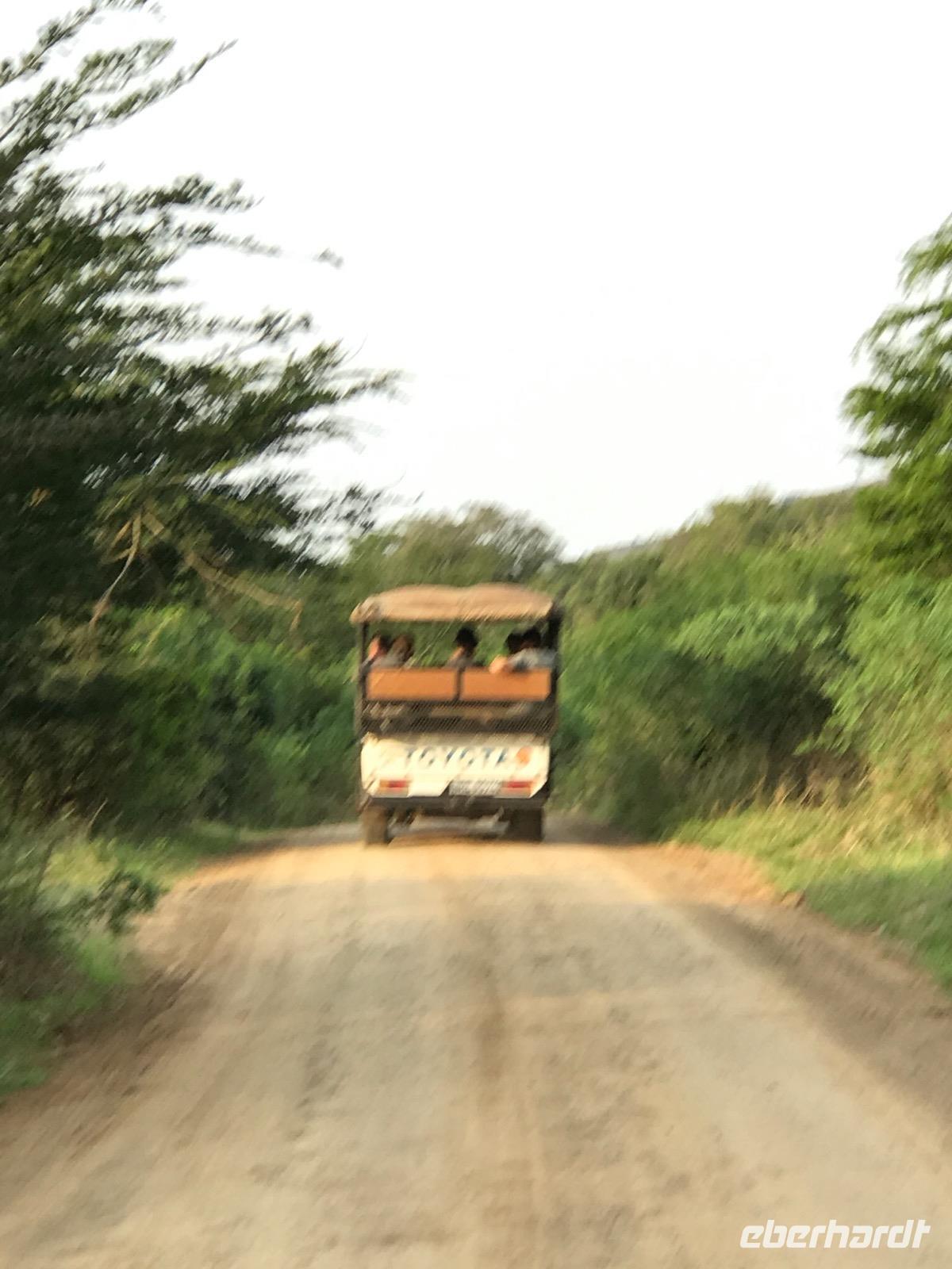 Es ist ein erlebnisreicher und lehrreicher Tag, der sich dem Ende zuneigt. Wir sitzen im Bus bei bester Klimatisierung, aber draußen sind mehr als 40°C. Am späten Nachmittag dann, begeben sich noch einige Gäste auf Sonnenuntergangssafari mit dem Jeep und einem erfahrenen Ranger. Auch das war wohl sehr spannend.