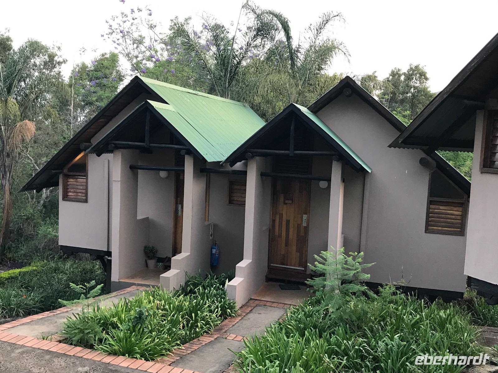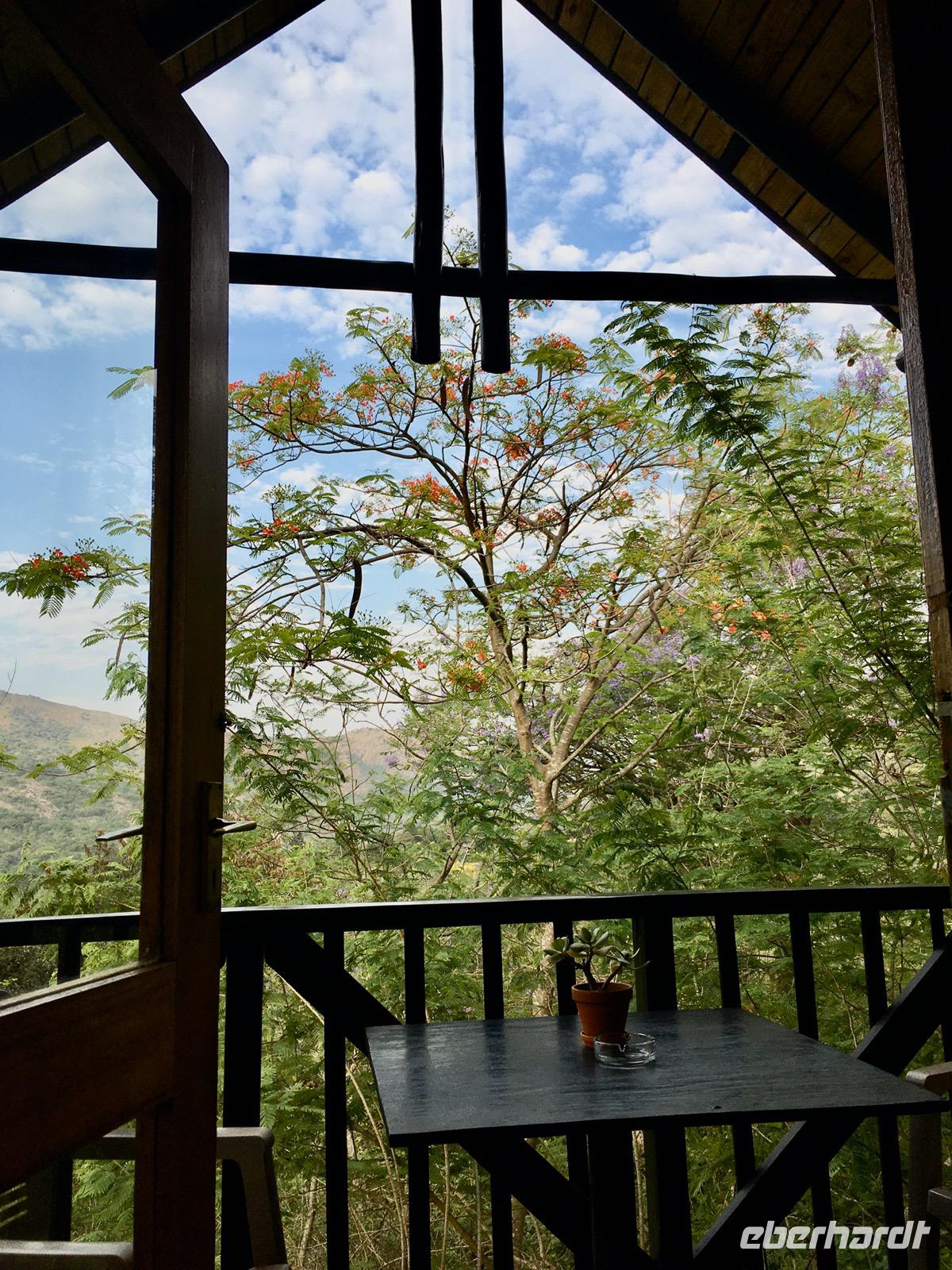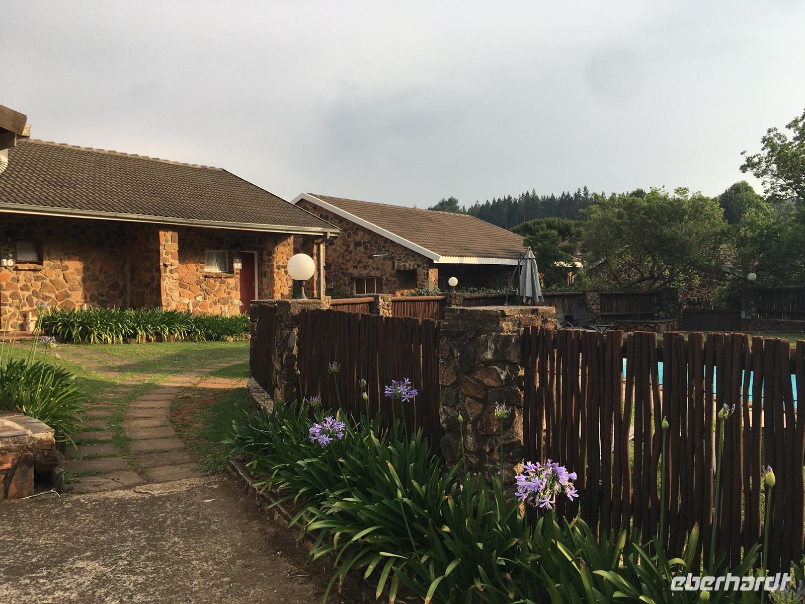 Wir fahren durch Sabie zu unserer Übernachtung in der MISTY MOUNTAIN LODGE, wo wir auch das Abendessen genießen können. Die Lodge ist ein Geschenk für die Seele. Die Zimmer sind meistens nach dem Regenwald ausgerichtet. Man sitzt auf einer kleinen Terrasse und blickt hinein in den Wald und hinüber zu den Bergen. Erholung pur und ein bisschen Regenwald, misty eben, nebelig.
