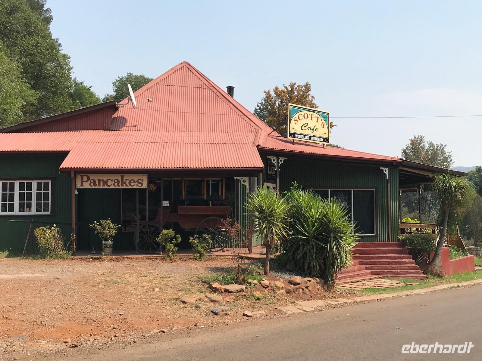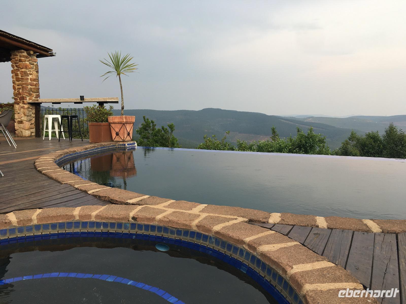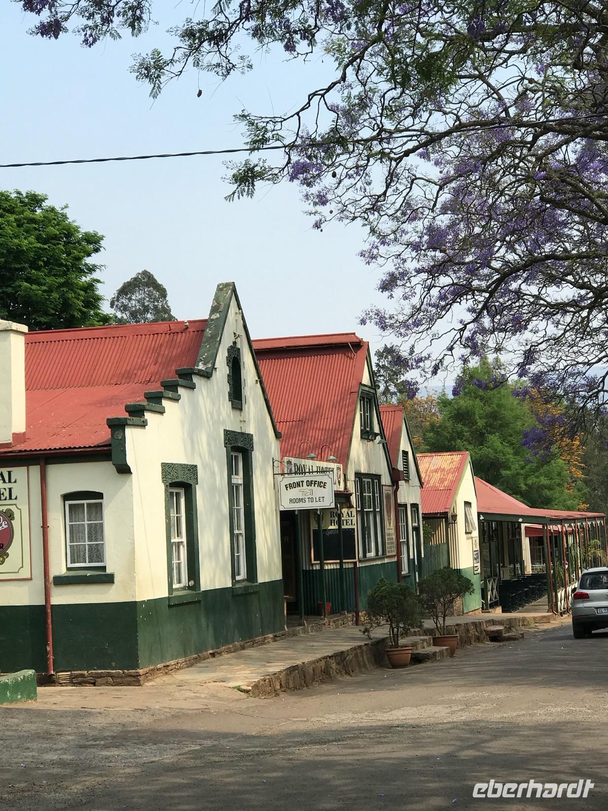 Wir fahren durch Sabie zu unserer Übernachtung in der MISTY MOUNTAIN LODGE, wo wir auch das Abendessen genießen können. Die Lodge ist ein Geschenk für die Seele. Die Zimmer sind meistens nach dem Regenwald ausgerichtet. Man sitzt auf einer kleinen Terrasse und blickt hinein in den Wald und hinüber zu den Bergen. Erholung pur und ein bisschen Regenwald, misty eben, nebelig.