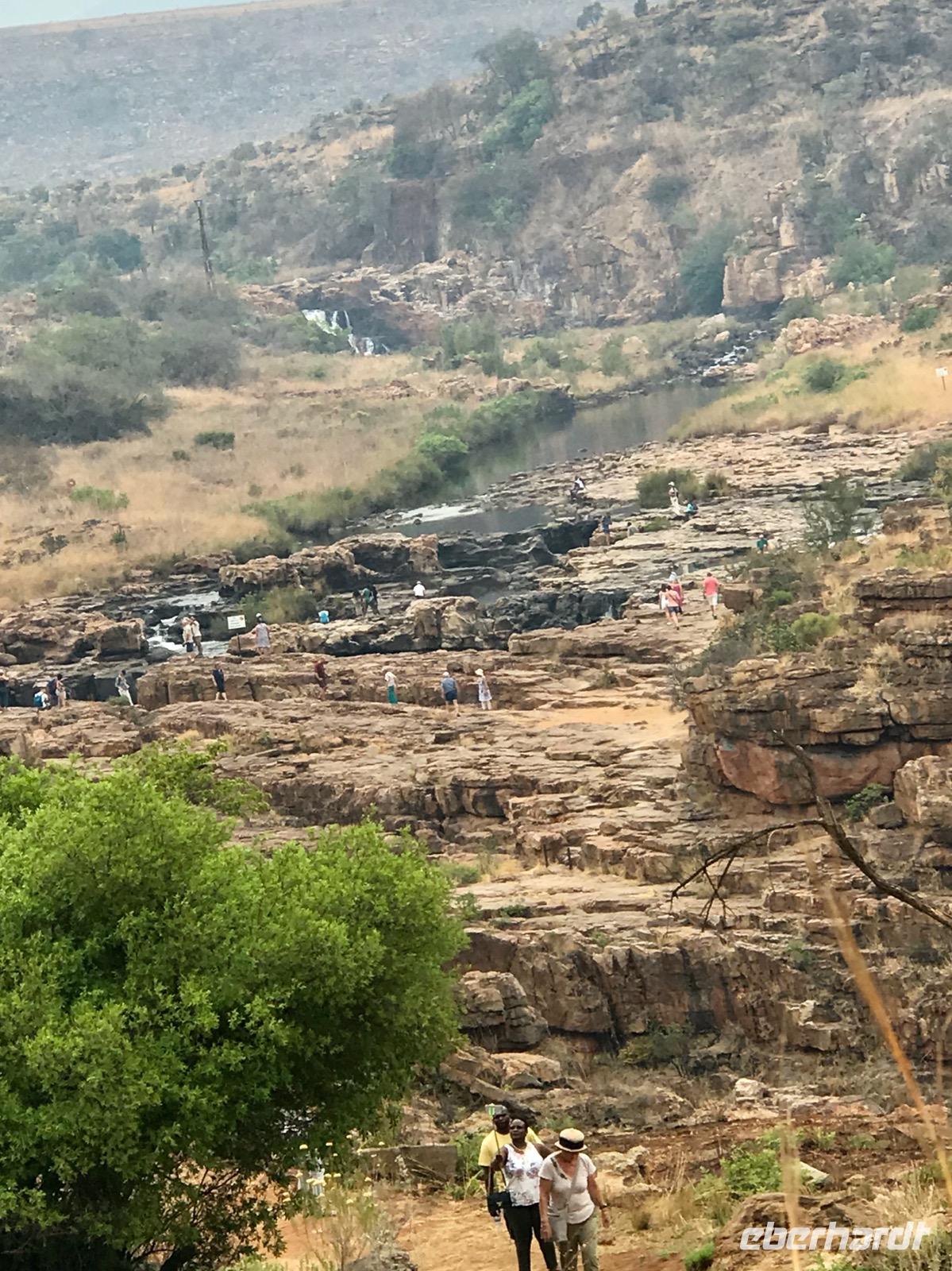 Wir folgen der Route weiter zu Bourke's Luck Potholes, den Glücksstrudellöchern, benannt nach dem Goldsucher Tom Bourke. Kleine und große Steine, die von den Flüssen Blyde (Freude) und Treur (Trauer) mitgerissen wurden, und das Wasser selbst haben diese Löcher gegraben.