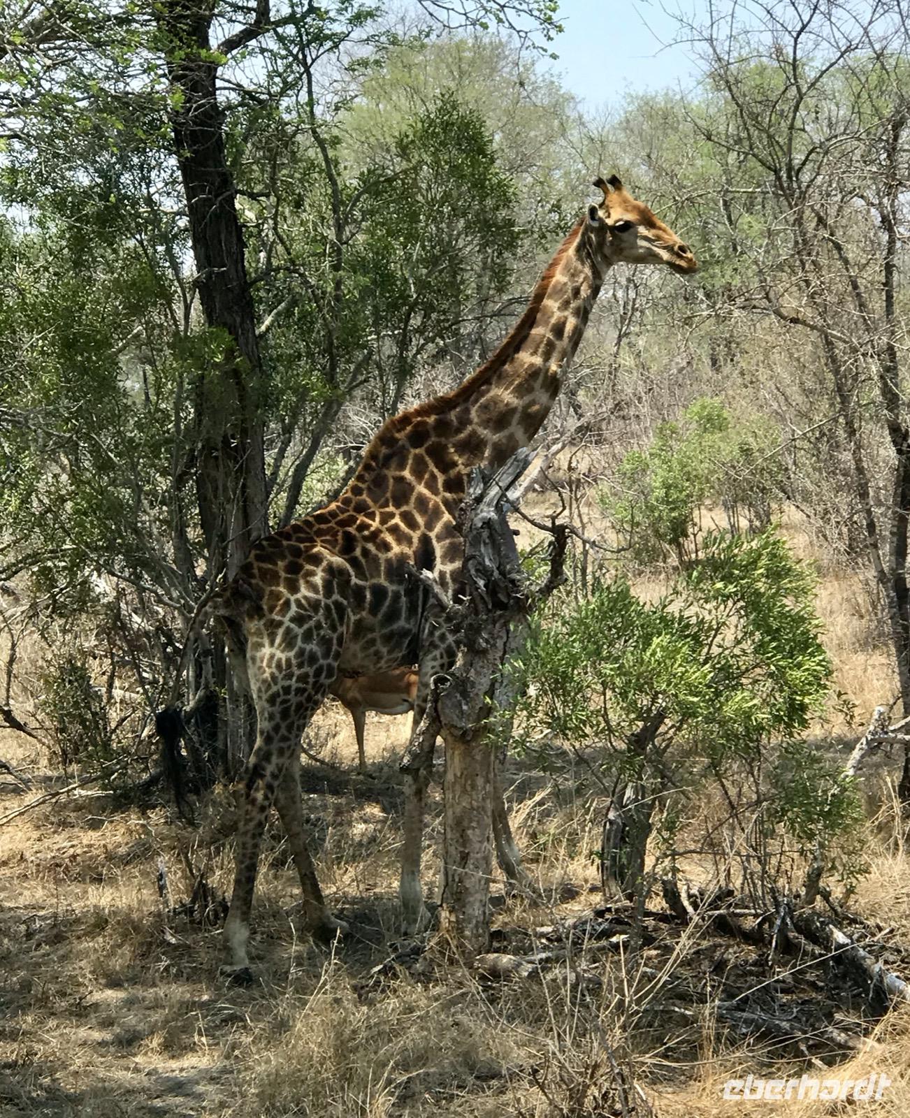 Was uns besonders beeindruckt, ist jedoch die Kraft der Tarnung in der Savannenlandschaft. Wir selbst haben oft ein Problem, die Tiere zu erkennen, selbst wenn sie sehr nahestehen. Die Fellfarbe der Tiere ist von den Farben des Savannengrases, der abgestorbenen Zweige an den Büschen, der rot-braun-ocker-farbigen Erde kaum zu unterscheiden. Kein Zoologischer Garten kann dies nachgestalten.