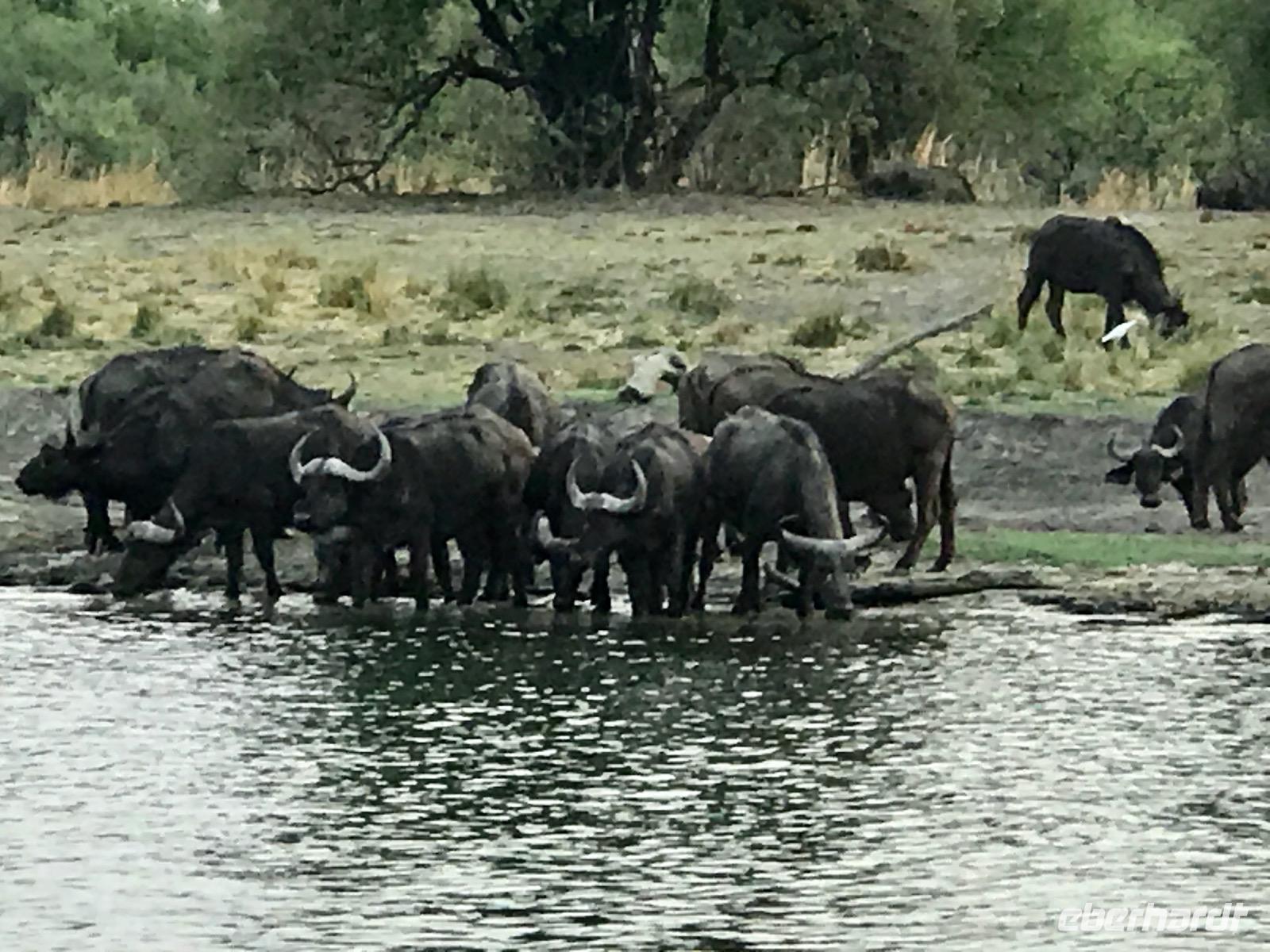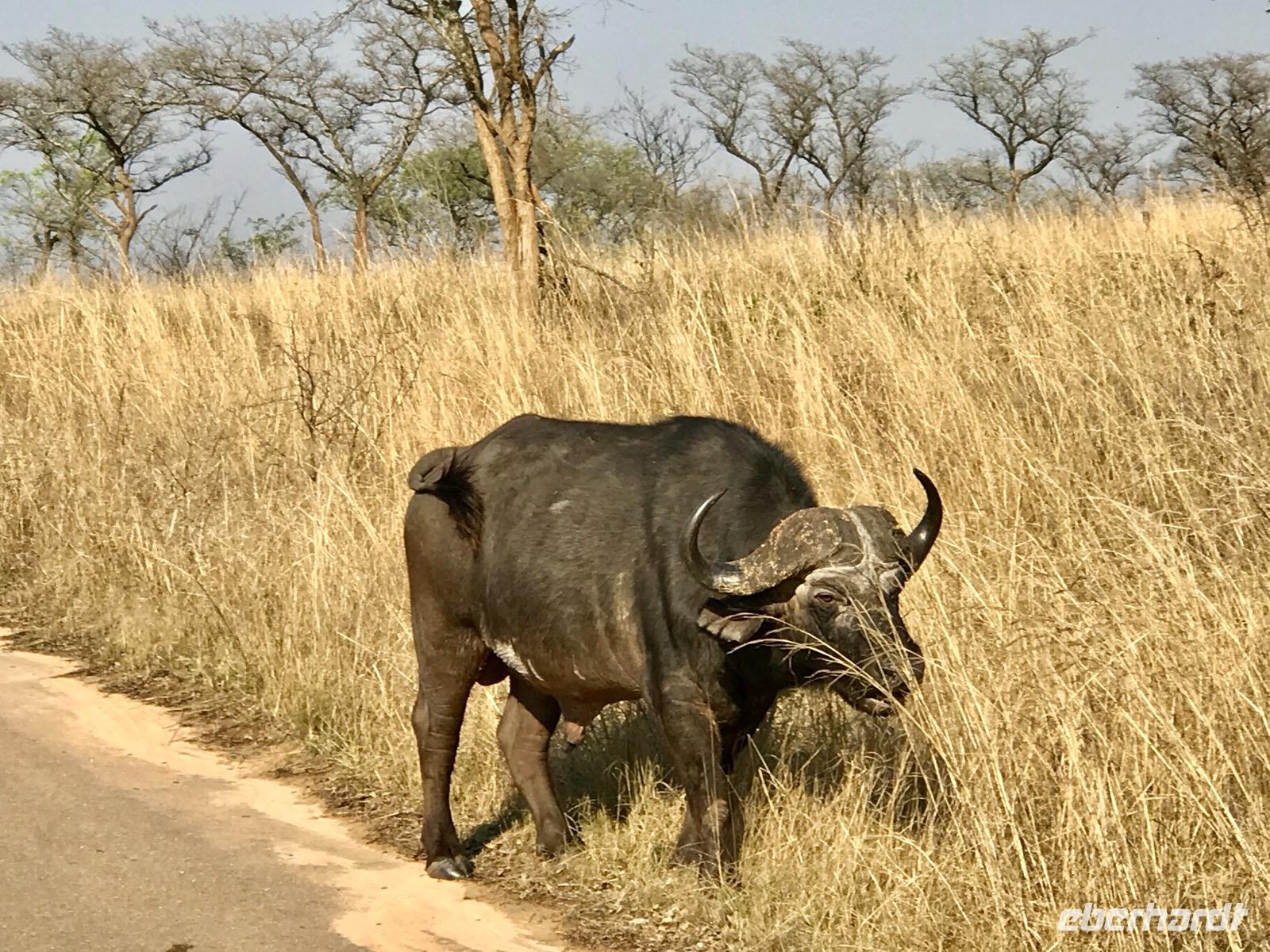 Und da sind dann noch die Büffel. Es sind wohl die gefährlichsten Tiere in Afrika, die die meisten Unfälle verursachen, denn sie stürmen direkt auf den Menschen zu, ohne Vorwarnung, wenn sie sich bedroht fühlen.