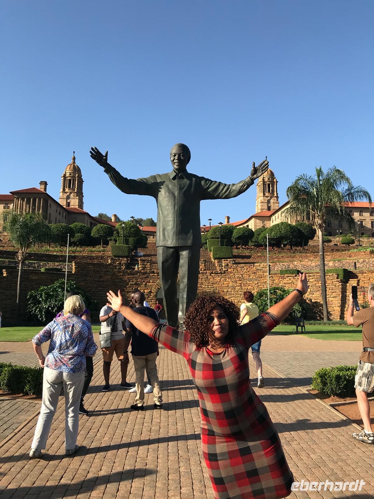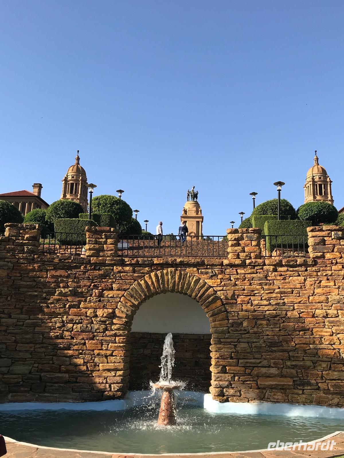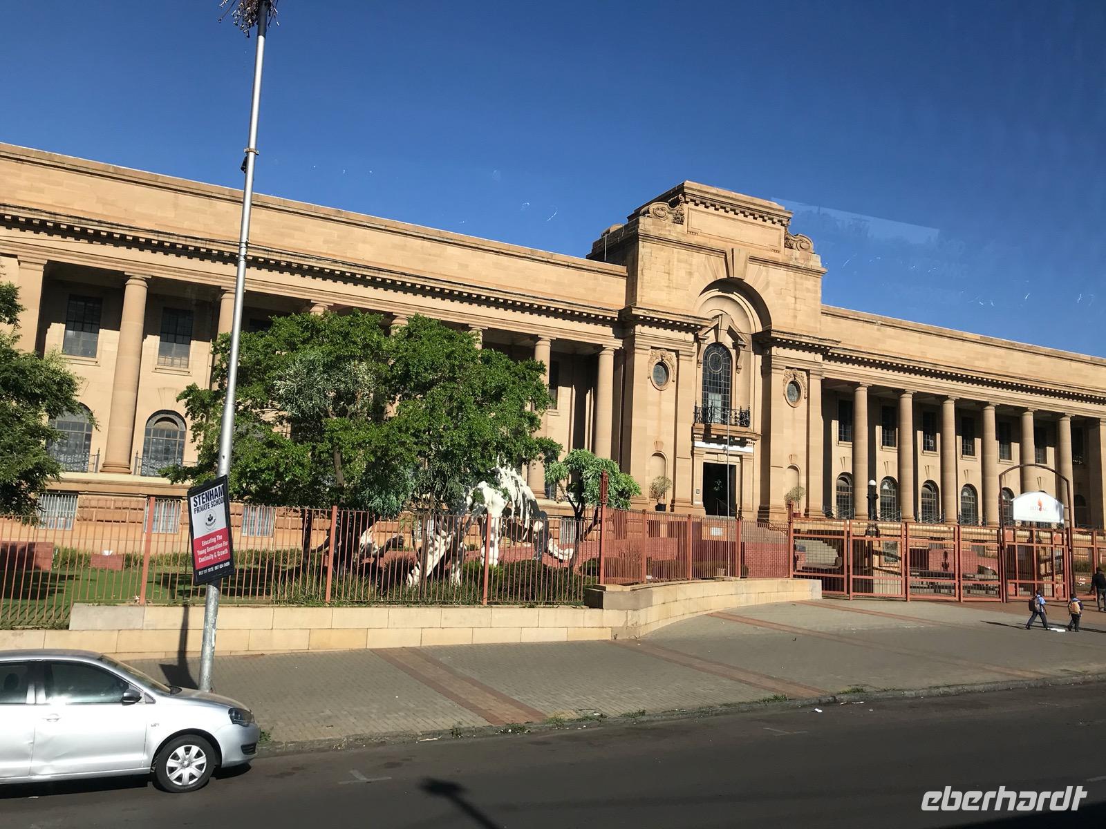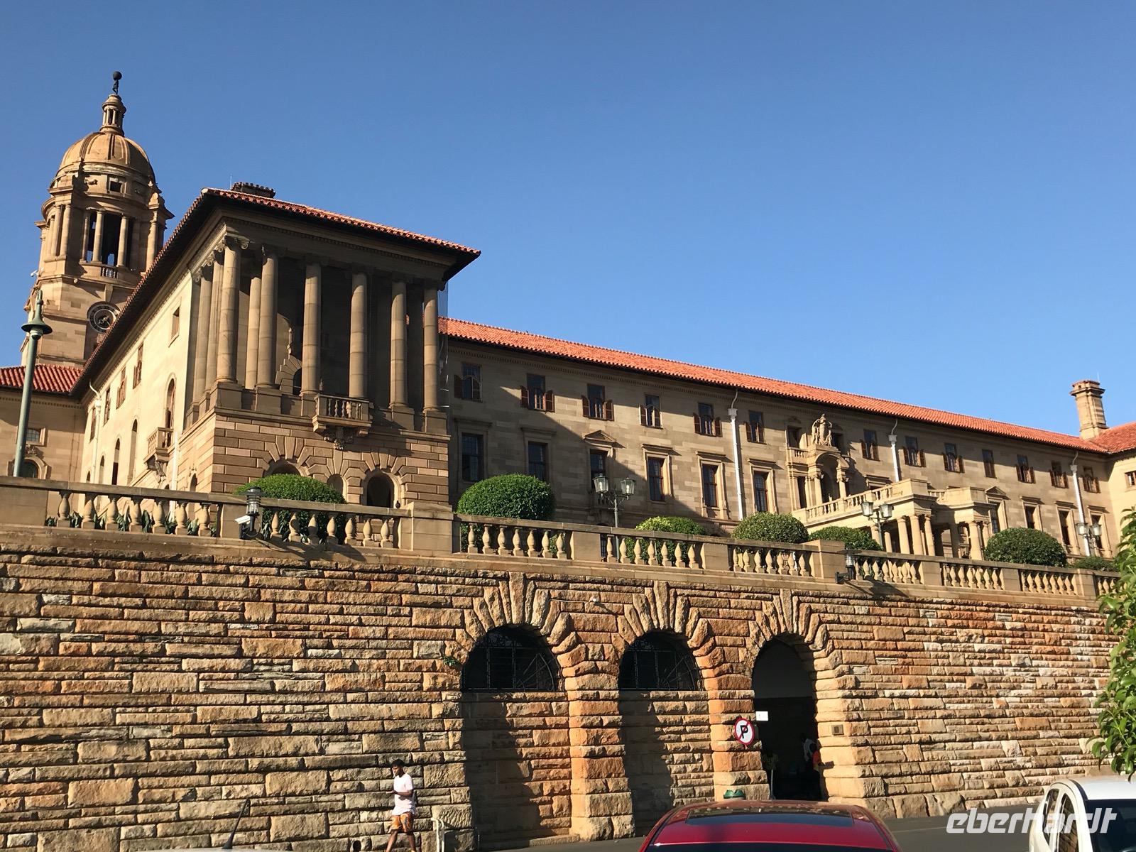 Danach begeben wir uns auf eine orientierende Stadtrundfahrt in Pretoria, wo wir dann an den Union Buildings auf einem Hügel über der Stadt anhalten. Die Union Buildings sind seit 1910 Sitz der südafrikanischen Regierung, bestehen aus zwei Verwaltungsflügeln, die durch einen Säulengang verbunden sind. Der Blick auf die Stadt vom Hügel und ein Spaziergang durch den davorliegenden Park mit dem Denkmal für Nelson Mandela sind obligatorisch.