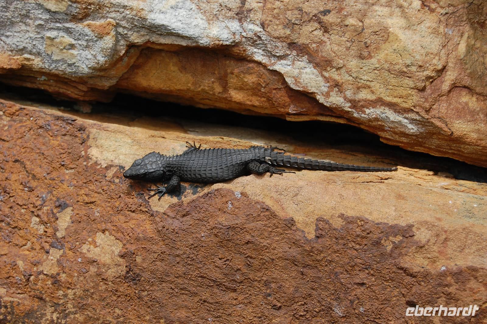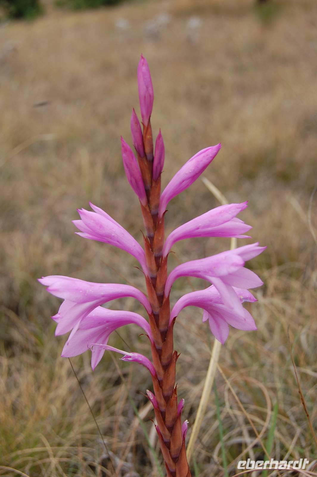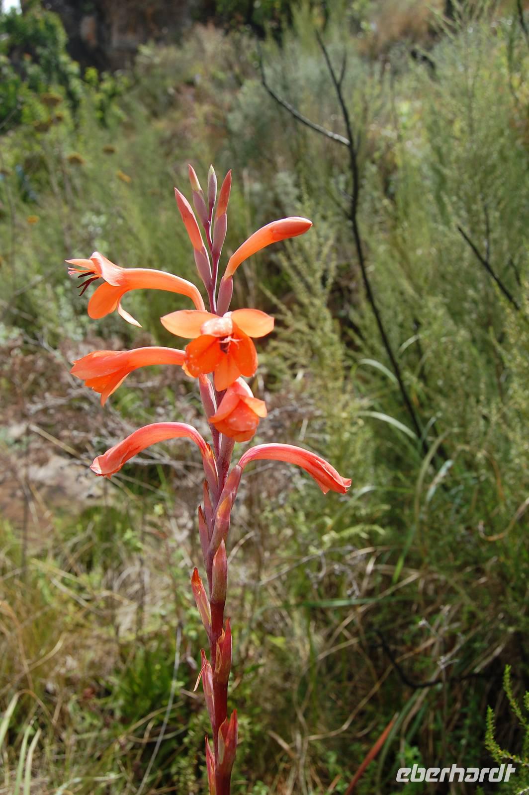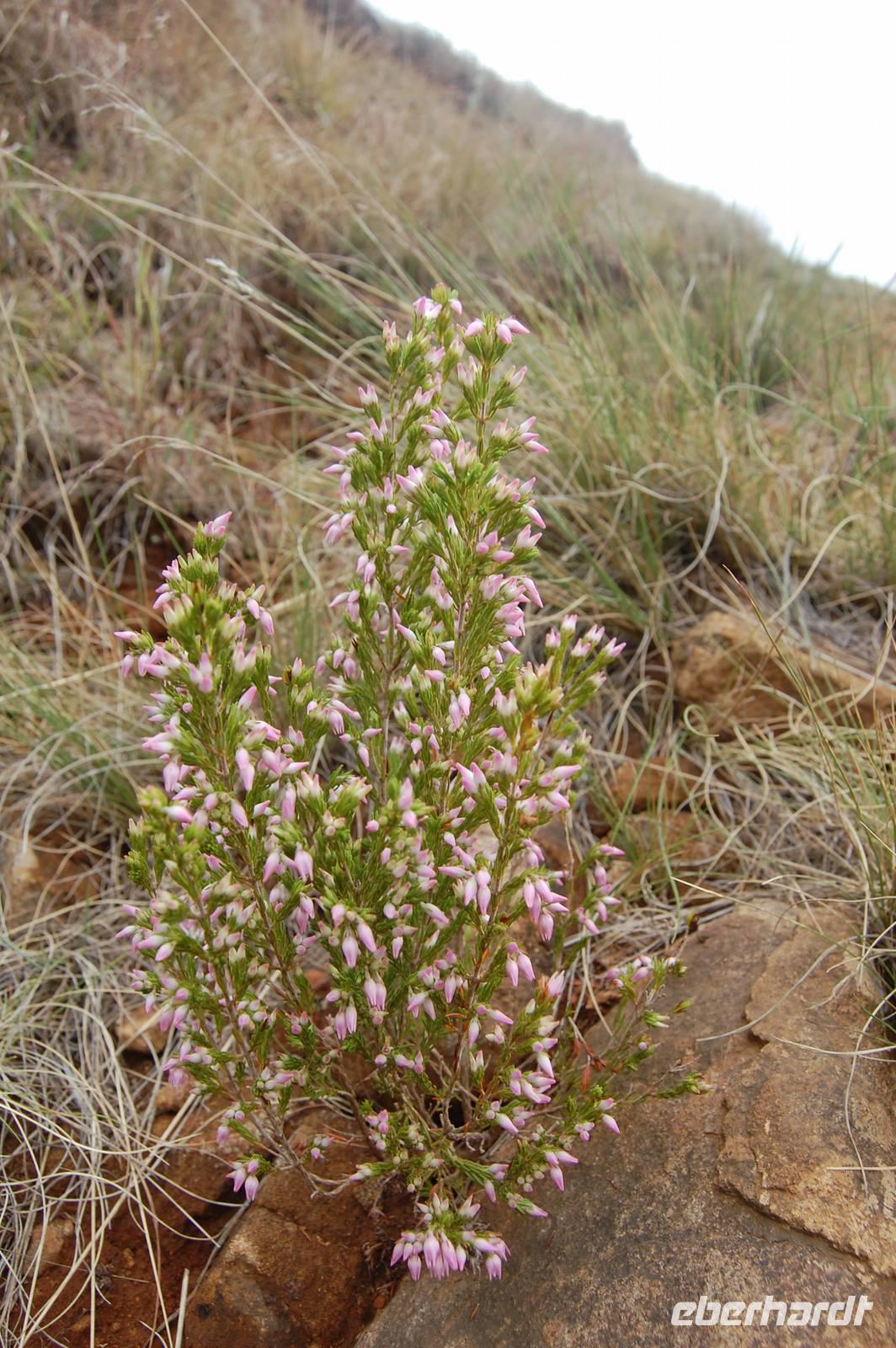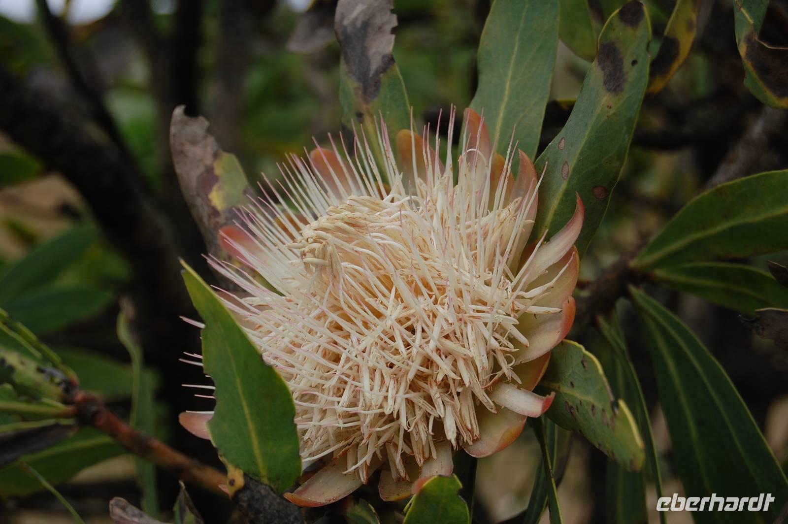 Nach kurzer Weiterfahrt erreichen wir um 11:15 Uhr das Cathedral Peak Resort und begrüßen unseren heutigen Wanderführer Apsolom. Er möchte mit uns zum „Mushroom Rock". Auf dem knapp 2 km langen Anstieg bewältigen wir 300 Höhenmeter. Erschöpft aber glücklich erreichen wir alle unser Ziel in 1.700 m Höhe und werden mit einem herrlichen Rundblick belohnt. Auf unserem Weg haben wir neben prächtigen Proteen, hübschen Schmucklilien und verschiedenen Gladiolen eine artenreiche Flora genießen können. Am Mushroom Rock angekommen, legten wir unsere Picknickpause ein und verzehrten unseren heutigen Proviant aus den Lunchpaketen. Da unser Wanderguide den für 16 Uhr angekündigten Regen befürchtet, teilen wir die Gruppe. Um 13:00 Uhr geht Michaela mit mit den Genußwanderern direkt zurück zum Cathedral Peak Hotel. Die anderen Wanderfreunde entschließen sich, schnelleren Schrittes die große Runde abzuwandern. Eine Entscheidung, die angesichts des herrlichen Sonnenscheins richtig war. Über eine Hochebene wandern wir auf Trampelpfaden und steigen schließlich Stück für Stück wieder ab. Unser Guide führt uns zu einem kleinen Wasserfall, die "Doreen-Falls". Um 15.45 Uhr, nach 4 Stunden erreichen wir wieder den Ausgangspunkt unserer Wanderung.