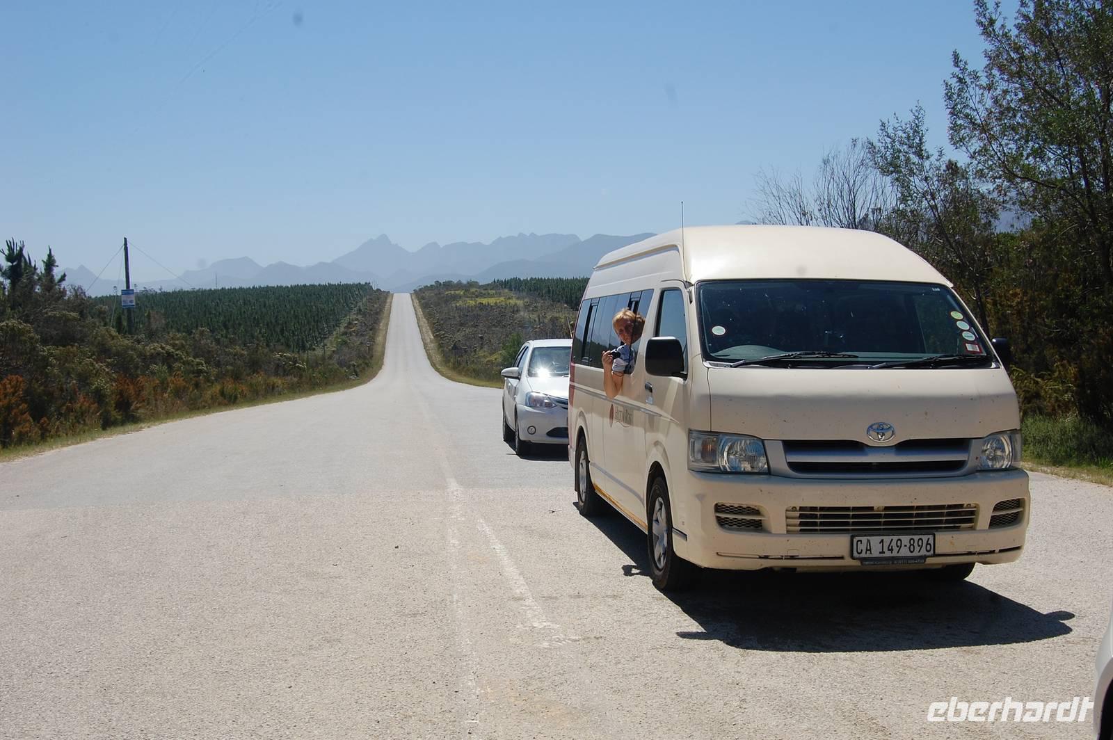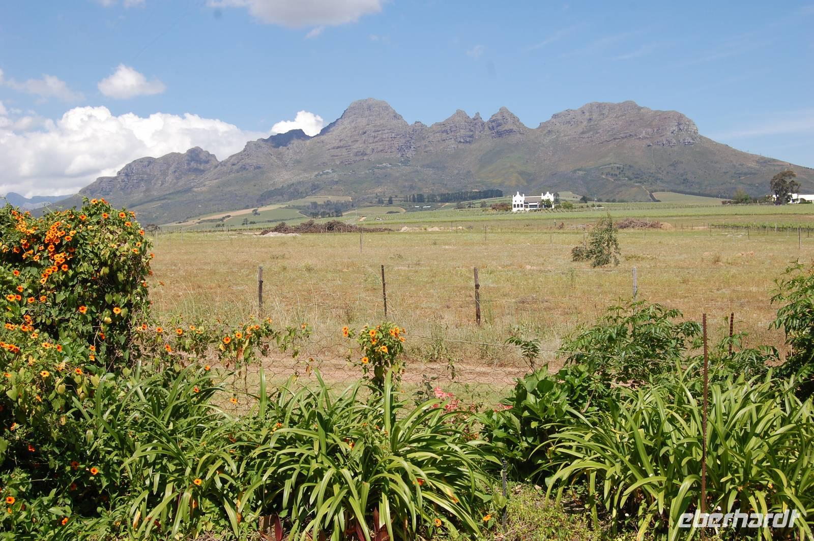 Nach dem Frühstück starten wir um 08.00 Uhr in Richtung Kapstadt. Wir benötigen für diese Fahrstrecke mit den kurzen Pausen ca. 6 Stunden und erreichen unsere Unterkunft „Rosenview" in Somerset West nach 14 Uhr. Die Pension befindet sich inmitten der grünen Weinfelder rund um Stellenbosch. Besonders reizvoll ist der Blick über die vielen Reihen der Weinreben zum Helderberg-Massiv.