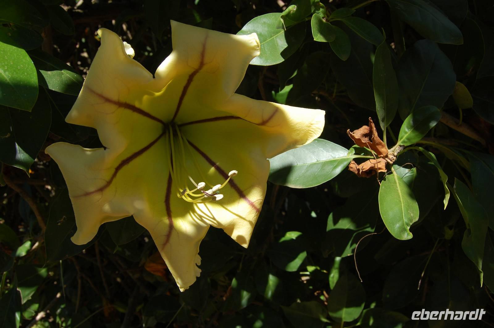 Um 14:30 Uhr treffen wir uns zu unserer 1. Wandertour und erreichen nach kurzer Fahrt den Royal Natal Nationalpark. Am Eingang zum Reservat begrüßt uns unser Wanderführer Elijah, der englisch spricht. Gespannt folgen wir unterwegs seinen Ausführungen. Der Park trägt seit 1947 den Zusatz „Royal", weil damals der englische König hier Urlaub machte. Heute steht der gesamte Park auf der UNESCO-Welterbe-Liste. Während der Wanderung sehen wir verschiedene Bäume (z.B. Kohlbaum - siehe Foto) und Blumen. Unser Wanderführer erklärt uns, wie die Ranger im Winter das trockene, braune Gras kontrolliert abbrennen, um spontanen Bränden vorzubeugen und den Tieren frisches grünes Gras als Lebensgrundlage im Sommer zu bieten. Die Wanderung dauerte nur eine Stunde, von 1400 m Höhe klettern wir über steinige, schmale Wege auf 1500 m zu den „Bushmen Paintings", Felszeichnungen der San (damaliges Normadenvolk), leider wurde ein Großteil der Zeichnungen durch rücksichtslose Touristen vor 12 Jahren unwiederbringlich zerstört.