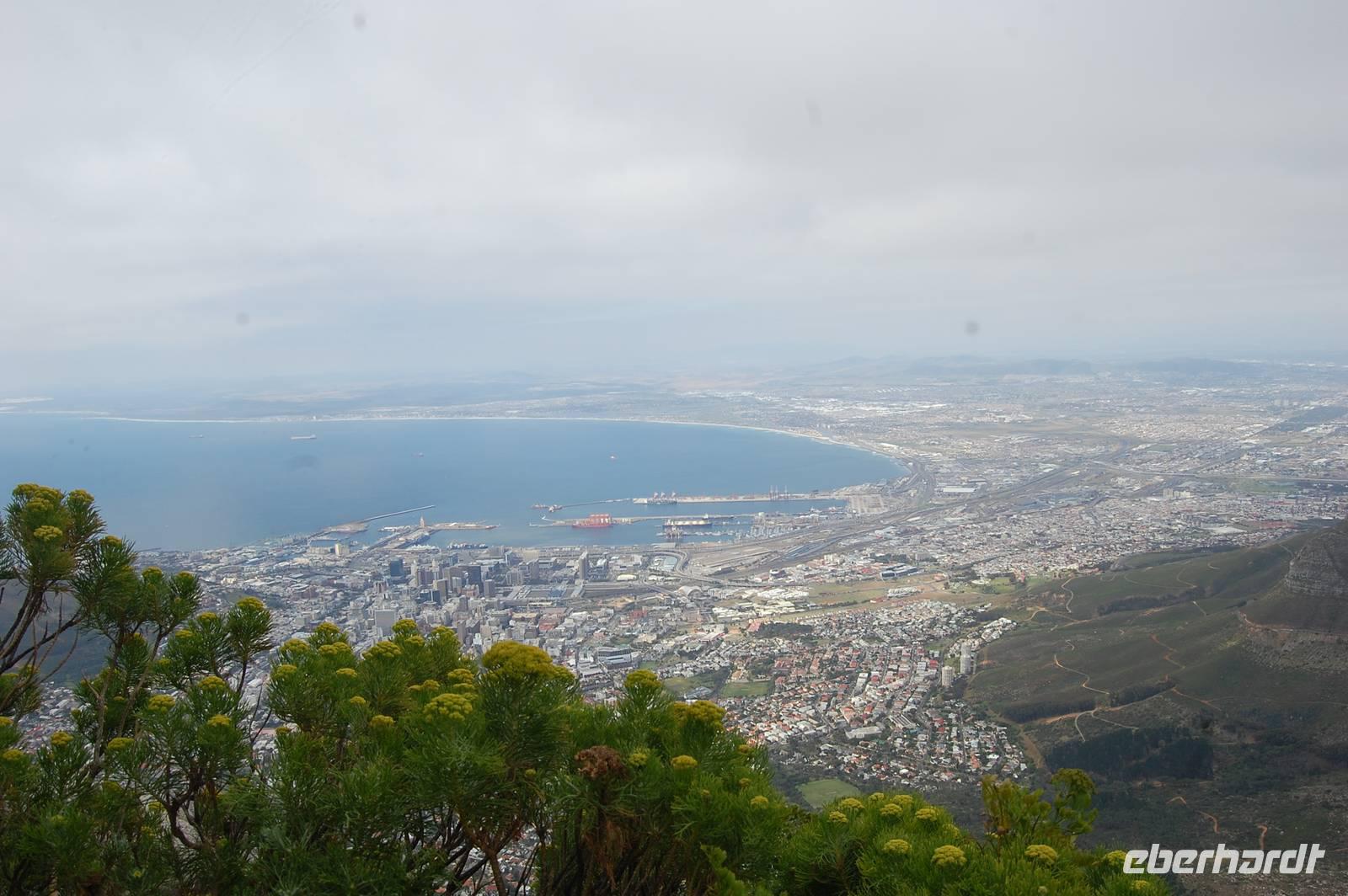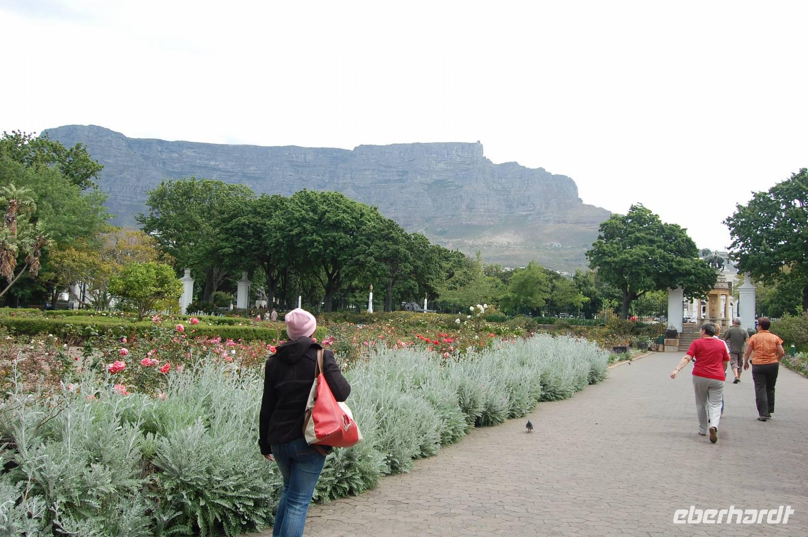 Um den Berufsverkehr etwas zu umgehen, starten wir erst um 09.00 Uhr in Richtung Kapstadt und benutzen einige Nebenstraßen. So sehen wir die Erdbeerfelder, auf denen gerade geerntet wird. 30 km vor Kapstadt beginnen die Hometowns links und rechts der Autobahn N2. Carsten erläutert über Mikrofon einiges über den Umgang mit der riesigen Zuwanderung aus ganz Afrika. Nach nur 45 Minuten Fahrzeit erreichen wir bereits den Botanischen Garten Kirstenbosch unterhalb des Tafelberges. Bei einem gemeinsamen Rundgang erfahren wir mehr über die vielfältige Flora Südafrikas. Carsten ist sehr gut informiert und gibt sein Wissen sehr anschaulich an uns weiter.