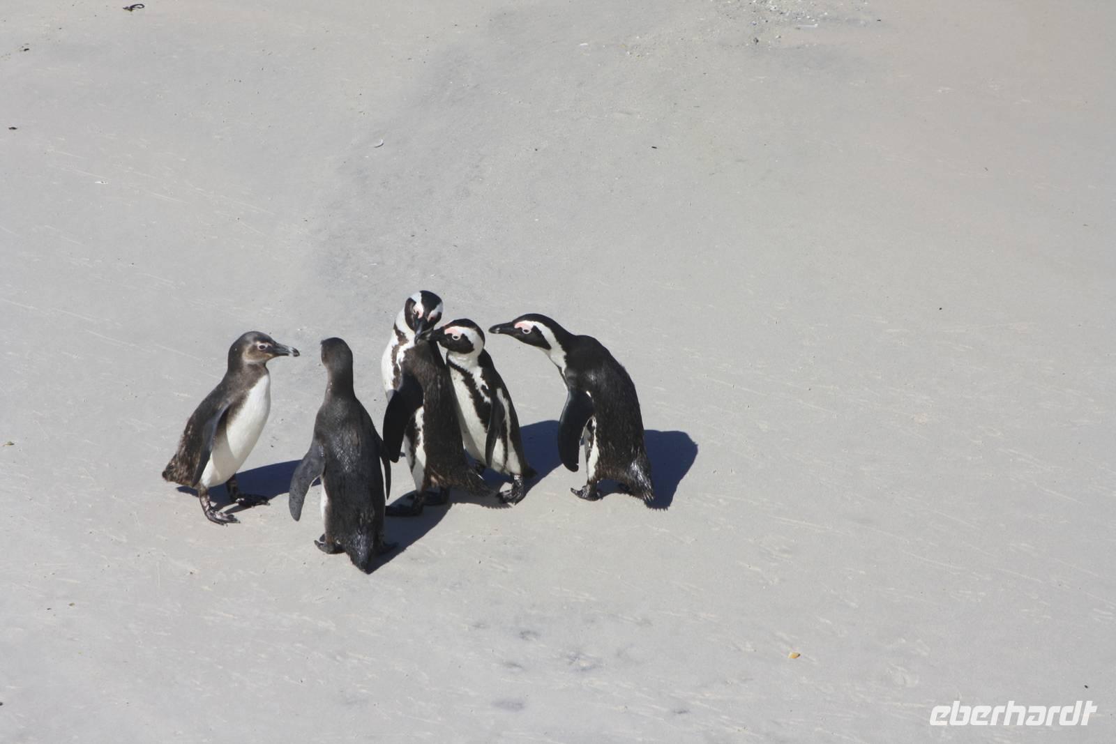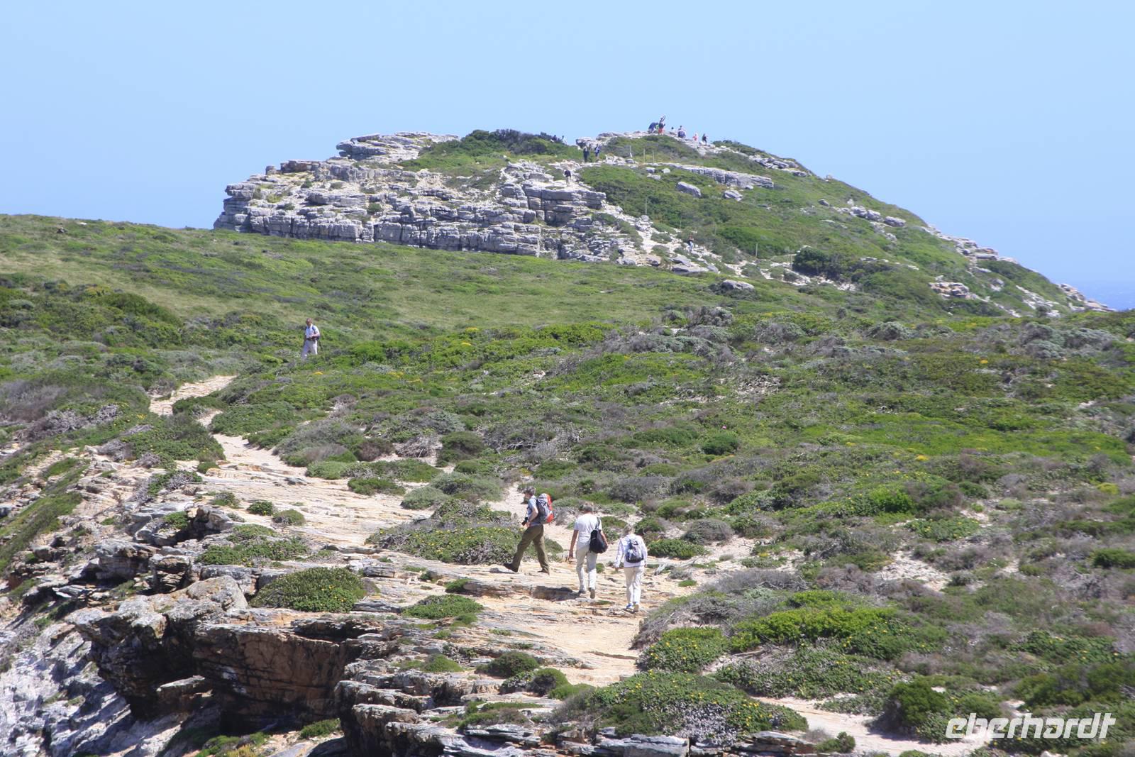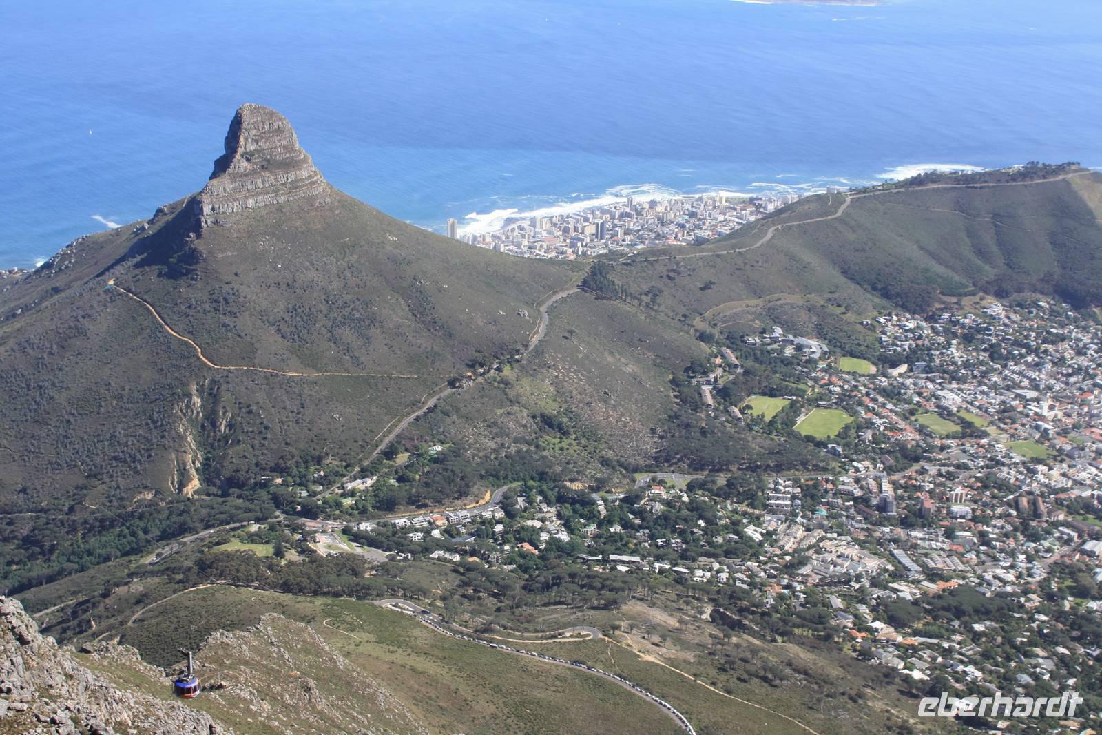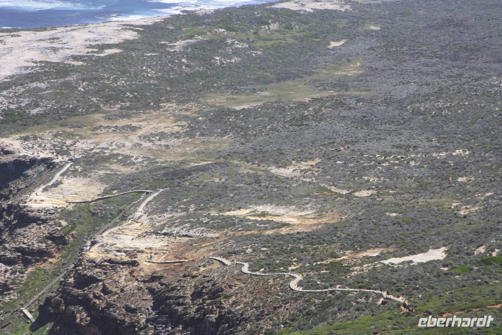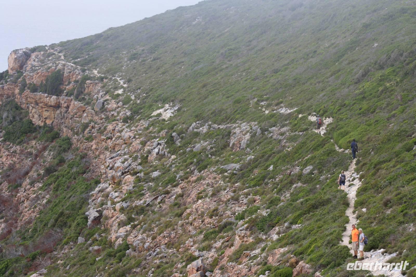 Während des Frühstücks wurde schon einmal die Internetseite des Tafelbergs gecheckt, doch trotz wolkenlosen Himmel und abschwächendem Wind hieß es: die Seilbahn ist geschlossen und somit schwanden unsere Hoffnungen den berühmten Berg mit seiner tollen Aussicht doch noch von oben genießen zu können. Wir machten uns auf den Weg zum Kap der Guten Hoffnung. Doch unserer aufmerksamen Gruppe fiel zufällig auf, dass die Seilbahn fuhr und somit machten wir uns spontan noch auf den Weg zum Tafelberg. Mit einer kurzen Wartezeit, wir standen fast ganz vorne in der Reihe der „noch ticketlosen", erklommen wir in nur wenigen Minuten mit der Seilbahn den über 1000 Meter hohen Tafelberg. Oben angekommen erkundeten wir einen kleinen Teil des Tafelberg-Nationalparks und machten wunderschöne Fotoaufnahmen der Umgebung, insbesondere von dem am Ozean liegenden Kapstadt und seinen Sehenswürdigkeiten. Am späten Vormittag wieder an der Talstation angekommen machten wir uns auf den Weg zum Kap, mit dem Zwischenhalt Hout Bay und der Fahrt über eine atemberaubende Küstenstraße, dem Chapman´s Peak Drive. Am Cape Point angekommen legten wir ein kleines Picknick an einer windgeschützten Stelle ein, mussten unser Essen aber vor diebischen und scheinbar furchtlosen Vögeln verteidigen. Danach machten wir uns auf den Weg zum oberen Leuchtturm am Cape Point, natürlich zu Fuß, denn keiner unserer Wandergruppe hatte nur im Geringsten daran gedacht mit der Standseilbahn die wenigen hundert Meter bergauf zu bewältigen. Oben angekommen machten wir ein paar Erinnerungsfotos, aber allzu lange hielten wir uns nicht am Leuchtturm auf, denn trotz schönem Wetter war es sehr stürmisch an der südlichen Kapspitze, was wir auf der nachfolgenden Wanderung zum Kap der Guten Hoffnung auch nochmal zu spüren bekamen. Auf dem ein paar Kilometer langen Weg gingen wir an der Felsküste entlang und wurden ein paar Mal beinahe von heftigen Böen vom Weg abgebracht, aber wir ließen uns nicht beirren und fanden unseren Weg zum berühmten „Kap der Guten Hoffnung" Schild, wo wir nach kurzer Wartezeit in der Warteschlange unser lang ersehntes Gruppenfoto schießen konnten. Kurz darauf stießen wir noch mit Orangensaft und dem obligatorischen Windhoek Draught auf das Erreichen des Kaps an und besiegelten somit unsere kleine private Kaptaufe. Nach einer knappen Stunde Fahrt erreichten wir dann Simon´s Town und besuchten eine Pinguinkolonie mit hunderten von Tieren. Auf einem Holzsteg konnte man die Tiere beobachten und die eine oder andere Fotoaufnahme machen. Auf dem Rückweg kamen wir dann noch trotz eines Staus wohlbehalten in Kapstadt am Hotel an und ließen den Abend bei einem leckeren letzten Abendessen in Südafrika ausklingen, bevor es hieß: Koffer packen, Morgen geht es zurück nach Deutschland.
