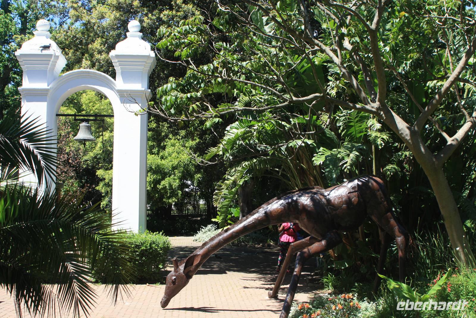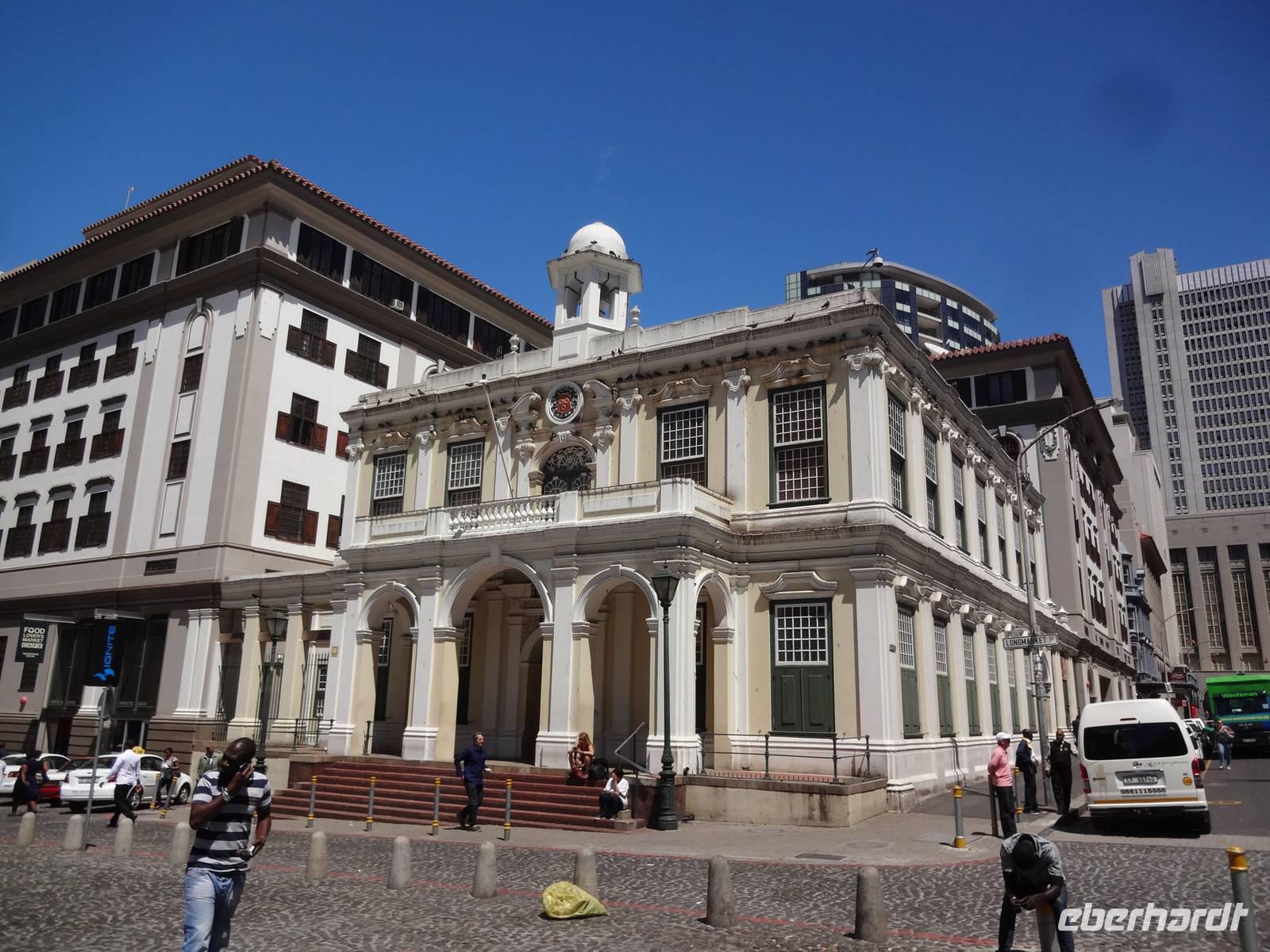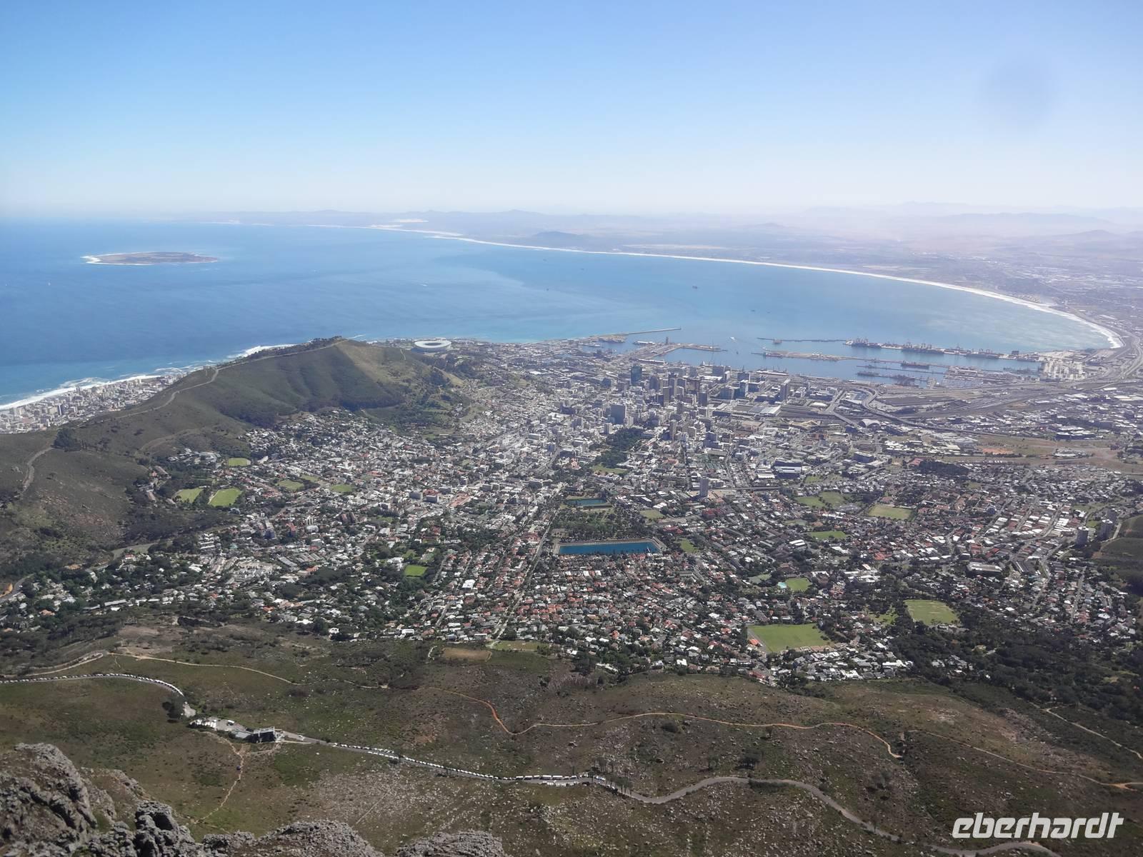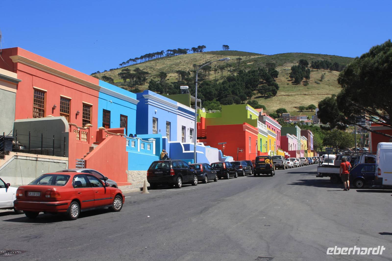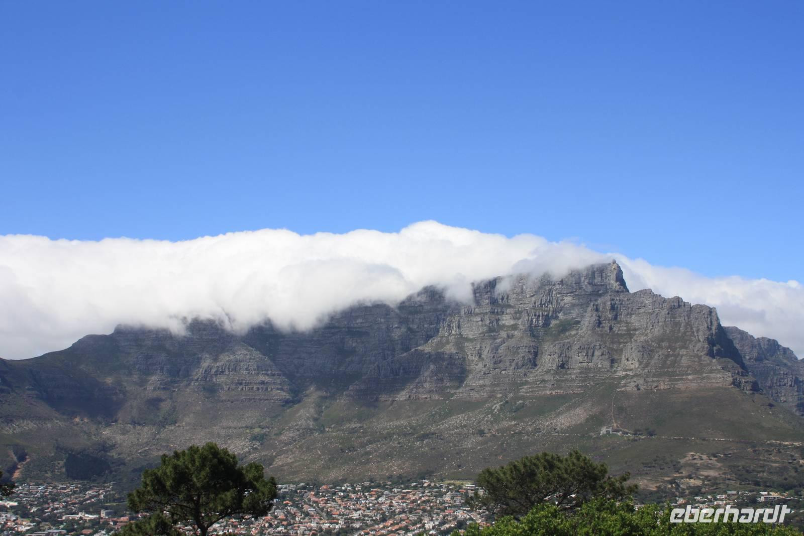 Da wir dem allmorgendlichen Berufsverkehr in Richtung Kapstadt aus dem Wege gehen wollten, starteten wir gemütlich in unseren heutigen Tag. Auf dem Weg sahen wir schon, wie sich langsam die „Tischdecke" über den Tafelberg legte und nach der Kofferabgabe im Hotel stand letztendlich leider fest, dass wir an diesem Tag nicht auf den Tafelberg konnten, da der Wind zu stark war und der Seilbahnbetrieb eingestellt wurde. Das tat unserer guten Stimmung aber keinen Abbruch und wir erlebten trotz alledem einen schönen Tag in Kapstadt. Zuerst ging es für unsere Gruppe auf den Signal Hill, einem Hügel über Kapstadt thronend, der uns einen tollen Blick auf den Tafelberg, den Ozean mit dem berühmten Robben Island, den Lion´s Head - dem Löwenkopf - und über große Teile von Kapstadt gewährte. Unser nächster Stopp war das Malaienviertel mit seinen bunten Häusern, wir schlenderten durch die Gassen und wurden über den Zweck dieser bunten Bemalung aufgeklärt. Diese diente Früher zur Orientierung, denn nur wenige Teile der Bevölkerung konnten lesen oder schreiben und somit wusste jeder, wer in welchem Haus wohnte, vorausgesetzt man war nicht farbenblind. Weiter ging es durch die turbulente Innenstadt an verschiedenen Regierungsgebäuden vorbei und durch das Bankenviertel in Richtung Südafrikanischen Nationalmuseum, wo wir unseren Minibus abstellten und zu Fuß den Company Garden, einen sehr schön angelegten botanischen Garten erkundeten. Durch die Altstadt und über den Marktplatz schlenderten wir zu Fuß, bevor es wieder zurück in Richtung Minibus ging. Kurz vor der Ankunft am Parkplatz begegneten wir dann noch einer Gruppe von Studenten, die wir schon aus den Zeitungen und den Nachrichten kannten, die aber friedlich durch die Straßen zogen und gegen die Erhöhung der Studiengebühren protestierten. Danach fuhren wir zurück zum Hotel, bezogen unsere Zimmer und genossen ein wenig Freizeit. Am Nachmittag ging es dann zur berühmten Waterfront mit ihren vielen Geschäften und Restaurants, wir brauchten ja schließlich noch ein paar Souvenirs und hungrig waren wir auch.