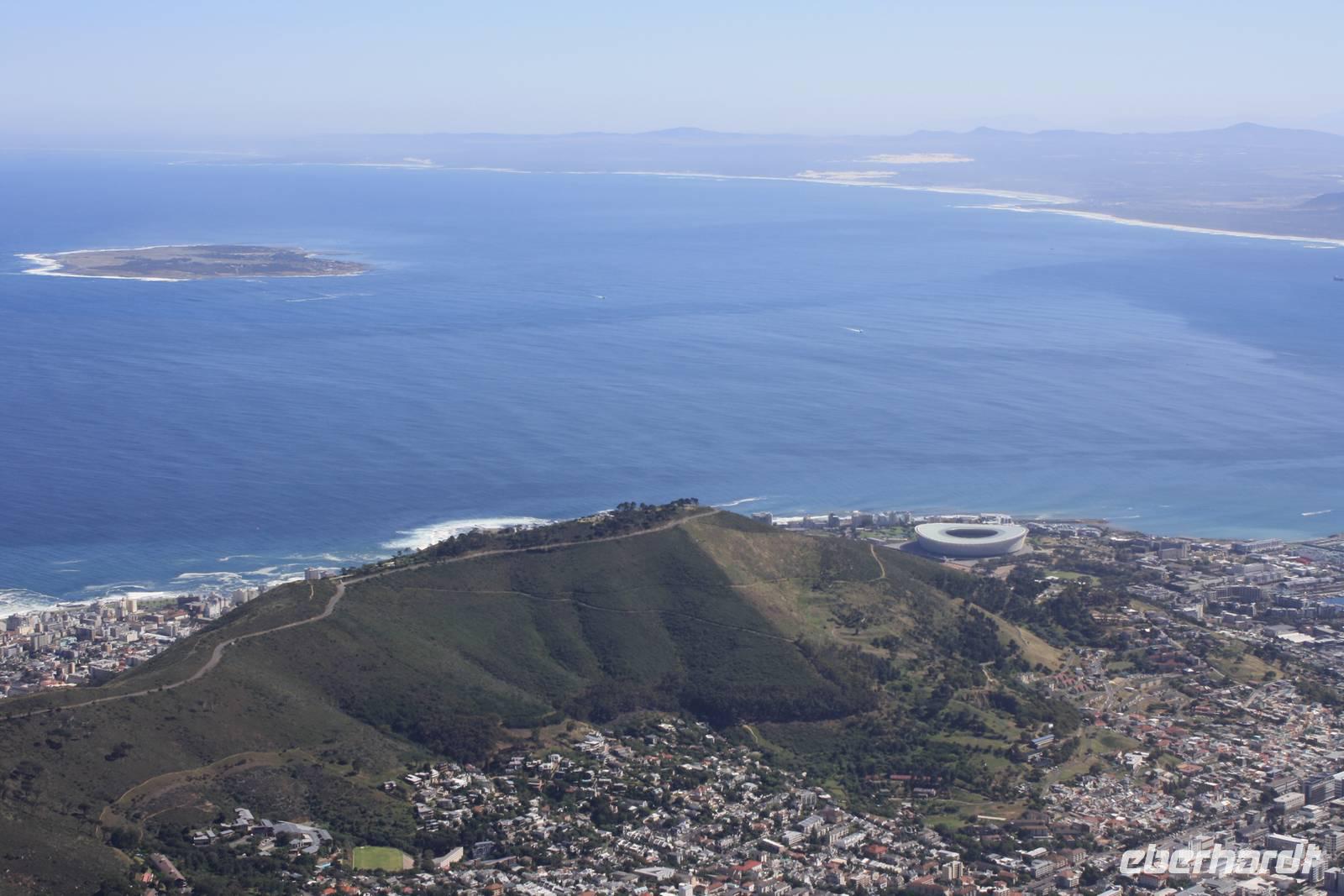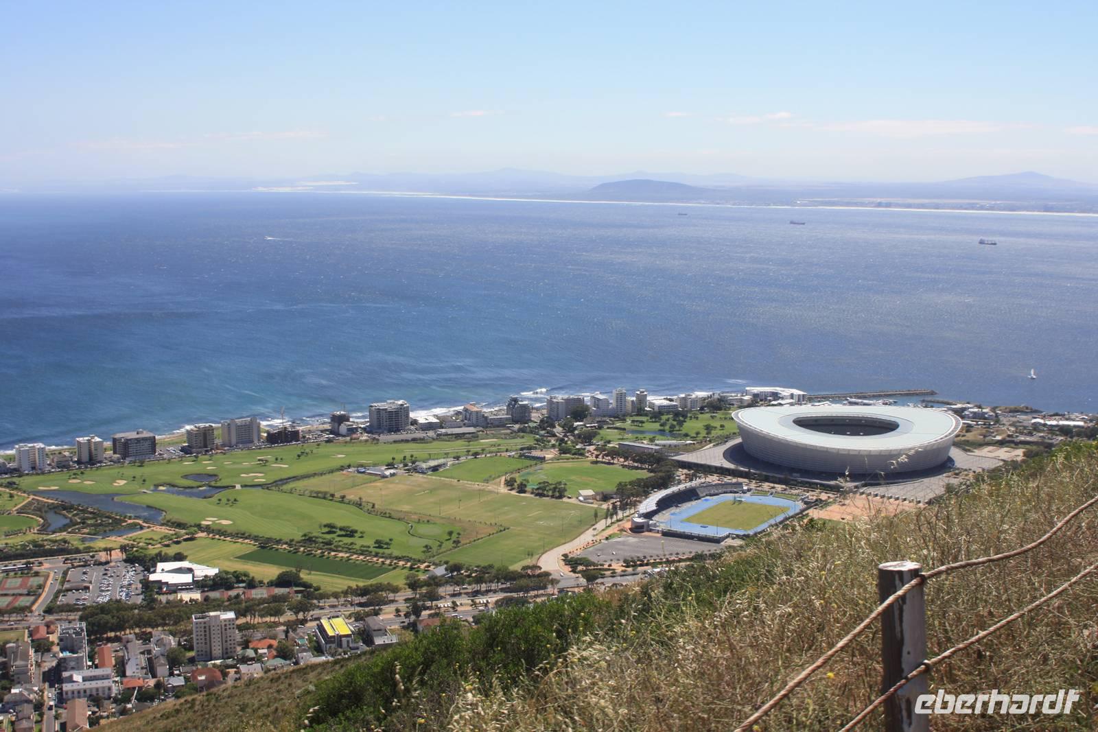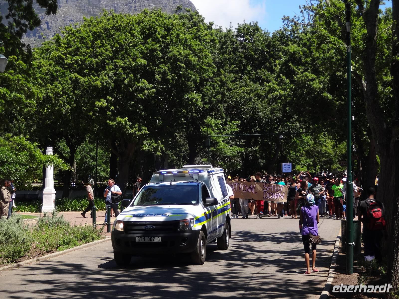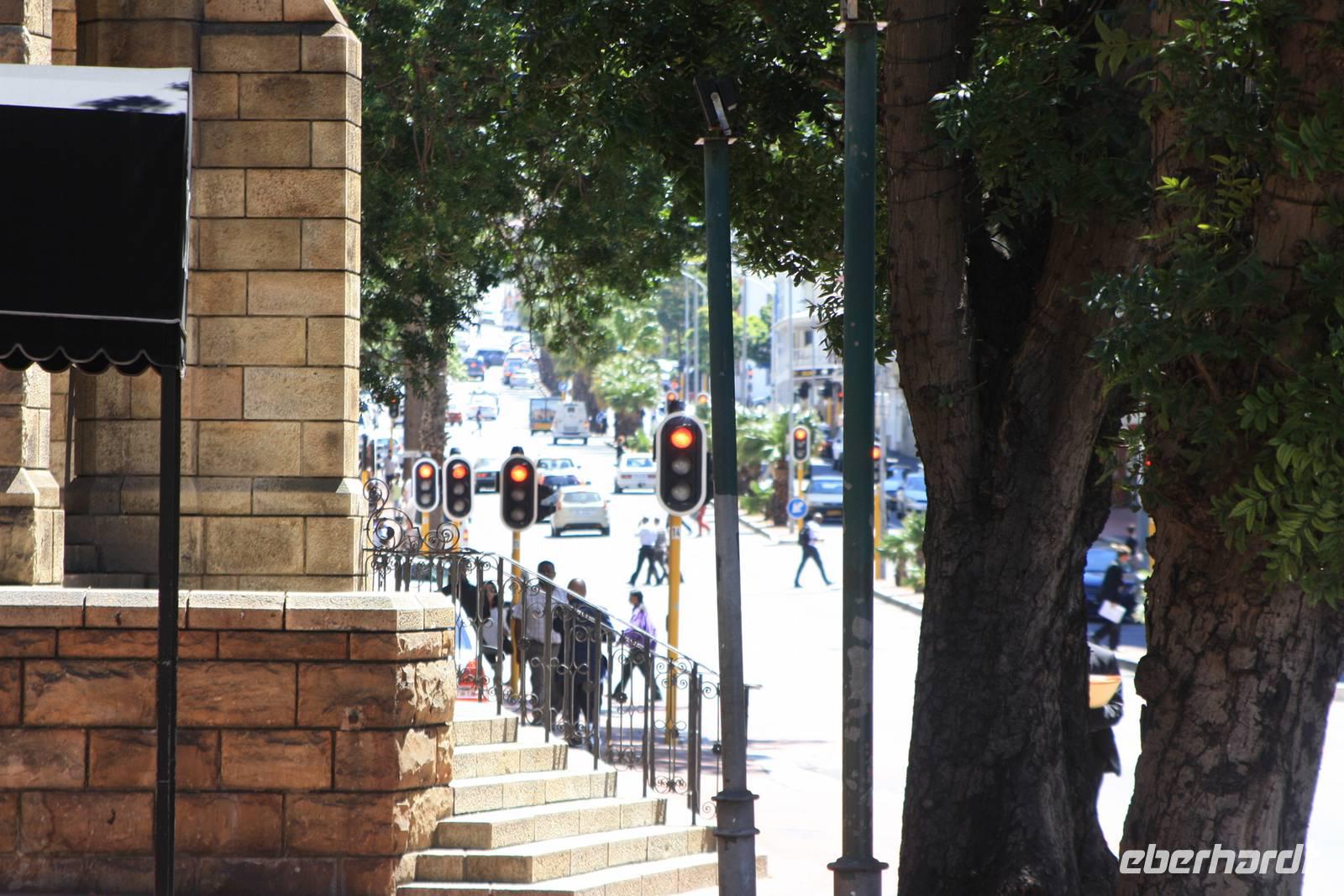 Da wir dem allmorgendlichen Berufsverkehr in Richtung Kapstadt aus dem Wege gehen wollten, starteten wir gemütlich in unseren heutigen Tag. Auf dem Weg sahen wir schon, wie sich langsam die „Tischdecke" über den Tafelberg legte und nach der Kofferabgabe im Hotel stand letztendlich leider fest, dass wir an diesem Tag nicht auf den Tafelberg konnten, da der Wind zu stark war und der Seilbahnbetrieb eingestellt wurde. Das tat unserer guten Stimmung aber keinen Abbruch und wir erlebten trotz alledem einen schönen Tag in Kapstadt. Zuerst ging es für unsere Gruppe auf den Signal Hill, einem Hügel über Kapstadt thronend, der uns einen tollen Blick auf den Tafelberg, den Ozean mit dem berühmten Robben Island, den Lion´s Head - dem Löwenkopf - und über große Teile von Kapstadt gewährte. Unser nächster Stopp war das Malaienviertel mit seinen bunten Häusern, wir schlenderten durch die Gassen und wurden über den Zweck dieser bunten Bemalung aufgeklärt. Diese diente Früher zur Orientierung, denn nur wenige Teile der Bevölkerung konnten lesen oder schreiben und somit wusste jeder, wer in welchem Haus wohnte, vorausgesetzt man war nicht farbenblind. Weiter ging es durch die turbulente Innenstadt an verschiedenen Regierungsgebäuden vorbei und durch das Bankenviertel in Richtung Südafrikanischen Nationalmuseum, wo wir unseren Minibus abstellten und zu Fuß den Company Garden, einen sehr schön angelegten botanischen Garten erkundeten. Durch die Altstadt und über den Marktplatz schlenderten wir zu Fuß, bevor es wieder zurück in Richtung Minibus ging. Kurz vor der Ankunft am Parkplatz begegneten wir dann noch einer Gruppe von Studenten, die wir schon aus den Zeitungen und den Nachrichten kannten, die aber friedlich durch die Straßen zogen und gegen die Erhöhung der Studiengebühren protestierten. Danach fuhren wir zurück zum Hotel, bezogen unsere Zimmer und genossen ein wenig Freizeit. Am Nachmittag ging es dann zur berühmten Waterfront mit ihren vielen Geschäften und Restaurants, wir brauchten ja schließlich noch ein paar Souvenirs und hungrig waren wir auch.
