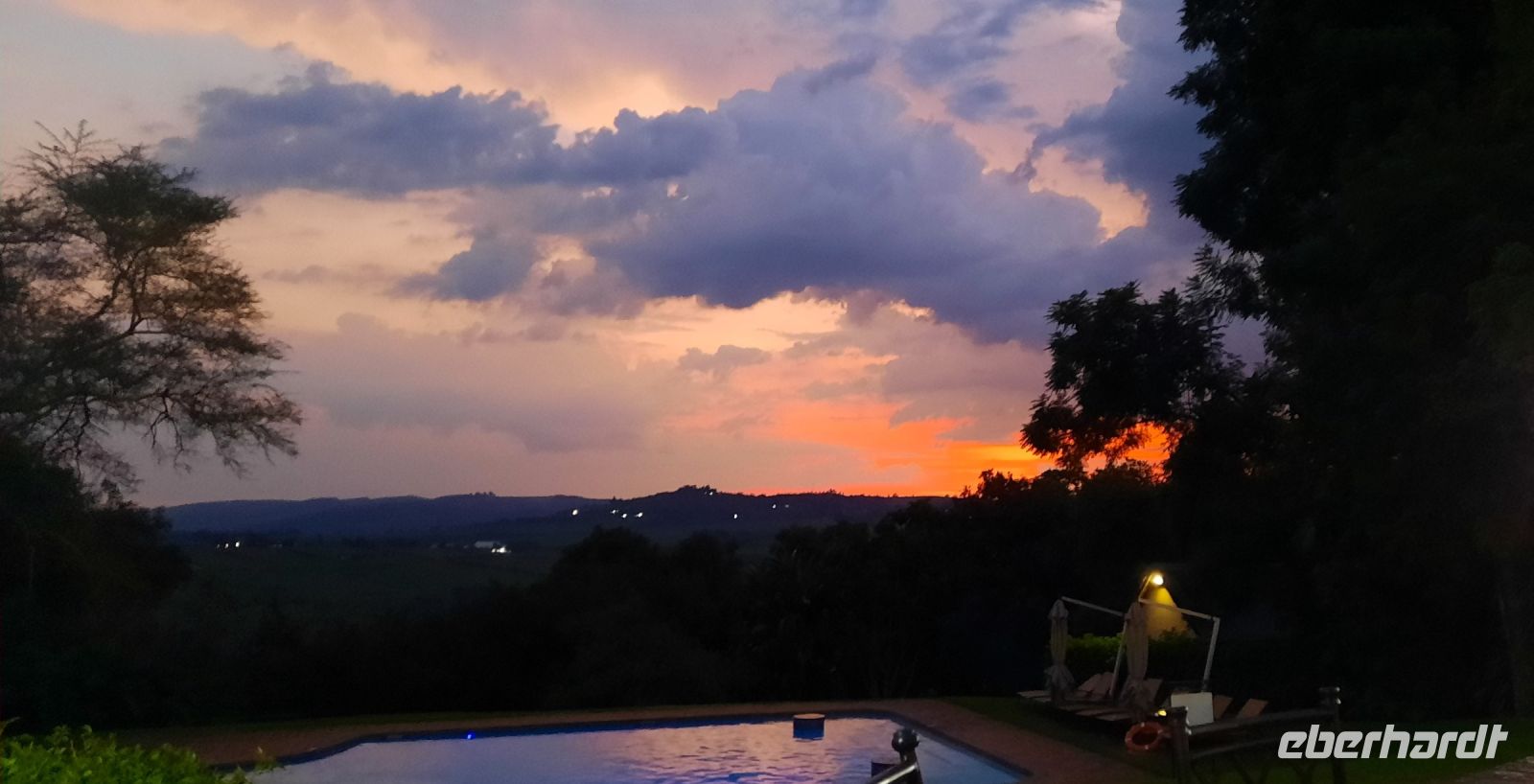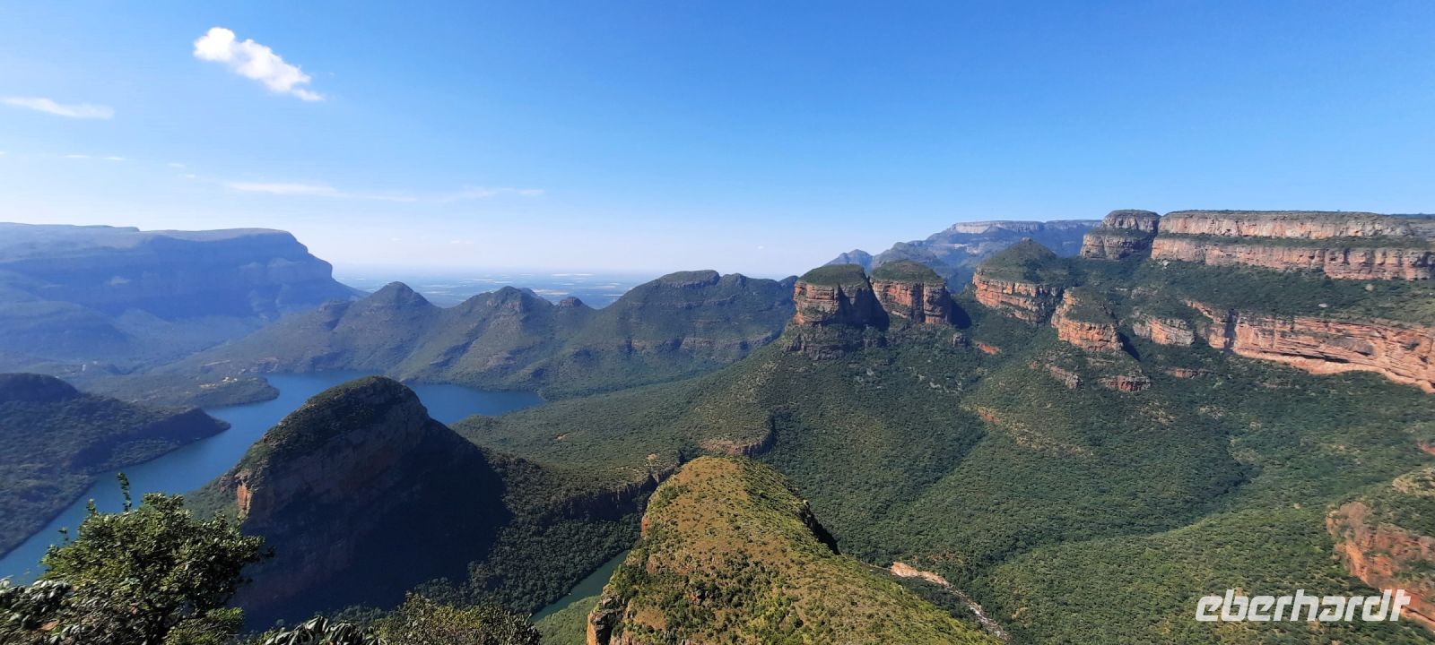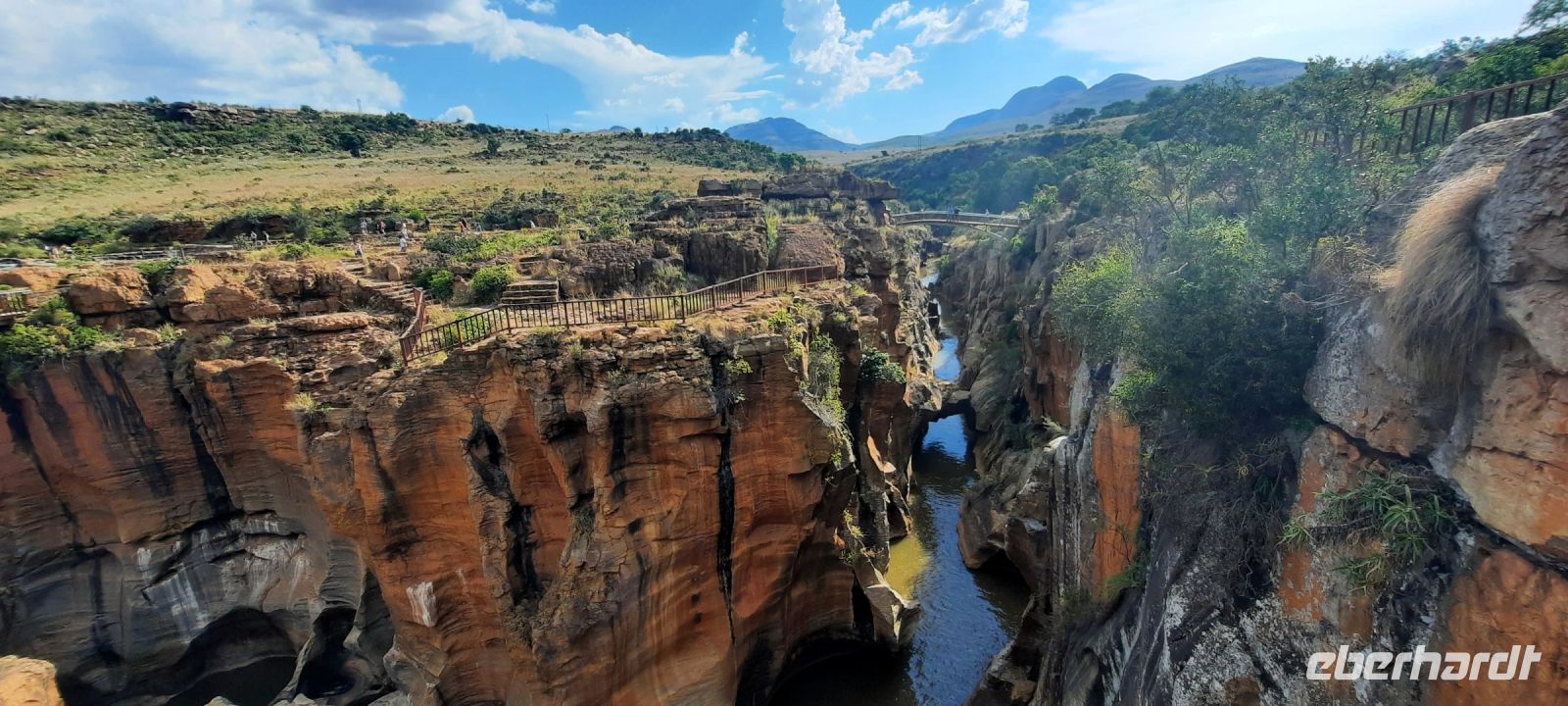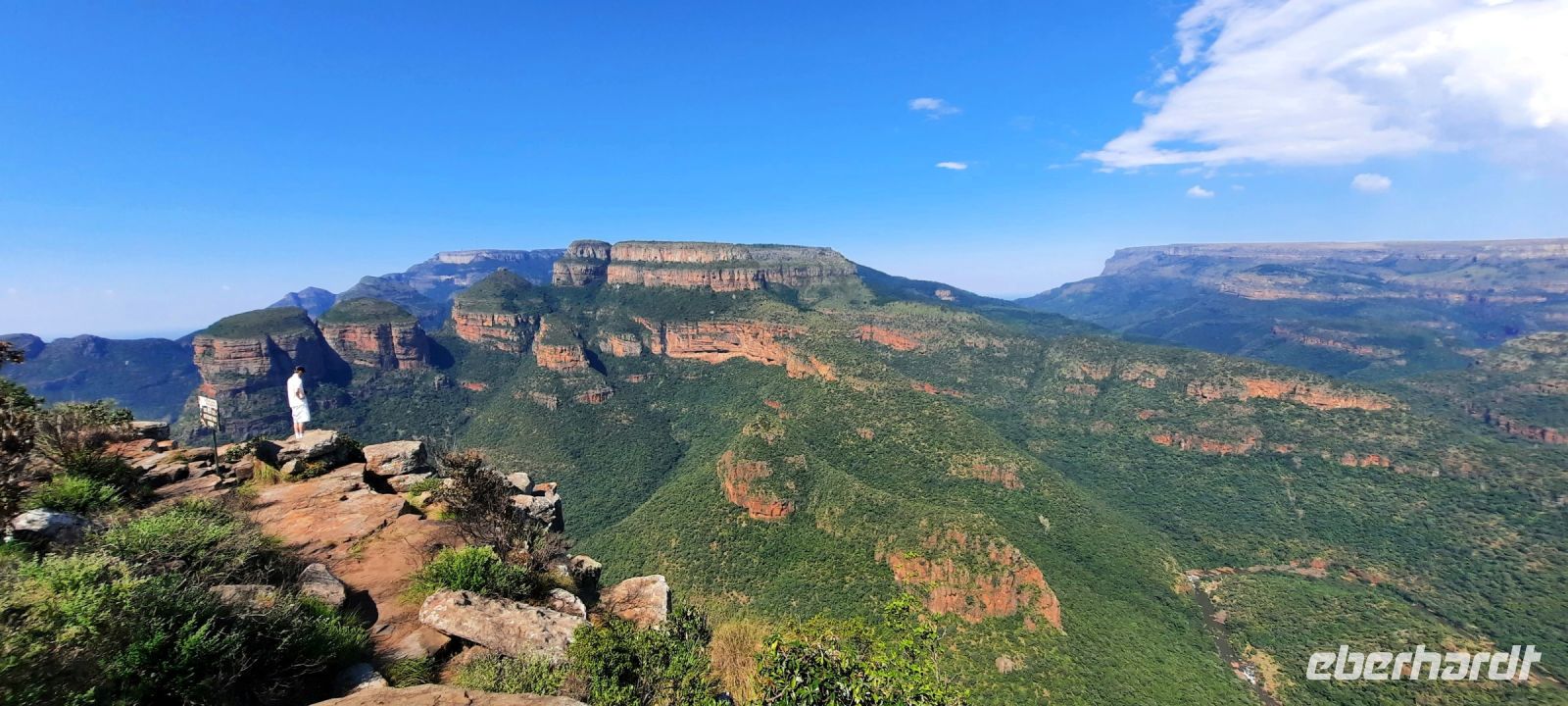 Nach der ersten, teils windigen und mit Wetterleuchten bestückten Nacht wurden wir mit einem lauten Hadeda, Hadeda geweckt. Die Hadedasch-Ibise fühlten sich hier sichtlich wohl. Nach dem Frühstück holten uns Benton und Frans ab. Sie hatten zu Hause geschlafen. Via Autobahn verließen wir Pretoria. Auf der gut ausgebauten Autobahn kamen wir zügig voran. Frans unterhielt uns mit Geschichten. So erfuhren wir, dass die Stadt Cullinan nach dem Besitzer der Diamant-Mine benannt wurde, wo der größte Diamant gefunden wurde. Der "Stern von Afrika" brachte im Rohzustand ein Gewicht von satten 3106,75 Karat auf die Waage. Übrigens: Teile von ihm zieren die britische Krone. In der Ferne sahen wir auch Steinkohle-Tagebaue, riesige Türme der Kraftwerke und einen buddhistischen Tempel. Im beschaulichen Mashishing (Lydenburg) machten wir in einem Steakhouse Mittagspause. Super Service und leckeres Essen. Wir mussten also nicht leiden, wie die Bewohner des früheren Lydenburgs, heute eine fruchtbare Region mit vielen Obstplantagen. Das Wetter war genial, super für die nächsten Erkundungen. Am Blyde River Canyon hatten wir eine perfekte Sicht auf den wasserführenden Canyon und die Three Rondalves. Später erkundeten wir Bourkes Luck Potholes (Glücksstrudel-Löcher von Tom Bourke, der hier Gold fand, aber dennoch nicht glücklich verstarb.). Neben der geologisch-wissenschaftlich Begründung über die Entstehung erzählt auch dieser Ort eine interessante Geschichte. Eine Geschichte der Voortrekker mit Happy Ennd am Trauer (Treur)- und Freuden (Blyde)fluß. Unsere letzte Station der Panoramaroute auf dem Hochplateau war eines der God`s Windows(Gottes Fenster). Auch hier war die Sicht auf das Lowvled zum Kruger Nationalpark bis Mosambik super. Unser heutiges Ziel war das Hazyview Sun Hotel. In der schönen Anlage bezogen wir unsere Zimmer und entspannten bis zum Abendessen. Zum Abendessen bedienten wir uns am reichhaltigen Buffet. Die Damen stießen mit einem Gin & Tonic auf Ihren heutigen Ehrentag an. Doch nun schnell zu Bett, am nächsten Morgen stand eine Pirschfahrt im Kruger Nationalpark auf dem Programm.