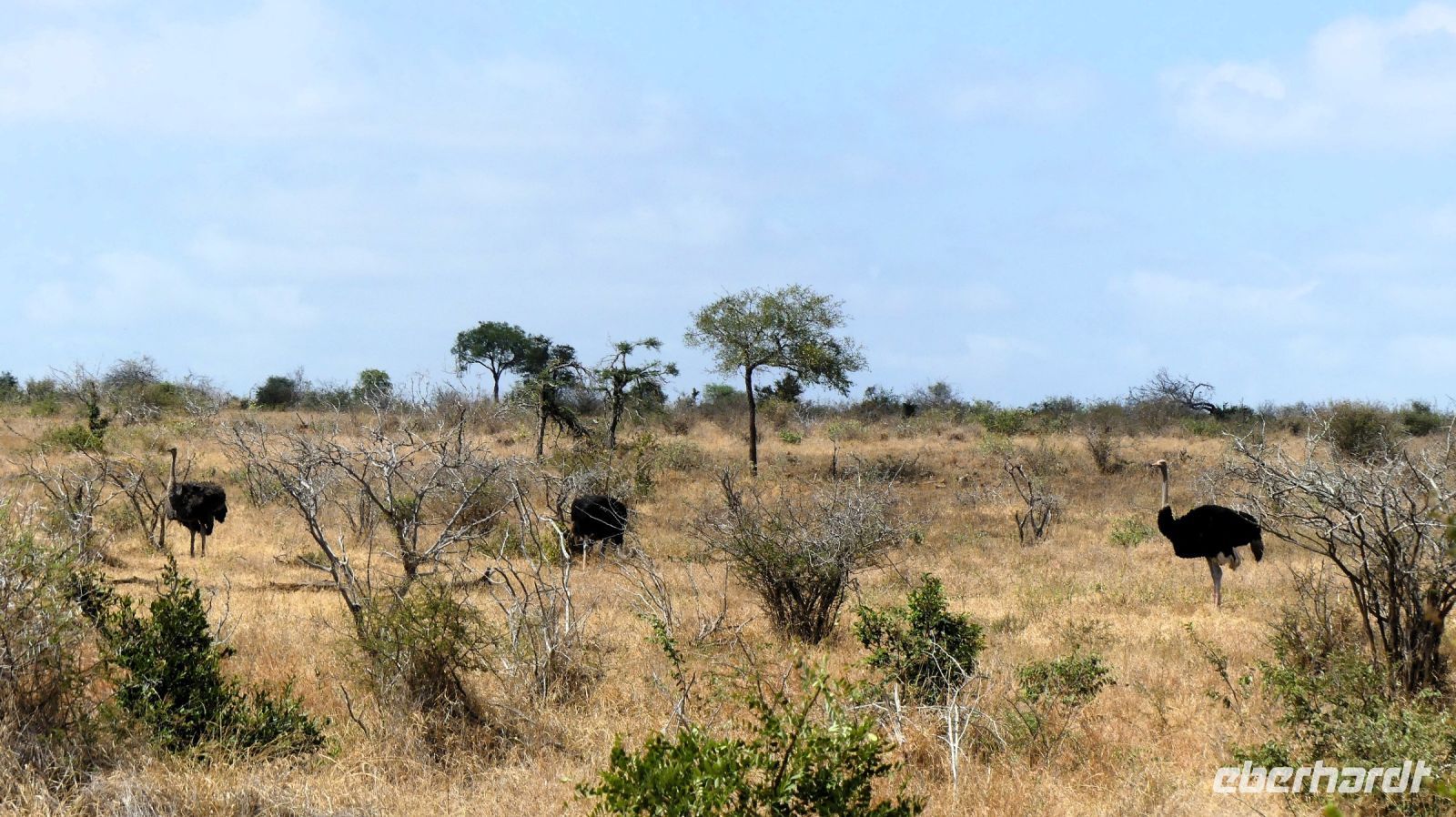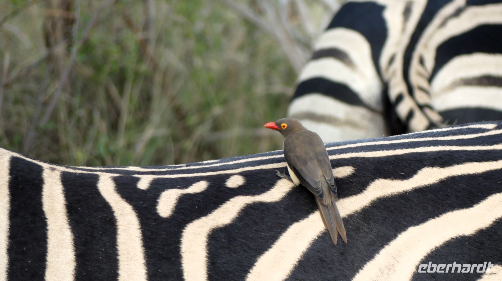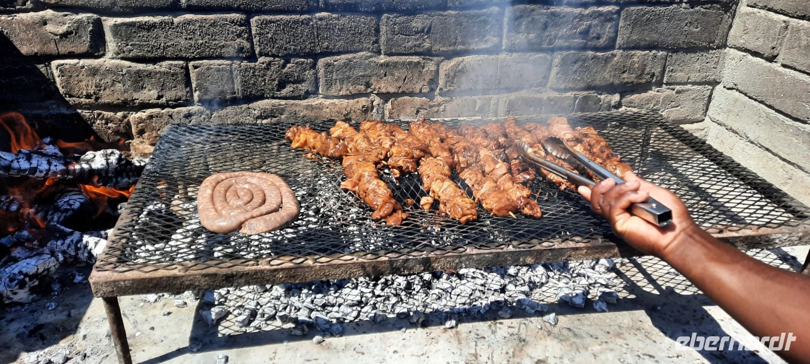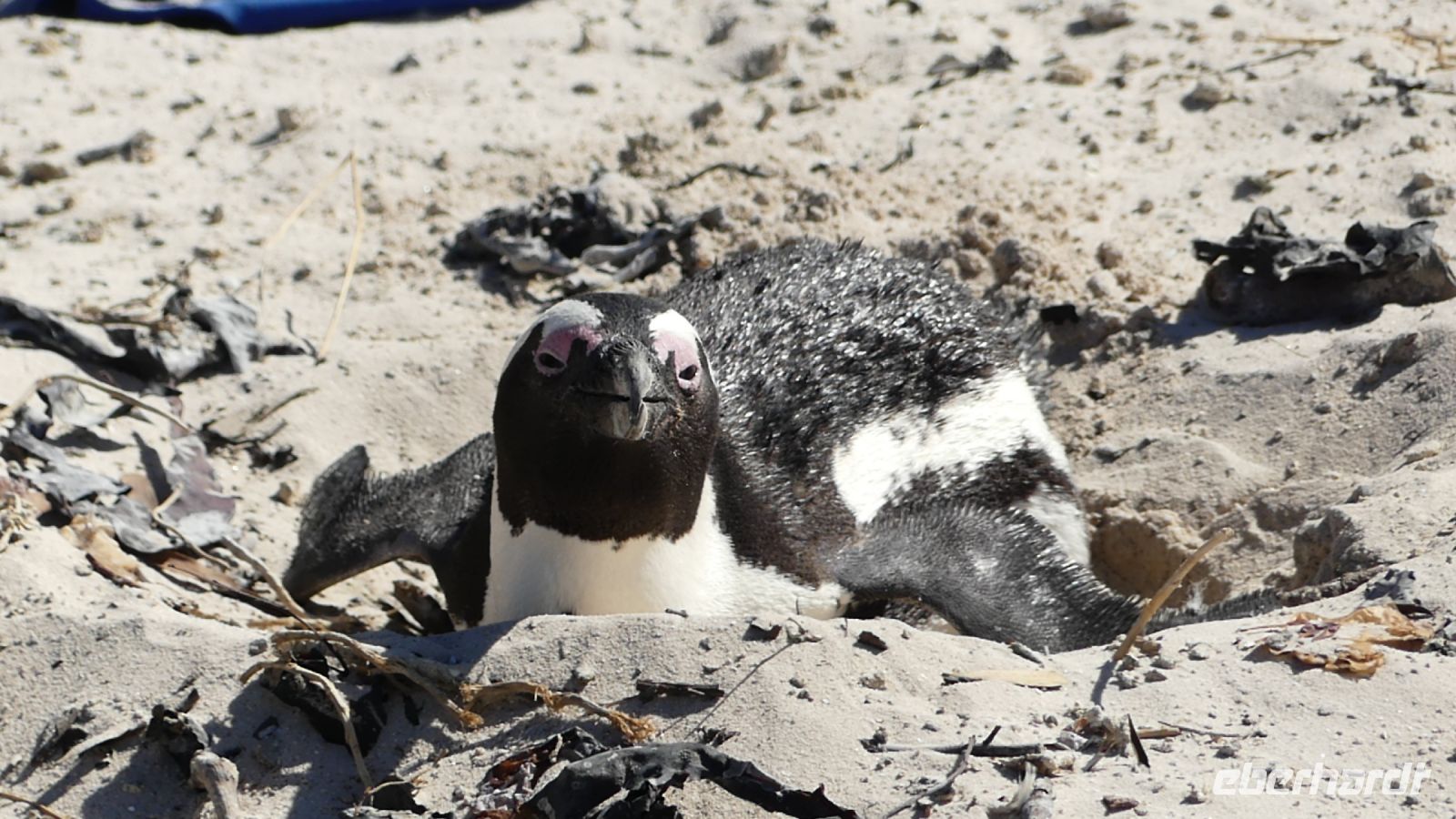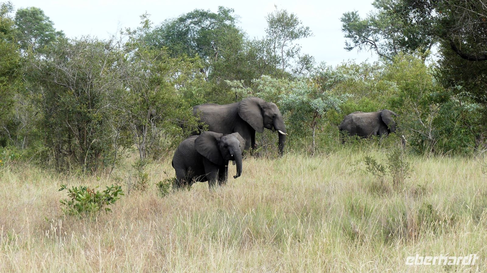 Nach dem Frühstück begrüßten uns Donald und Dencil, unsere Ranger für unsere Pirschfahrt im Addo. Wir bestiegen unsere komfortablen Jeeps und fuhren zum nicht weit entfernten Main Gate. Wir erfuhren, dass bereits 1931 ein kleines Gebiet von 2.500 Hektar als Schutzgebiet deklariert wurde, um die letzten, in dieser Region lebenden Elefanten zu retten. Damals waren es nur 16, über 600 sind es heute, die Zahl steigt ständig, da sie keine natürlichen Feinde haben. Heute erstreckt sich der Nationalpark bis zum Indischen Ozean auf 180.000 Hektar (inklusive des Meeresanteils). Somit beheimatet der Park nicht nur die Big 5, sondern die Big 7, denn Haie und Wale gehören dazu. Wir freuten uns auf einen sonnigen und elefantistischen Tag im Addo. Auf Schildern wurden wir hingewiesen, langsam zu fahren: Achtung Mistkäfer! Die Dung Beetles oder Pillendreher stehen sogar unter Artenschutz, verrichten sie doch den wichtigsten Job, das Putzen! Von der weit überschaubaren und grünen Landschaft, durchzogen mit Hügeln und gespickt mit zahlreichen Wasserlöchern waren wir verzaubert. Überall Speckbäume (Büsche) mit ihren saftig fleischigen Blättern, die hier das Hauptnahrungsmittel der grauen Riesen sind. Und dazwischen Elefanten, Elefanten, Elefanten, die natürlich die Haupttakteure im Park sind. Ob im Busch oder an den Wasserlöchern versammelt, mal in der Ferne, mal ganz hautnah! Was uns sofort auffiel, die meisten Weibchen haben keine Stoßzähne. Ein genetische Eigenart, die wahrscheinlich durch die Wilderei (Elfenbein) ausgelöst wurde. Heute versucht man frisches Blut in die Erbfolge zu bringen. z.B. wurde ein starker, männlicher Elefantenbulle aus dem Krüger Nationalpark in eine Herde integriert. Wir entdeckten Steppenzebras, Hartebeest, Schakal und die putzigen Warzenschweine; ein Sing-Habicht spähte die Umgebung aus, während ein Erdmännchen auf einem Busch on Top seinen Wachposten-Job sehr ernst nahm. Später kreuzte eine Straßenfamilie unseren Weg. Mama Strauß frühstückte und Papa Strauß sorgte sich liebevoll um den Nachwuchs - ein tierischer Morgen! Auf einer sicheren Anhöhe hielten wir für einen Boxenstopp. Mit frischen Kaffee genossen wir den Panoramablick, bevor wir weiter pirschten. Ab und zu hielten wir den Atem an, wenn Elefanten fast unseren Jeep streiften. Am Hapoor Wasserloch, welches nach einem sehr dominaten Bullen mit markanten Schlitz im Ohr benannt wurde, herrschte reger Betrieb: Elefanten-Schlammschlacht rechts, große Elefanten- und Zebraherden links und wir mittendrin. Der Hunger auf fotogene Elefanten war vorerst gestillt, nun waren wir dran. Auf Jacks Picknickplatz entzündeten Dencil und Donald das Feuer: Braai Time. Beim rustikalen Busch-BBQ wurden wir mit allerhand Leckereien bewirtet: Kudu-Wurst, Fleischspieß meets Salat und mehr. Baie Dankee, baie lekker. Gut gestärkt verspürten wir dennoch Hunger auf weitere Pirscherfolge: Warzenschweine, Büffel, Kudus, Schildi und einen Löwen. Wenn auch aus weiterer Entfernung, aber immerhin einer von den zwei Löwenmännchen, die hier im Addo mit 3 Löwinnen leben. Ein Tag voller elefantistischer Momente im Addo ging zu Ende. In unserer schönen Lodge verabschiedeten wir uns von Dencil und Donald, die diesen Tag besonders für uns gemacht haben. Beim leckeren Abendessen ließen wir den Tag noch einmal Revue passieren. Auch Fledermäuse waren wieder zu Gast, eine überlebte leider nicht;-).