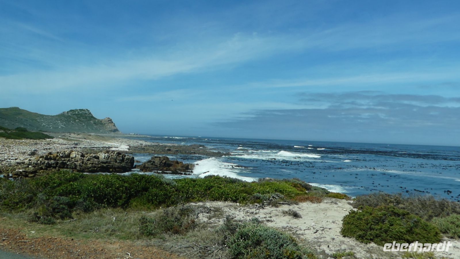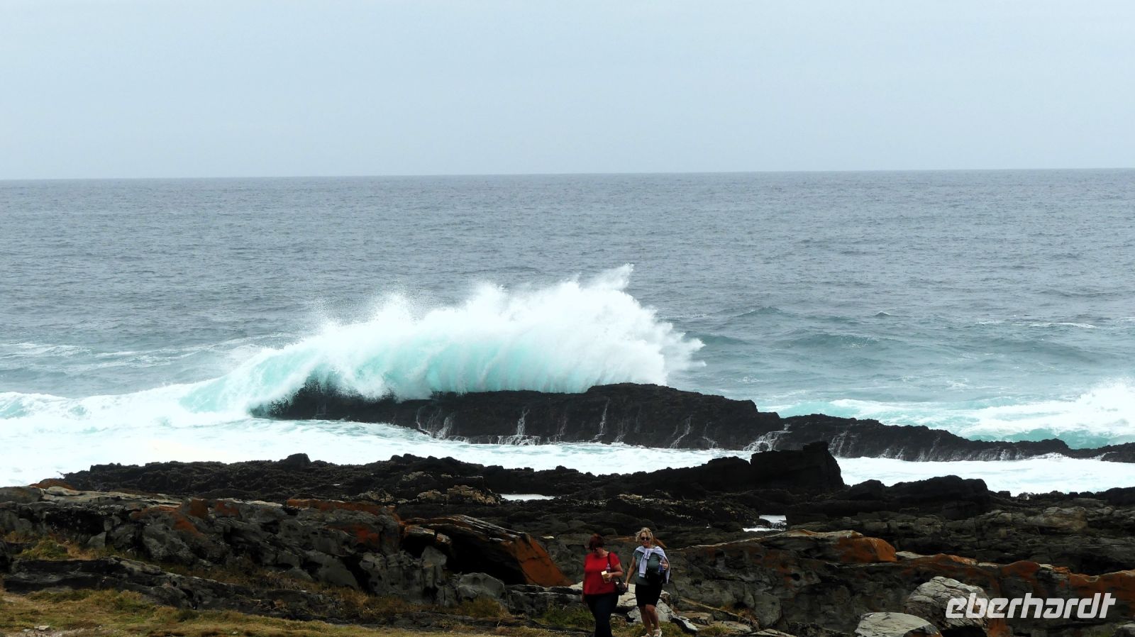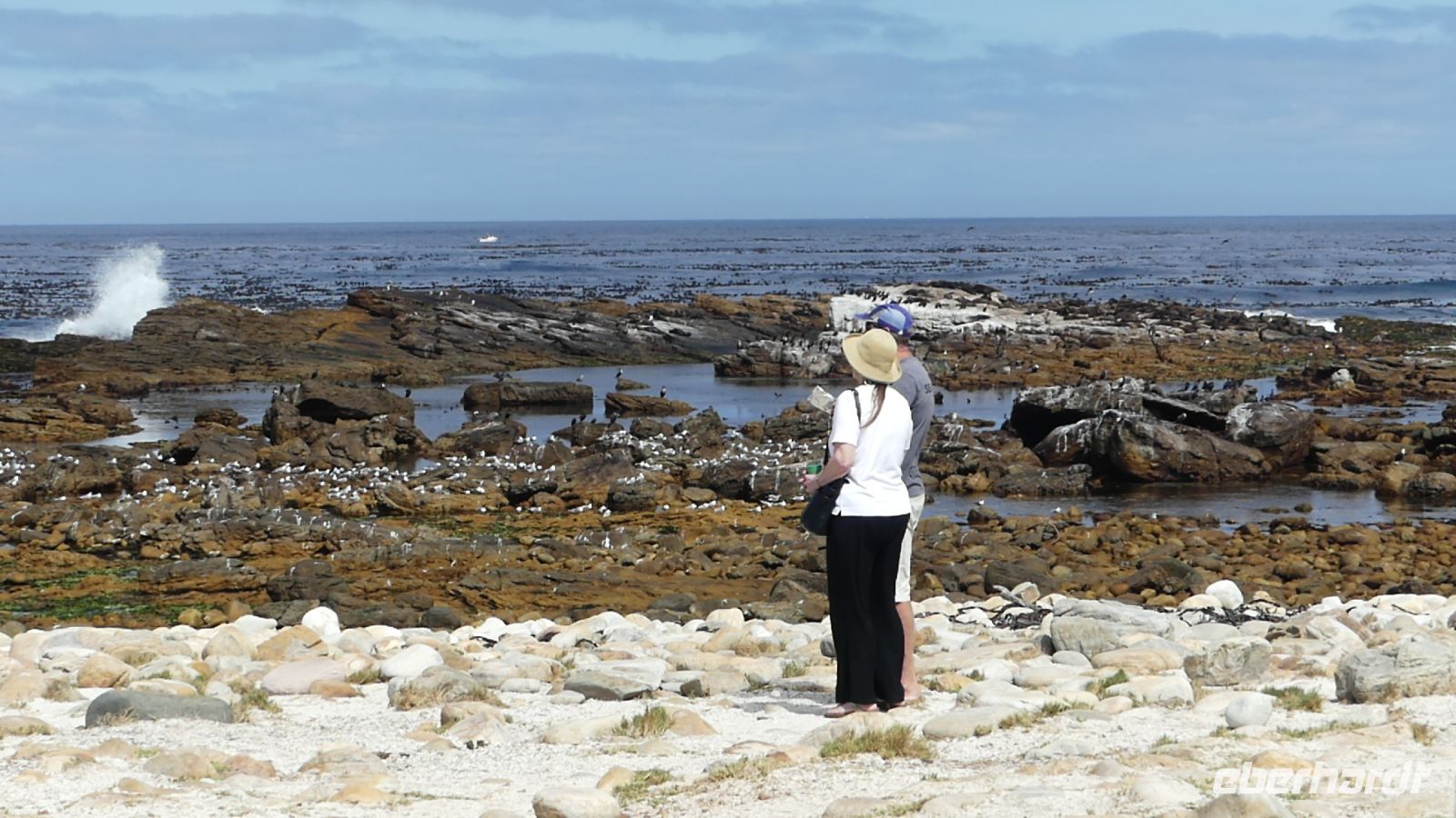 Via Port Elizabeth fuhren wir die Gartenroute entlang. Stop & Go, einige Baustellen bremsten uns immer wieder aus. Der Himmel war heut etwas Wolken verhangen und einzelne Regentropfen fielen vom Himmel. Rechts und links dicht bewaldete Landschaft, durchbrochen mit tiefen Schluchten und teilweise Ausblicken auf den Ozean. Im Tsitsikamma Nationalpark angekommen, hatte es aufgehört zu regnen. Wir wanderten auf dem befestigten Rundweg durch ein Stück durch „Urwald" und wurden mit fantastischen Ausblicken beschenkt. Auch die Klippschliefer fanden dieses Fleckchen Erde besonders schön. Auf den, nur etwas schaukelnden Hängebrücken stehend, schauten wir fasziniert wie der schwarze Stormsriver in den Indischen Ozean mündet. Einige Kanufahrer wagten sich in die Fluten hinaus. Obwohl Ebbe war, peitschte der Indische Ozean stürmisch , mit Meter hohen Wellen an die felsige Küste. Später überquerten wir die Bloukrans Bridge, von der sich Adrenalin-Junkies kopfüber in die 216 m tiefe Schlucht stürzen können. Vorbei an Plettenberg Bay erreichten wir am Nachmittag die Lagunenstadt Knysna. Nach dem wir im zentral gelegenen Hotel unsere Zimmer bezogen hatten, gingen viele auf eine Shopping Tour zur nahegelegenen Waterfront. Am Abend bummelten wir nach Thesen Island, eine kleine Insel in der Lagune. Im dortigen Sirocco Restaurant hatten wir einen Tisch reserviert. Wir wurden vorzüglich bewirtet und schlemmten ausgiebig nach Herzenslust a la carte. Unterm südafrikanischen Sternenzelt führte uns der anschließende Verdauungsspaziergang zum Hotel zurück.