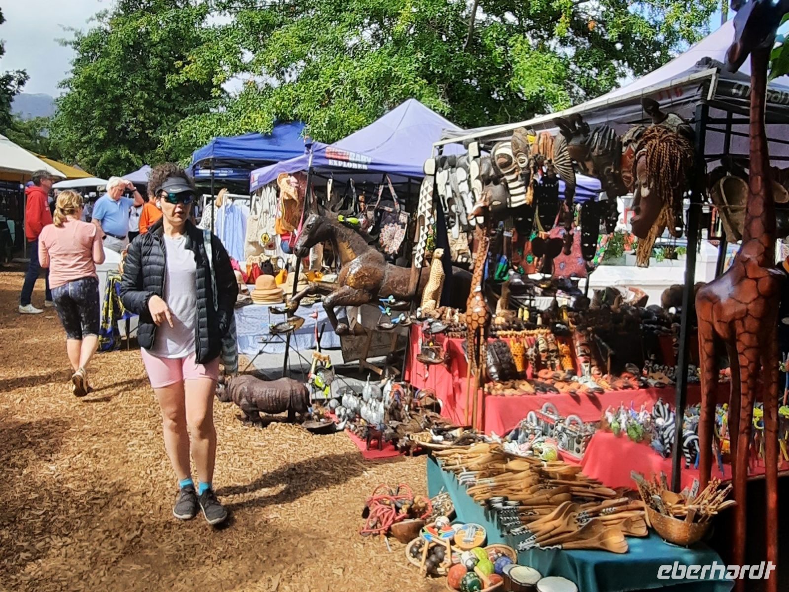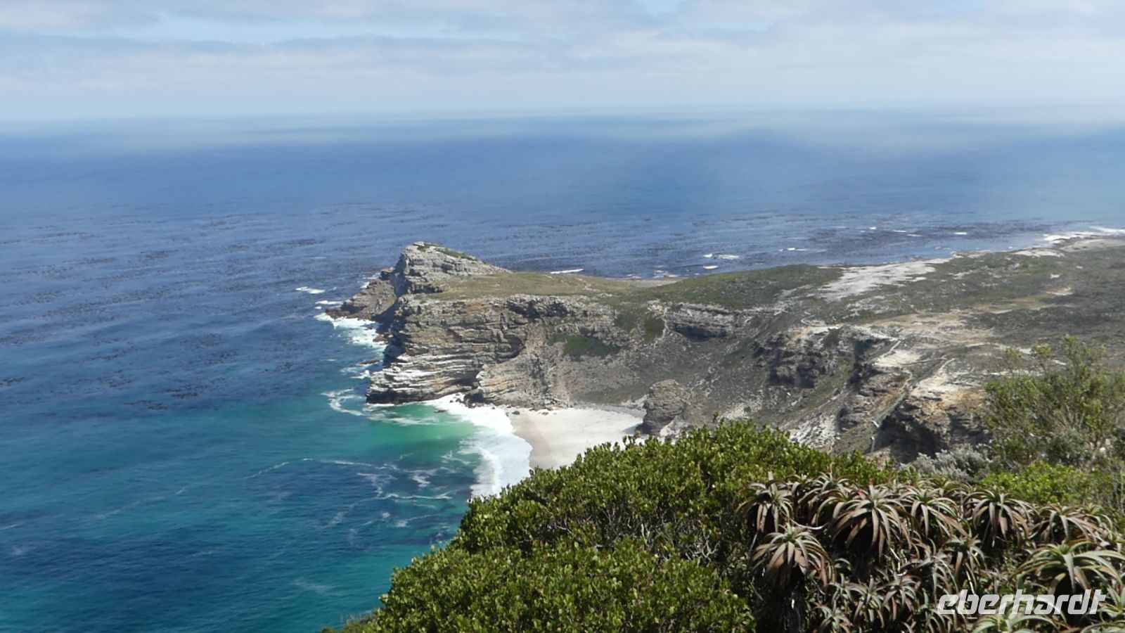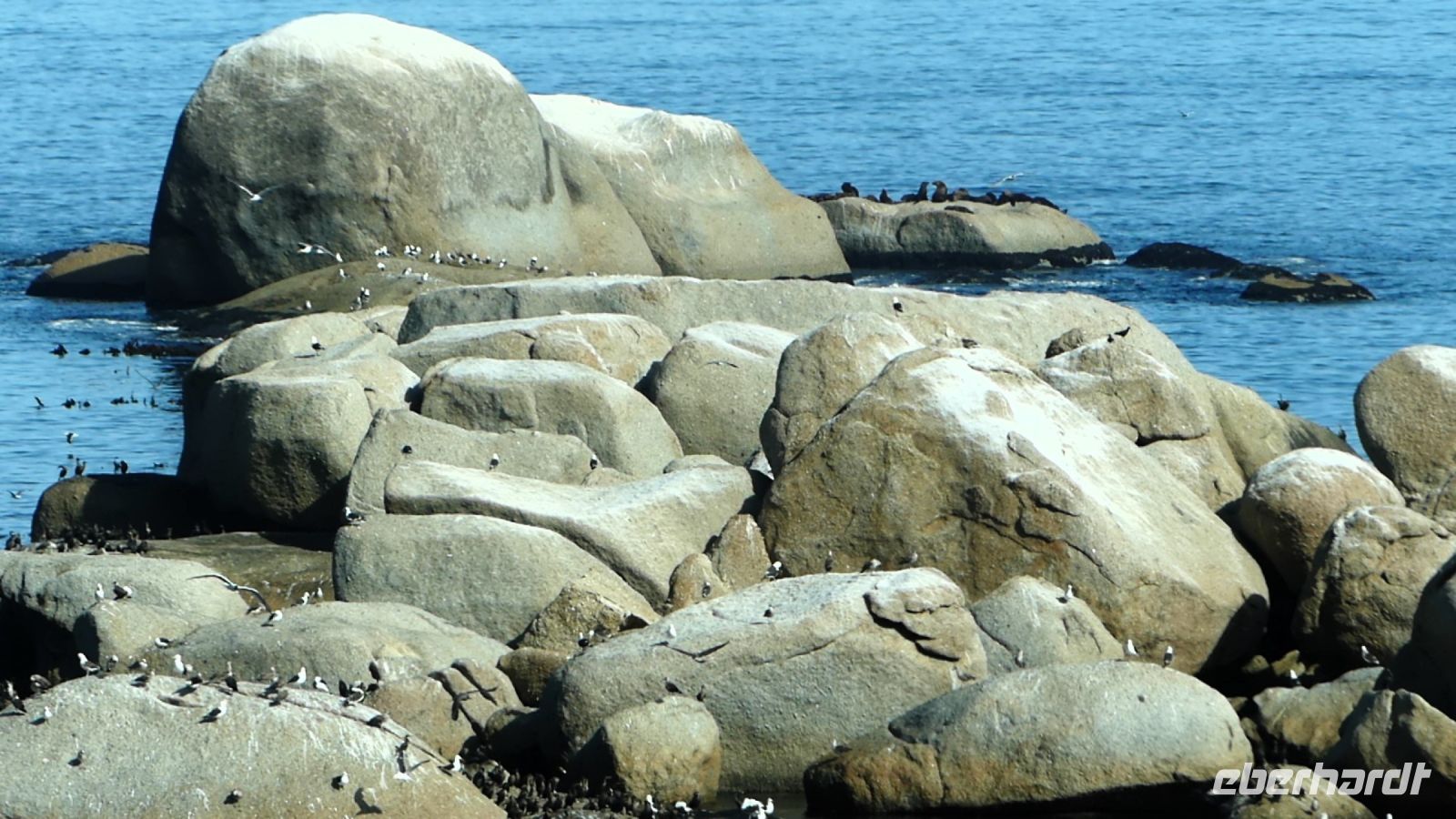 Via Port Elizabeth fuhren wir die Gartenroute entlang. Stop & Go, einige Baustellen bremsten uns immer wieder aus. Der Himmel war heut etwas Wolken verhangen und einzelne Regentropfen fielen vom Himmel. Rechts und links dicht bewaldete Landschaft, durchbrochen mit tiefen Schluchten und teilweise Ausblicken auf den Ozean. Im Tsitsikamma Nationalpark angekommen, hatte es aufgehört zu regnen. Wir wanderten auf dem befestigten Rundweg durch ein Stück durch „Urwald" und wurden mit fantastischen Ausblicken beschenkt. Auch die Klippschliefer fanden dieses Fleckchen Erde besonders schön. Auf den, nur etwas schaukelnden Hängebrücken stehend, schauten wir fasziniert wie der schwarze Stormsriver in den Indischen Ozean mündet. Einige Kanufahrer wagten sich in die Fluten hinaus. Obwohl Ebbe war, peitschte der Indische Ozean stürmisch , mit Meter hohen Wellen an die felsige Küste. Später überquerten wir die Bloukrans Bridge, von der sich Adrenalin-Junkies kopfüber in die 216 m tiefe Schlucht stürzen können. Vorbei an Plettenberg Bay erreichten wir am Nachmittag die Lagunenstadt Knysna. Nach dem wir im zentral gelegenen Hotel unsere Zimmer bezogen hatten, gingen viele auf eine Shopping Tour zur nahegelegenen Waterfront. Am Abend bummelten wir nach Thesen Island, eine kleine Insel in der Lagune. Im dortigen Sirocco Restaurant hatten wir einen Tisch reserviert. Wir wurden vorzüglich bewirtet und schlemmten ausgiebig nach Herzenslust a la carte. Unterm südafrikanischen Sternenzelt führte uns der anschließende Verdauungsspaziergang zum Hotel zurück.