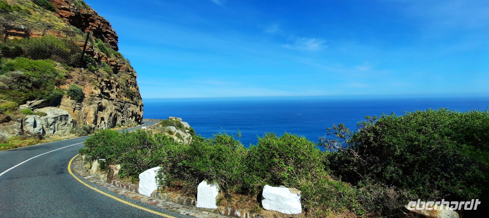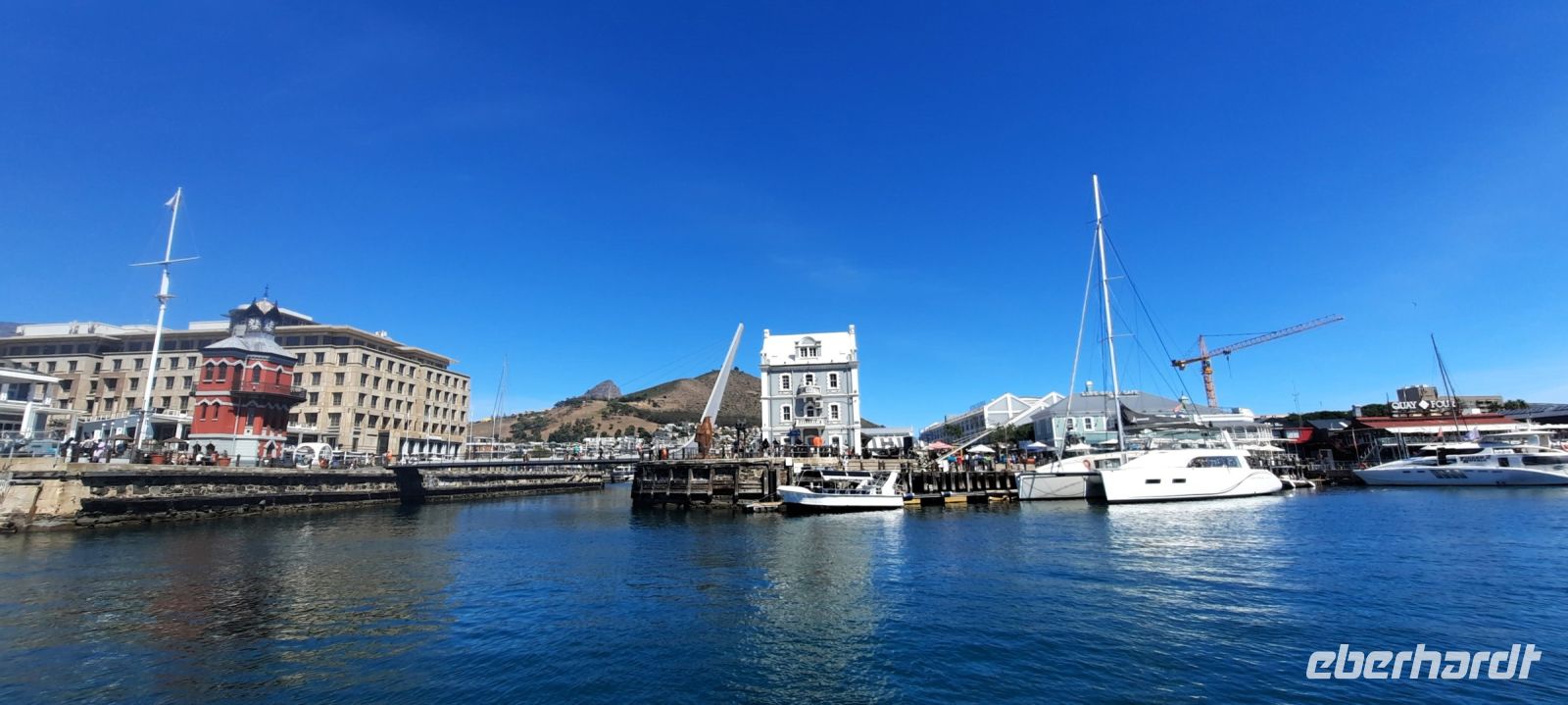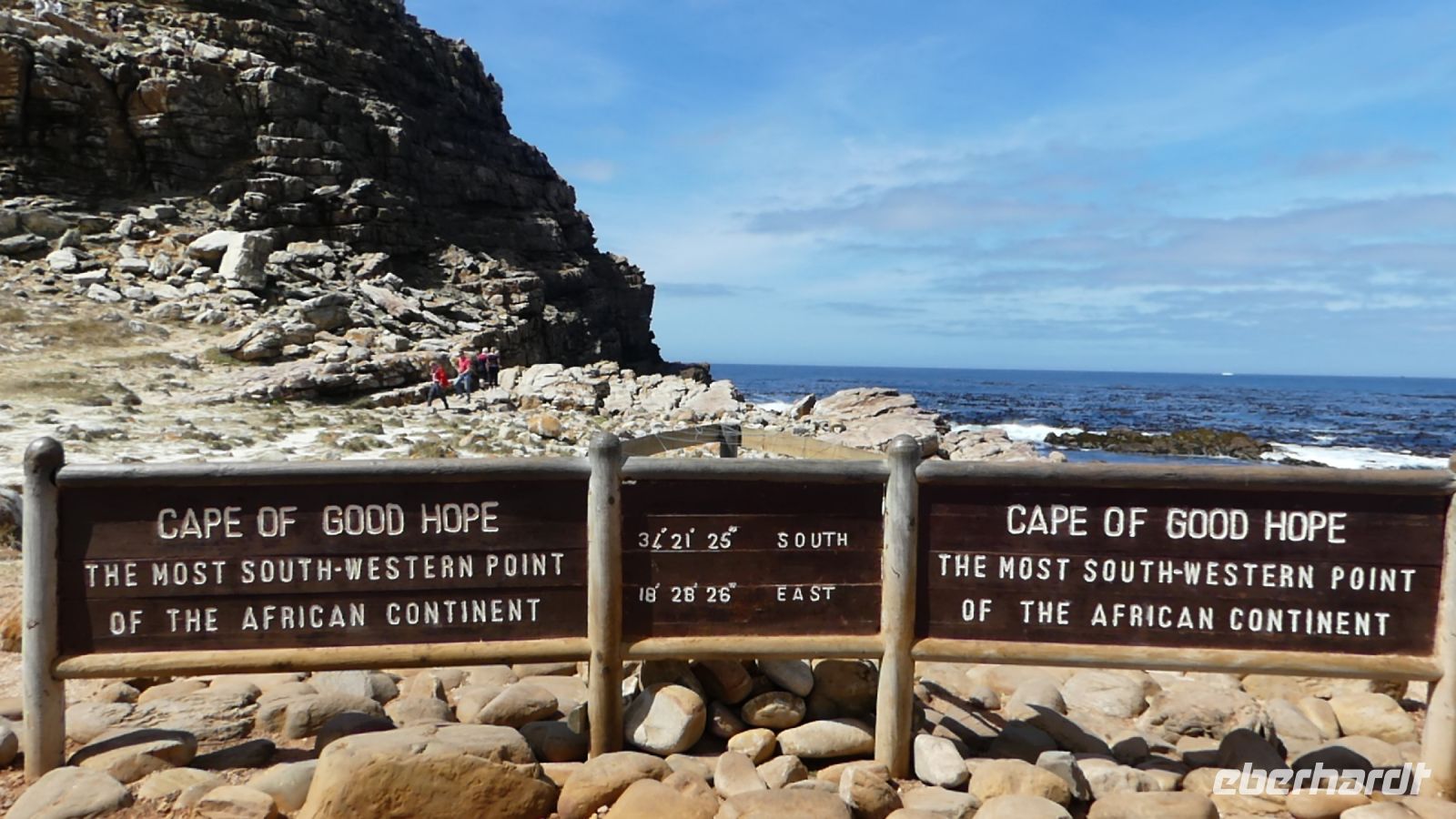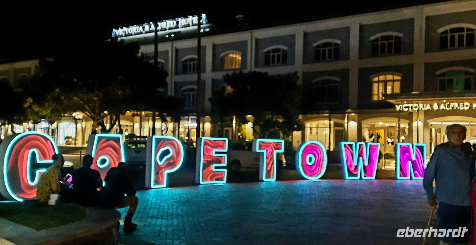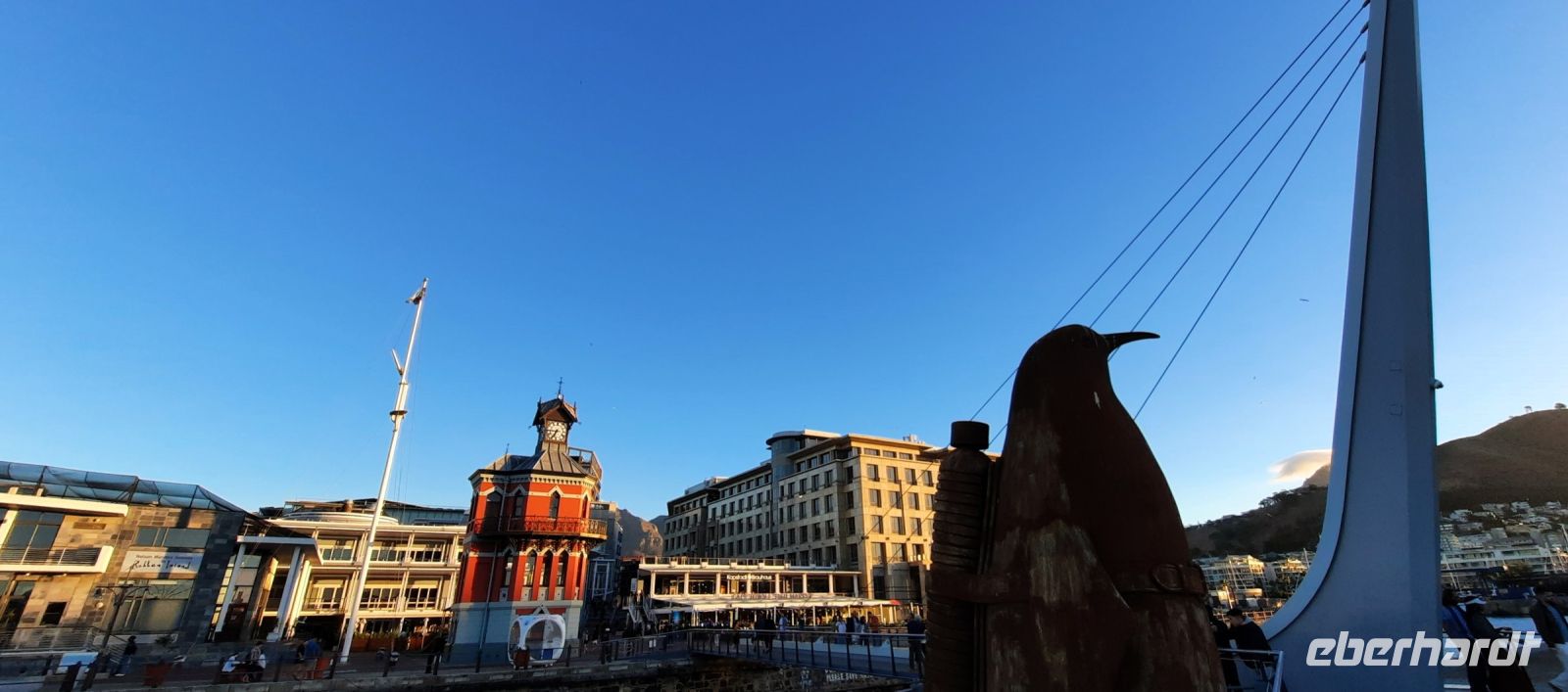 Nach einem vielfältigen Frühstück brachen wir zu neuen Abenteuern auf. Unser erstes Ziel da farbenfrohe Bo Kaap Viertel, unterhalb des Tafelbergs und natürlich mit Fotoshooting. Das Bo Kaap ist ein ganz besonderer Stadtteil, der Kapstadt historisch geprägt hat und mit einer einzigartigen muslimischen Gemeinschaft: herzlich und offen. In einem der ältesten Gewürzläden bei Zayed schnupperten und stöberten wir in den Regalen und erstanden Curry & Co für unser Kochstudio zu Hause. Karin shoppte derweil im Laden nebenan, um uns später mit traditionellem Cape Malay Food zu überraschen: Samoosas mit 2 O, denn sonst wären es keine Originalen. Anschließend schlängelte sich unser Bus durch das geschäftige Kapstadt. Via Sea Point und dem noblen Küstenvorort Clifton gelangten wir zum Maidon`s Cove, einem beliebten Aussichtpunkt mit Blick auf die 12 Apostel und die Bucht von Camps Bay - wieder ein perfekter Ort für Neidfotos und Selfies wie auch die Weiterfahrt an der Küste. Nach einem kurzen Zwischenstopp im Hafen von Hout Bay mit dicken Robben befuhren wir den spektakulären Chapman's Peak Drive, natürlich mit diversen Fotostopps. Entlang traumhafter Küsten ging`s zum Nationalpark Kap-Halbinsel. Am Cape Point herrschte bestes Wetter, wenn Engel reisen! Am berühmten Schild Kap der Guten Hoffnung war das obligatorische Gruppenfoto mit anschließender Kap Taufe angesagt. Zum zweiten Kap Punkt fuhren wir mit einer Zahnradbahn noch etwas höher, die letzten Stufen zum Leuchtturm mussten wir aber zu Fuß gehen. Der Ausblick vom Leuchtturm ganz oben raubte uns den Atem, einfach Wahnsinn. 9.5.75 km von Berlin entfernt - WOW! Später in Simons Town besuchten wir den Boulders Beach, wo es sich eine Pinguin-Kolonie gemütlich gemacht hat. Die schwarz-weißen Gesellen fühlten sich hier äußerst wohl und präsentierten sich als Fotomodels im Frack. Einer verteidigte hartnäckig ein blaues Basecape in seiner Sandkuhle. Nach diesem wunderbaren Ausflug kehrten wir in unser Hotel zurück. Kurz frisch gemacht, ging es noch mal auf Achse, schlafen können wir zu Hause. Unser Chauffeur Humphrey, den diesmal Zahnschmerzen plagten, brachte uns zu Victoria & Alfred Waterfront. Hier stürzten wir uns ins rege Treiben: Flanieren, Tanzen und Shopping. Rings um die Open Air Bühne war die Stimmung besonders ausgelassen. Eine rhythmische Competion erstklassiger High School Bands begeisterte. Zm Abendessen hatten wir uns im Restaurant Quay Four, direkt an der Waterfront verabredet. Auch hier schlemmten wir wieder a la carte. Ben, unser Kellner hatte viel zu tun. Auch gab es einen besonderen Moment: Ein herzliches Wiedersehen von Annett und Lovemore. Ja, richtig gelesen Lovemore. So der Name des Kellners, der die Gruppe um Annett 2016 an Silvester bediente - lovely memories.... Cape Town by night is magic - Glücklich, aber müde fielen wir in unsere Betten.