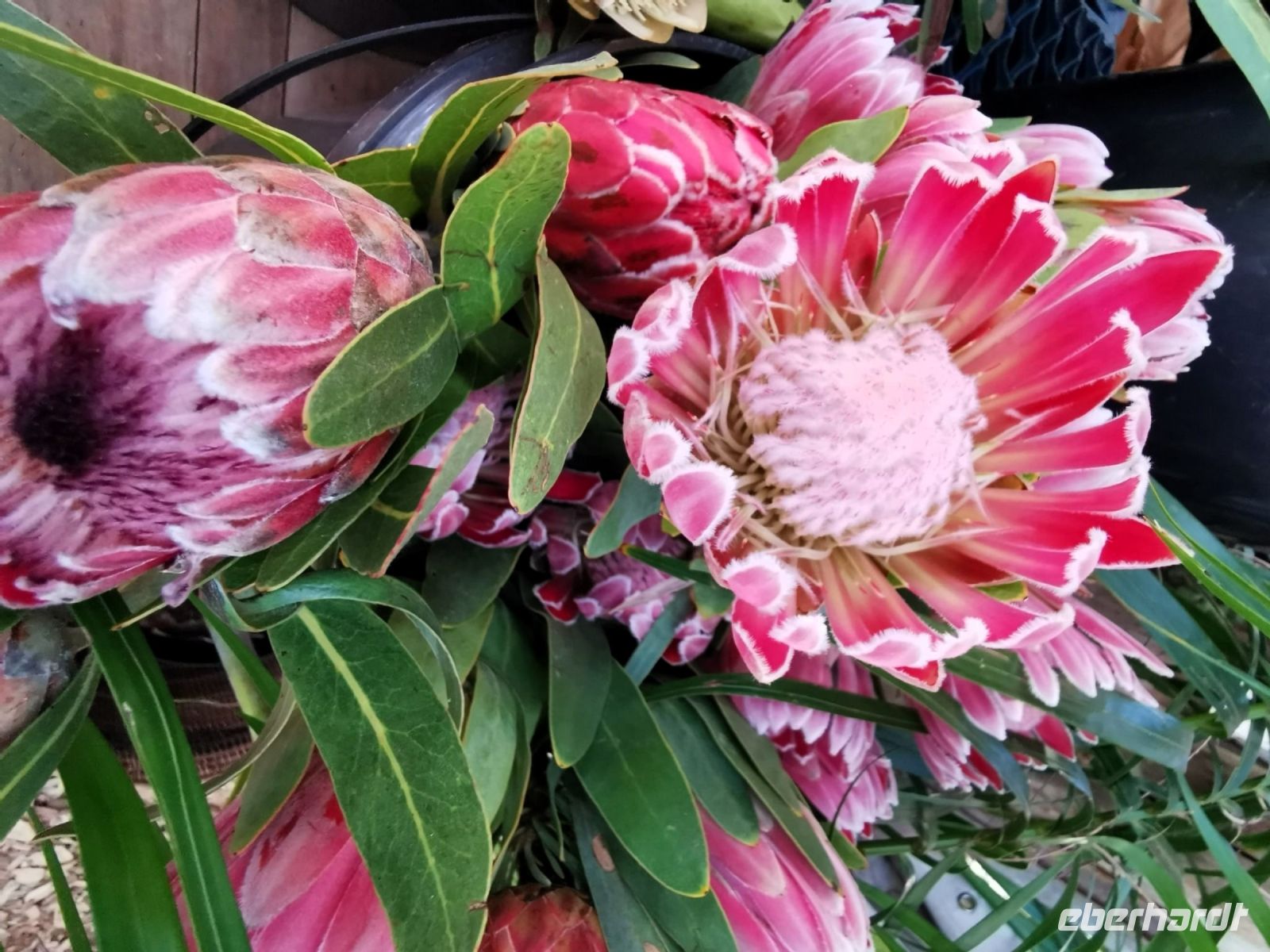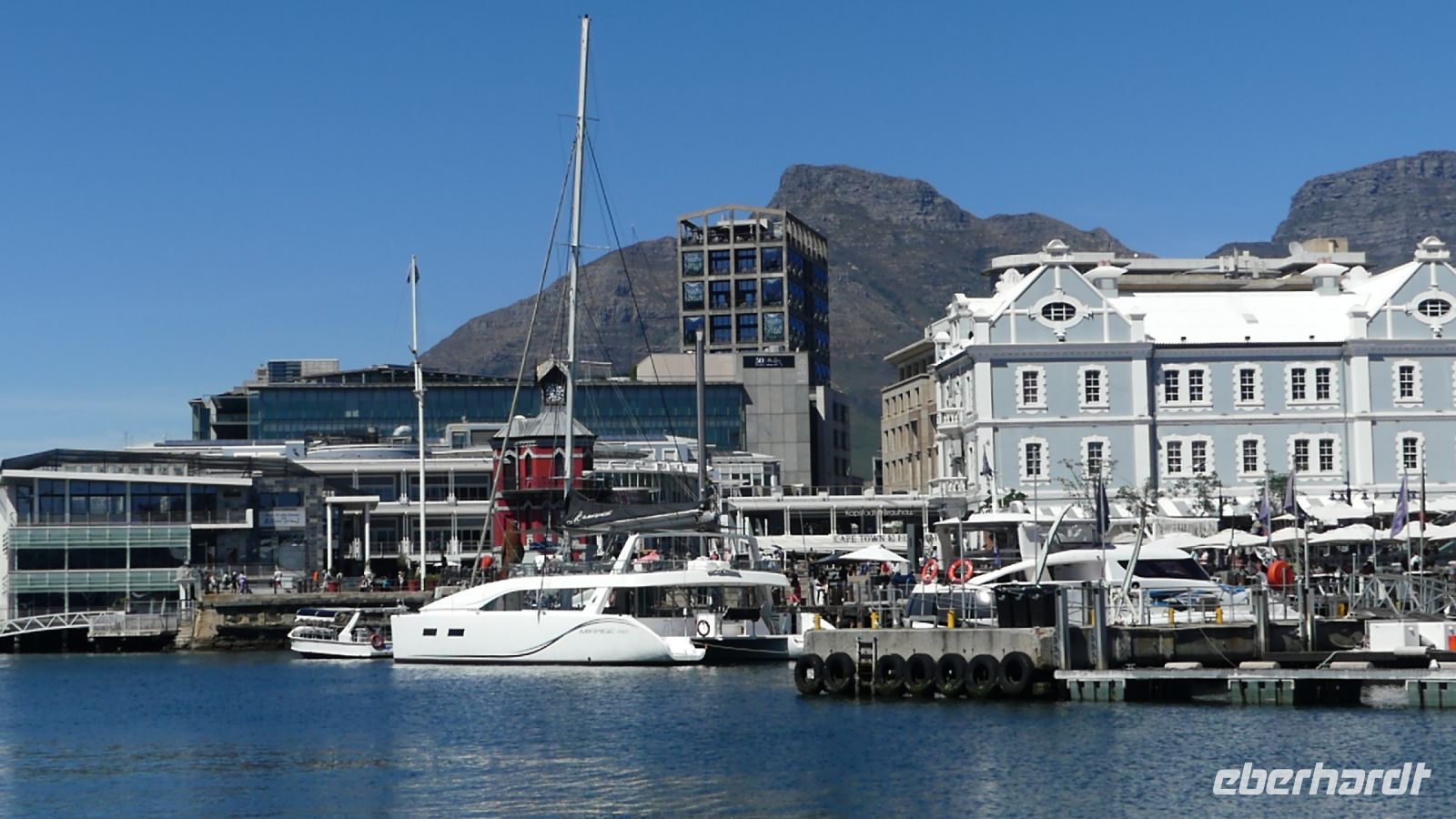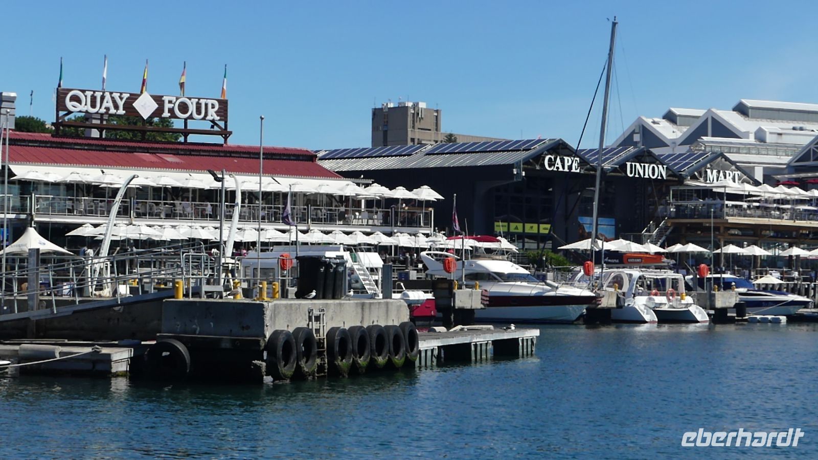 Vorbei an Kornfeldern und weitem Farmland, auf den sich Paradieskraniche tummelten sowie Rinder und Schafe weideten, fuhren wir in westliche Richtung. Bei Albertinia hielte wir an einer Aloenfarm und deckten uns mit natürlichen Beauty-Produkten ein. Aha, deshalb beindet sich ganz in der Nähe die Sleeping Beauty! Genauer gesagt, ist es eine Bergkette, die wie eine schlafende Schönheit aussieht. Annett`s Fantasie reichte leider nicht aus, um diese wirklich zu erkennen. Deutlich sichtbar dagegen waren die Sleeping Beautys später im Bus, die Augenpflege betrieben. In der alten Bäckerei Ou Meul (Alte Mühle) in Riversonderend gab es hausgemachte Leckereien und guten Kaffee, genau das Richtige für unsere Pause. Am frühen Nachmittag empfing uns Kapstadt gebührend mit Kaiserwetter. Kapstadt, eine der schönsten Städte der Welt! Davon konnten wir uns sogleich überzeugen. Mit vorab gebuchten Fast Track Tickets gelangten wir schnell auf den majestätischen Tafelberg. Schon die Auffahrt mit der Gondel-Seilbahn (Bauherren natürlich die Schweizer) war ein Erlebnis. Keiner musste drängeln, denn diese dreht sich während der Fahrt um 360 Grad. WOW, welche Ausblicke bei klarer Sicht und Sonnenschein. Liebe Reisegäste, das habt Ihr Euch verdient! Auf einem Rundweg boten sich uns jeder Menge atemberaubende Ausblicke. Kein Wunder, dass nun ganz individuelle Fotoshootings folgten. Begeistert vom Empfang in der Mutterstadt fuhren wir zu unserem komfortablen Hotel unterhalb des Tafelbergs. Am Abend chauffierte uns Humphrey zum Fischrestaurant Sea Breeze, wo wir herzlich empfangen wurden. Unsere Tafel im Private Room war festlich eingedeckt und der Service war perfekt. Ein leckerer und schöner Abschluss unseres ersten Tages in Kapstadt. Glücklich und satt fielen wir später in unsere Betten.