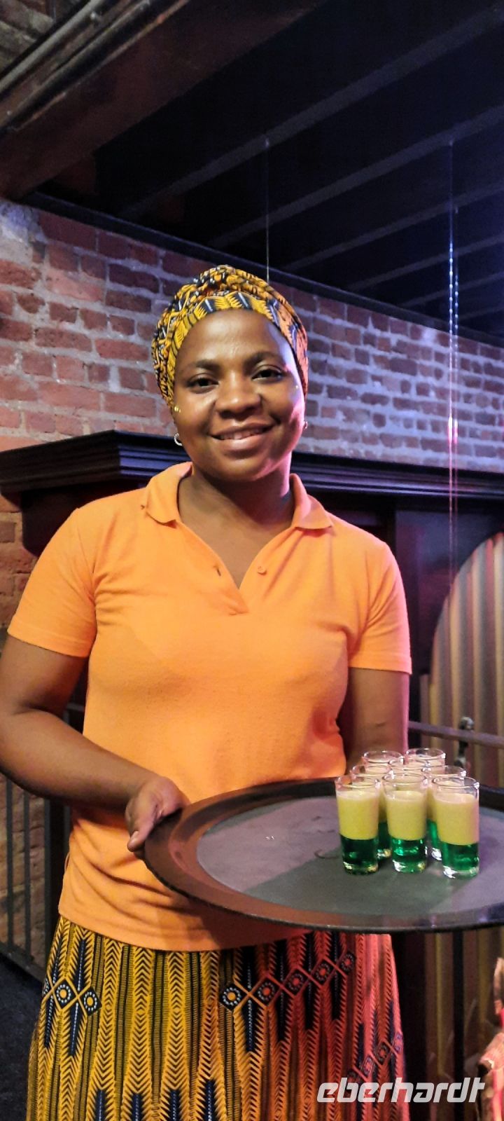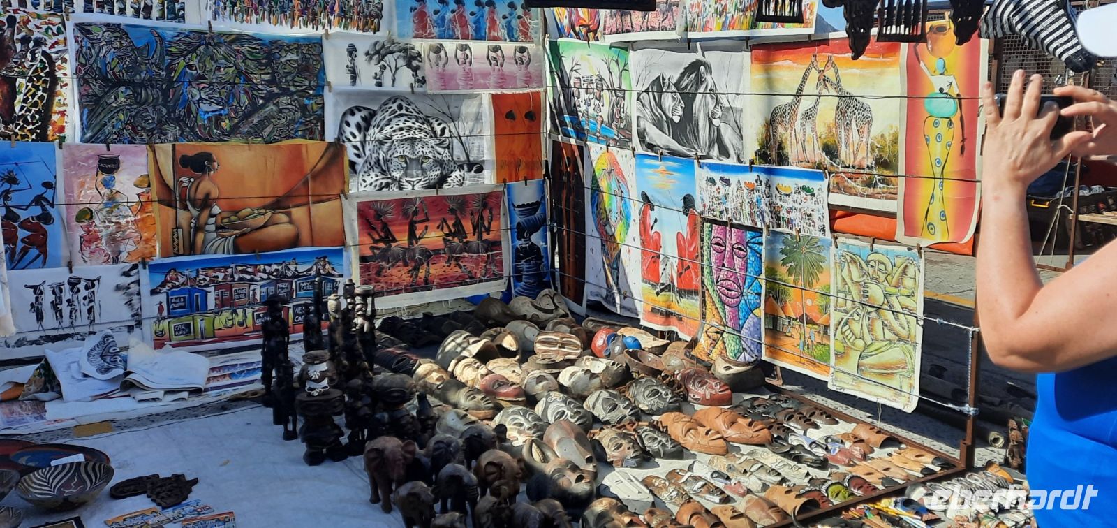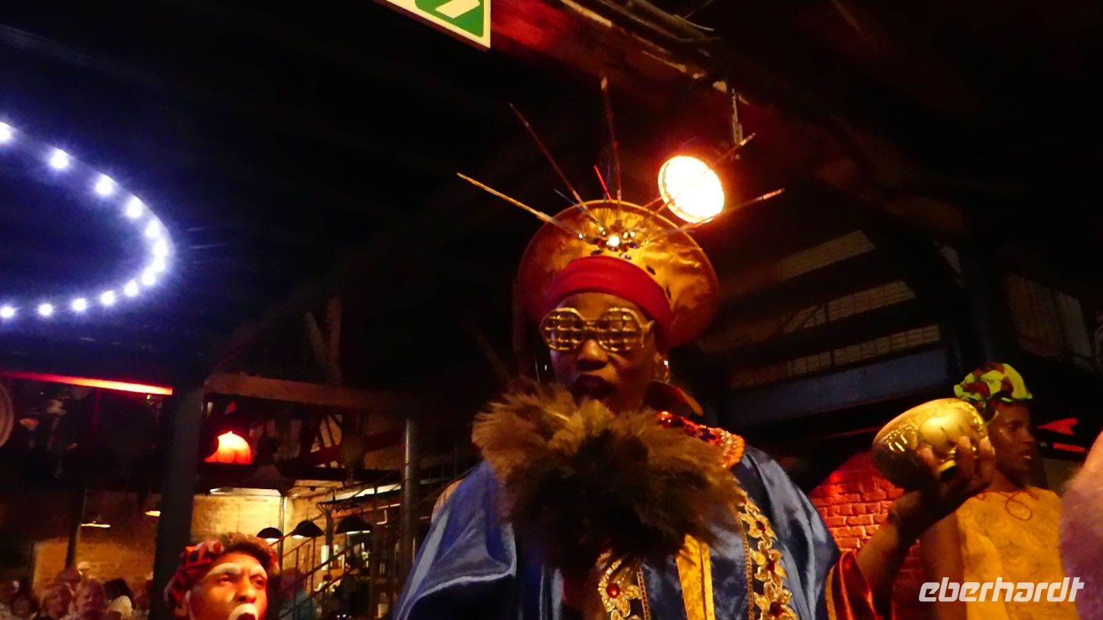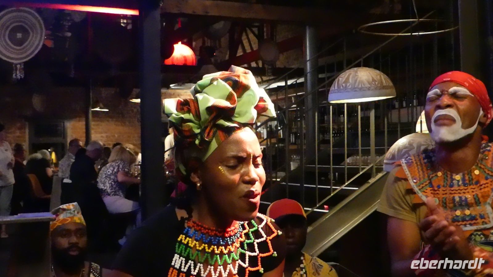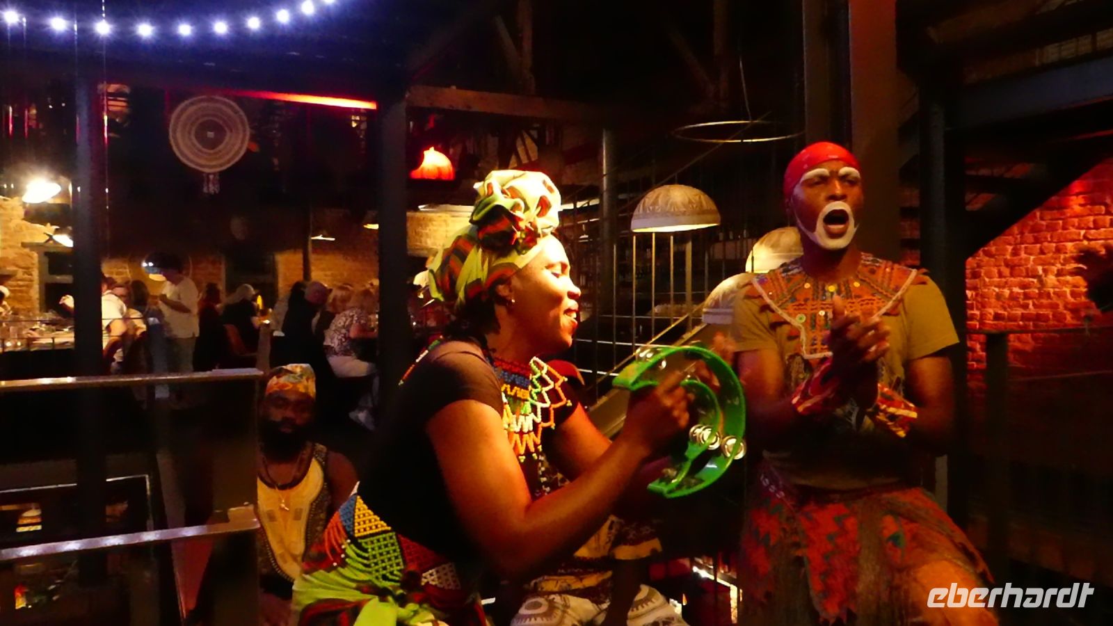 Am Abend fuhren wir auf Umwegen zum bekannten Gold Restaurant. Aufgrund der Karneval Parade, die wir leider nicht mit erleben konnten, waren viele Straßen gesperrt,. Glänzend Gold und afrikanisch bunt wurden wir zum Abendessen empfangen. Das beliebte GOLD Restaurant ist Entertainment und Erlebnis-Gastro. Unsere liebenswürdige Kellnerin bewirtete uns mit einem zauberhaften Lächeln. Ca. 14 verschiedene Gerichte, eine Auswahl von Spezialitäten aus ganz Afrika auf bunten Keramikgeschirr stapelte sich auf unserem Tisch - eine kulinarische Reise. Passend zum Ambiente wurden wir künstlerisch bemalt und musikalisch unterhalten. Melancholische Gesänge um Liebe und Geister, rhythmischer Trommelwirbel und traditionelle Tanzeinlagen in bunten Gewändern - wir hatten Spaß und klatschten begeistert und taktvoll mit, Applaus für die vielen Ständchen an unserem Tisch. Ein besonderer und gelungener Abschlussabend in Kapstadt..