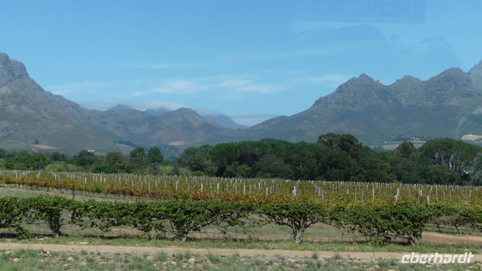 Unser heutiger Ausflug führte uns in die nahen Weinanbaugebiete rund um Paarl, Franschhoek und Stellenbosch. Eine zauberhafte Landschaft im Sonnenschein präsentierte sich. In dieser facettenreichen Weinregion liegen malerische kleine Orte bis hin zu hohen, schroffen Bergformationen. Hier liegt auch der Ursprung der kapholländischen Architektur, die bis heute noch deutlich zu erkennen ist. Die Anfänge der Weinbaukultur am Kap reichen bis ins 17. Jahrhundert zurück. Holländische und französische Siedler brachten das Know-How aus der Heimat mit und fanden in den sonnigen Tälern beste Bedingungen für den Weinanbau: Viel Sonne, milde Winter - ein Paradies der Trauben! Südafrikanische Weine sind eine Garantie für auszeichnete Qualität und Geschmack und sind weltweit bekannt. Zunächst erreichten wir Groot Drakenstein. Hier befindet sich das Gefängnis, wo Nelson Mandela bis zu seiner Freilassung inhaftiert war. Die Bronzestatue erinnert daran. Mandela ist auch nach seinem Tod in Südafrika allgegenwärtig und wird von Farbigen und Weissen gleichermaßen verehrt. Das kleine Städtchen Franschhoek ("französischen Ecke") war unsere nächste Station. Ein Hauch savoir vivre verspürten wir beim Bummel vom Hugenotten Denkmal über die Mainroad. Viele bunte Geschäfte und der Farmes Market luden zum Stöbern ein. Danach fuhren wir zum Weingut Blaauwklippen. Das Weingut ist von den malerischen Helderberg- und Stellenboschberge umgeben und zum größten Teil in noch historischen kapholländischen Gebäuden untergebracht. Blaauwklippen zählt zu den ältesten Weingütern der Region, besonders seine Rotweine wie Cabernet Sauvignon und Zinfandel Red sind bekannt. Bei einer kurzen Führung mit Nozi erhielten wir einen Einblick in die Geschichte des Weingutes und die Produktion. Ringsum steckte man in Vorbereitungen für eine Ho chzeit. Weingüter sind eine beliebte Location für diese Events. Bei einem leckerem Picknick-Lunch mit Farm-Spezialitäten verkosteten wir verschiedene Weine, wobei mir der leichte Weißwein Chenin Blanc besonders mundete. Before & After, ein süffiger Aperitif mit dem Geschmack von ein bisschen Weihnacht war der süße Abschluss. Anschließend fuhren wir nach Stellenbosch. Stellenbosch ist nach Kapstadt die zweitälteste von Europäern gegründete Siedlung an der südafrikanischen Küste. In der "alten" Stadt begegnet man vielen jungen Menschen, denn Stellenbosch ist Universitätsstadt. Viele, originalgetreu restaurierte Gebäude im kap-holländischen Stil, die aus der Zeit der Ostindien-Kompanie stammen, sind bis heute erhalten geblieben. Hier verabschiedeten wir einen lieben Reisegast, der die Reise noch ein paar Tage verlängerte, um den Geburtstag vom Töchterlein gemeinsam zu feiern, die an der hiesigen Uni ein Auslandssemester verbringt.