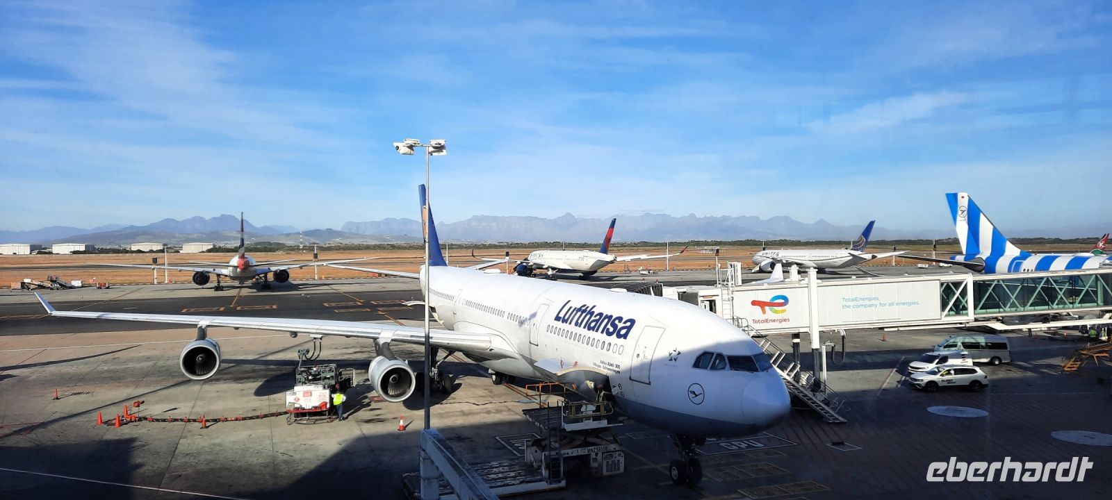 Endlich ging es los! Am Flughafen Frankfurt traf sich die kleine Reisegruppe, um Südafrika zu erkunden. Von Streiks und Ausfällen verschont, hoben wir mit 1 h Verspätung in den nächtlichen Himmel ab.