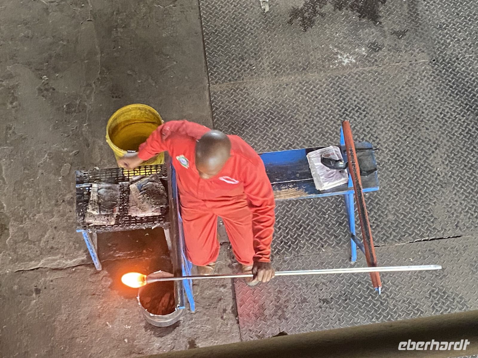 Eine lange Fahrtstrecke und eine Grenzkontrolle liegen vor uns. Es geht in das Königreich Swasiland, einem kleinen Binnenstaat inmitten des südlichen Afrikas, mit reichlich einer Million Einwohnern. Für die Grenzkontrollen waren die Reisepässe erforderlich. Nach dem Frühstück starteten wir pünktlich mit unserem Bus über die holprigen Straßen. Während der ersten Rast an einer größeren Tankstelle wurden wir von Passanten auf ein defektes Rad am Anhänger mit den Koffern hingewiesen. Kontrollen ergaben eine total heiße Felge. Verzweifelte Blicke in der Gruppe. Die kleine Werkstatt an der Tankstelle entfernte das Rad und stellte einen Totalschaden an der Radnabe mit Bremse fest. Ersatzteile, irgendwann. Das Glück war uns hold. Der Fahrer konnte über seine Agentur einen neuen Trailer besorgen, der über einen vertretbaren Umweg in einer Lodge am Eingang des Kruger Parkes abzuholen war. Also, Koffer in den Bus und los. Wieder mit Verspätung, die auch nicht durch rasante Fahrt auf den schlechten Straßen aufgeholt werden konnte, ging es weiter über die Grenze bei Ngwenya Border Post ins Swasiland. Dort war der Besuch einer Altglas-Recycling-Manufaktur in Ngwenya, die Gläser und Glasfiguren herstellt, angesagt. Sie gilt als Swaziland´s HOTTEST tourist attraction, was wir beim Rundgang über den Schmelzöfen. Die Fahrt ging weiter über die Hauptstadt Mbabane zum Tagesziel, dem Foresters Arms Hotel. Dieses liegt in einer spektakulären malerischen Berglandschaft mit weitläufigem Gelände bei Mbabane. Dort wurden wir von Ruth, einer sehr britischen älteren Dame, persönlich empfangen. Rund 300 Kilometer waren zurückgelegt. Im liebevoll eingerichteten Restaurant speisten wir in Gesellschaft mit anderen Reisegruppen.