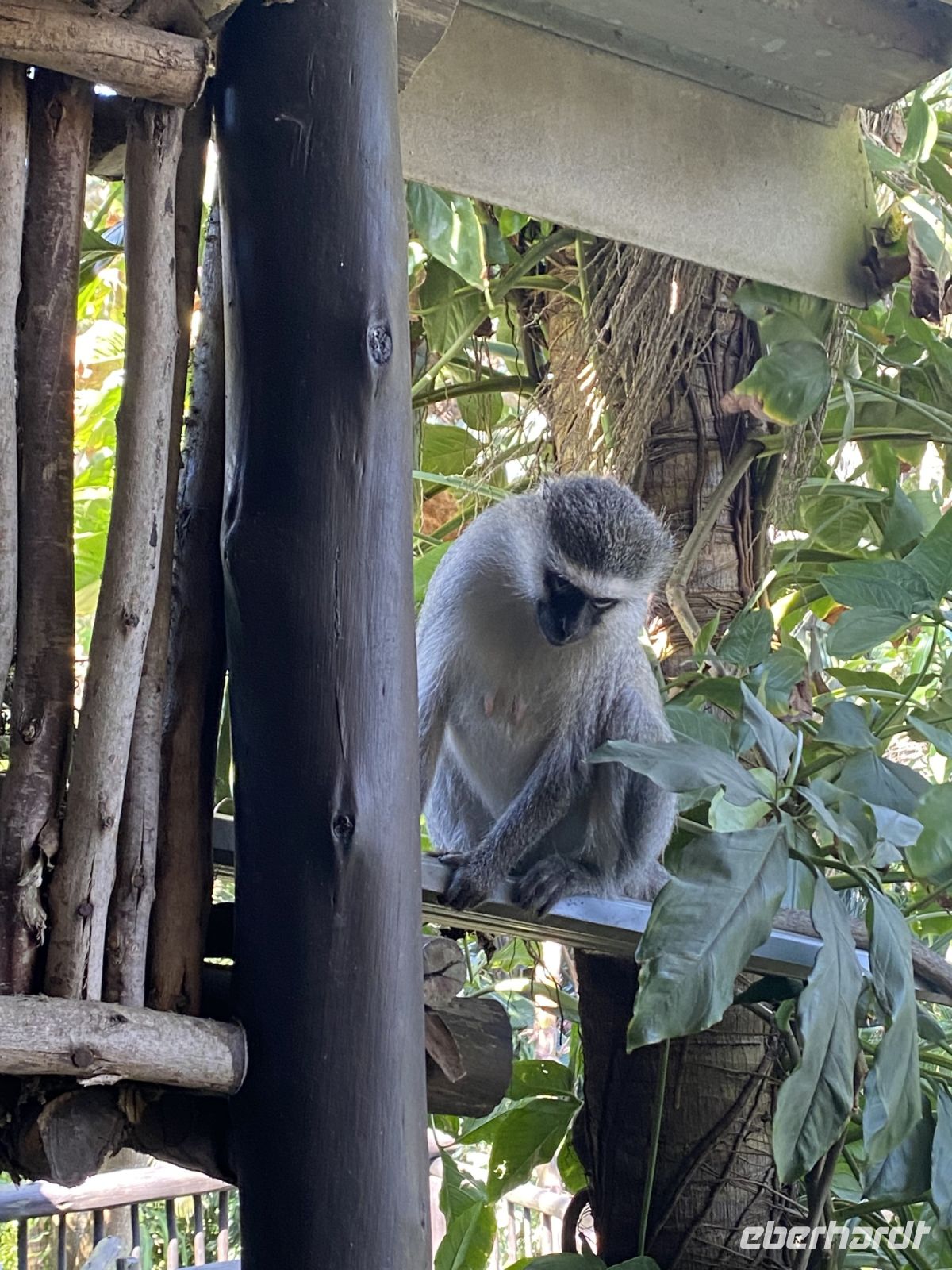 Ein entspannter Tag. 10:00 Uhr starten wir eine zweistündige Bootsfahrt mit Hippo & Croc Tour. Hier sahen wir im strahlenden Sonnenschein neben der tollen Landschaft und der Pflanzenwelt auch Flusspferde, Krokodile und verschiedene, meist völlig unbekannte, Vogelarten. Anschließend fuhren wir zum Indischen Ozean. Ungewohnte sandhaltige Winde und hohe Wellen prägten dort den Strand. Spaziergänge im warmen ufernahen Meerwasser im Strandbereich, oder einfach in der Sonne liegen waren eine gefundene Abwechselung gegenüber langen Sitzen im Bus und Fahren auf schlechten Straßen.