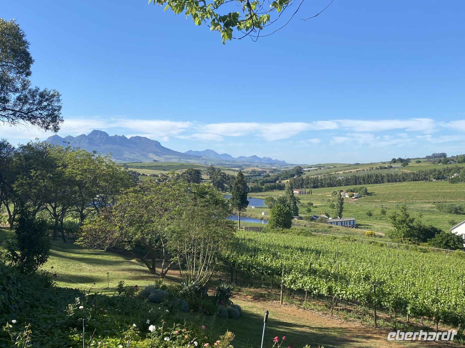 Wieder war frühes Aufstehen angesagt, um den Flieger von Durban nach Kapstadt nicht zu verpassen. Nach reichlich dreistündiger Fahrt erreichten wir den Flughafen Durban. Von Frans, der uns während der Reise sehr vieles über die Natur, Geschichte, Völker und Infrastruktur Südafrikas erzählt hatte, mussten wir uns herzlich verabschieden. Er flog zurück. Auf ihn wartete bereits eine neue Reisegruppe in Pretoria. Wir mussten nach Kapstadt. Nach einem zweieinhalbstündigem entspannten Flug sahen wir die Landschaft und die Stadt im klaren Sonnenschein beim Landeanflug am frühen Nachmittag. Auf dem Flughafen Kapstadt wartete bereits Martina, unsere neuer Guide, auf uns. Nach kurzer Begrüßung fuhren wir direkt zum Devon Valley Hotel nach Stellenbosch.