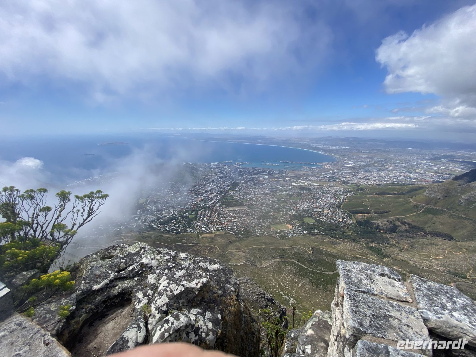 Lunch wartete auf uns in der Bo Kaap Kombuis. Von der Terrasse des Restaurants verfolgten wir die Wolken. Als der Himmel immer blauer wurde, starteten wir zur Fahrt auf den Tafelberg mit der Seilbahn.