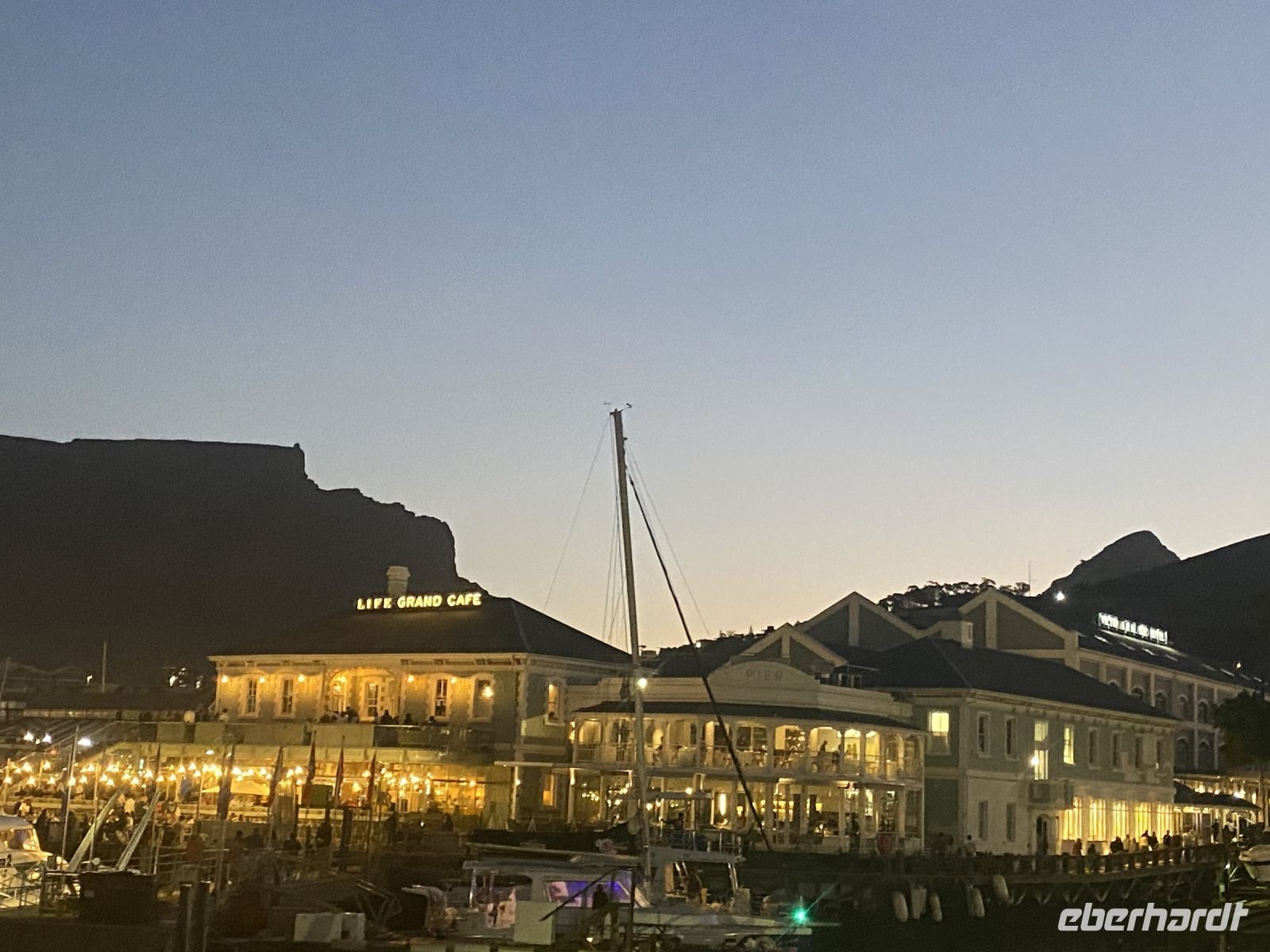 In der abendlichen Waterfront fanden wir nach kurzer Wartezeit ein schönes Restaurant, in dem wir den interessanten Tag bei einem guten Wein ausklingen ließen.