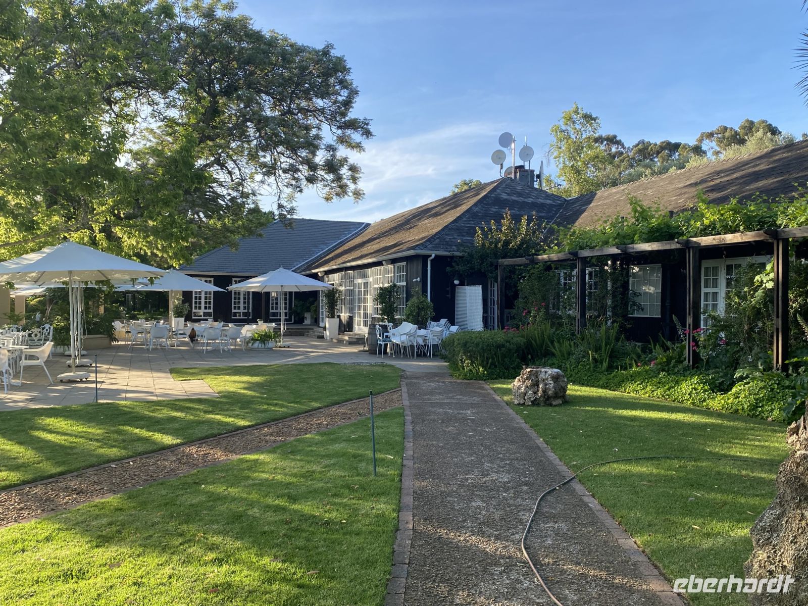 Heute stand ein Ausflug in die Weinanbaugebiete rund um Fanschoek und Stellenbosch auf dem Programm. Auf der Fahrt schon konnten wir Weinanbau links und rechts der Straße erblicken. Der Ortsname Franschhoek stammt aus dem Französischen und bedeutet „Französisches Eck“. Die Stadt wurde 1688 von Hugenotten gegründet, die in Frankreich wegen ihrer protestantisch-calvinistischen Überzeugungen verfolgt wurden. Am Kap fanden die fleißigen und kenntnisreichen französischen Siedler eine neue Heimat. Sie widmeten sich der Landwirtschaft und förderten vor allem den Weinanbau. Franschhoek hat mehr französisches Flair denn je. Besonders deutlich ist dies auf der Main Road, wo sich schicke Straßencafés, französische Restaurants, Boutiquen und Galerien aneinanderreihen. Nach Freizeit im Ort fuhren wir weiter zum Weingut Blaauwklippen. Dort erlebten wir eine Führung durch den Weinkeller und sahen die verschiedenen Fässer für die Gehrung und Lagerung der Weine. Beim Mittagessen im Weingut Blaauwklippen wurden verschiedene Weine bei einer Weinprobe serviert. Dazu saßen wir bei bestem Wetter im großzügig angelegten Garten des Weingutes.