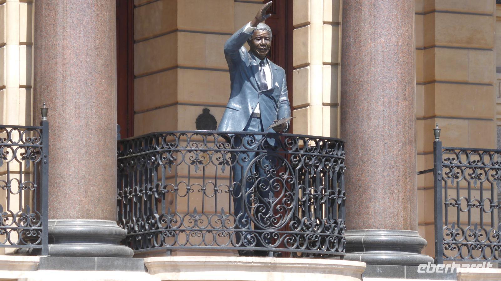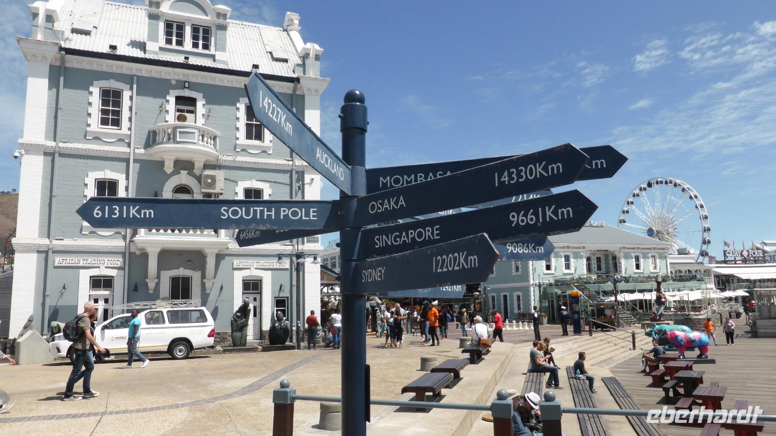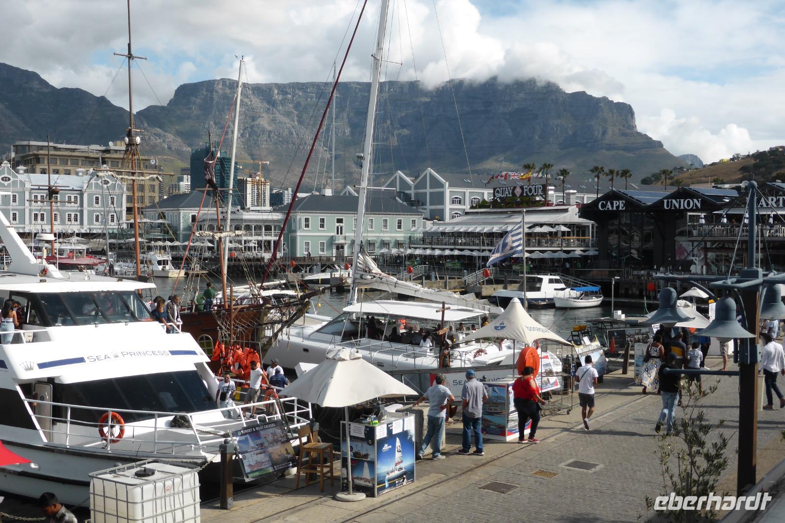 Erster Halt: das Castle of Good Hope, eine Festungsanlage der Holländer aus dem 17. Jahrhundert, teilweise aus Backsteinen errichtet, welche aus Holland importiert wurden. In ihrer Geschichte wurde die Festung nicht ein einziges Mal angegriffen. Wir dürfen ohne Eintrittsgeld einen Blick in den großen Innenhof werfen. Ein paar Schritte weiter kommen wir zum alten Rathaus, wo man mit einer Bronzenachbildung Nelson Mandela ein Denkmal gesetzt hat. Damit wird an seine berühmte Rede von 1990 an dieser Stelle erinnert. Anschließend kommen wir zum Company´s Garten im Herzen der Innenstadt. Ursprünglich für die Versorgung von Schiffen auf ihrer Route zwischen Europa und Asien angelegt, ist es heute eine wunderschöne Parkanlage, die zum Verweilen einlädt. Eine Buspanne nutzen wir für einen Spaziergang zum Greenmarket Square, wo wir im „Le Petit" eine Mittagspause einlegen. Inzwischen ist auch der Bus repariert, so können wir unsere Besichtigung Kapstadts mit dem BoKaap-Viertel fortsetzen. Es handelt sich um das älteste Stadtviertel. „BoKaap" bedeutet „oberhalb von Kapstadt", also Oberstadt. Als Zentrum der muslimischen Gemeinde Kapstadts wird es auch Malaiisches Viertel genannt, in welchem sich mehrere Moscheen befinden. Der Ursprung ist aber weniger auf Malaysia, sondern vielmehr auf Indonesien (Java) zurückzuführen, weil einst die Holländer von Java Sklaven nach Südafrika brachten und sich deren Nachfahren hier niederließen. Typisch für das BoKaap-Viertel sind die kleinen und meist knallbunt gestrichenen Häuschen aus dem 19. Jahrhundert entlang der steilen Pflastersteinstraßen. Schließlich fahren wir zur Talstation des Tafelberges. Dort müssen wir erkennen, dass wir mindestens 2,5 Stunden Wartezeit (Berg und Talfahrt) benötigen würden. Dazu kommt noch das unbeständige Wetter, bei dem man nicht weiß, ob Wolken am Berg hängen, wenn man es nach oben geschafft hat. Die Talstation der Table Mountain Cableway (Seilbahn) wurde 1929 nach Plänen eines norwegischen Ingenieurs errichtet und ist 90 Jahre später sicher nicht mehr gewappnet, um den Besucherandrang der Millionenmetropole gerecht zu werden. Wir entschließen uns für einen alternativen Aussichtspunkt, den Signal Hill. Hier scheint die Sonne und Kapstadt ist gut zu überblicken. Zu sehen sind das Cape Town Stadium, der Hafen, die Victoria&Alfred Waterfront und die einstige Gefängnisinsel Robben Island. An der V&A Waterfront befindet sich auch unser Hotel. Bevor wir dort Einchecken, verschaffen wir uns in der Waterfront noch einen ersten Überblick. Kapstadts Hafenviertel, einst eine heruntergekommene Gegend, gilt heute als ein äußerst gelungenes Stadtentwicklungsprojekt zur Belebung des Hafens und hat Vorbildcharakter weit über Afrika hinaus. Bei all den Geschäften, Cafés, Restaurants und Attraktionen kann man leicht vergessen, dass hier immer noch regulärer Hafenbetrieb herrscht. Was liegt also näher, als gleich heute das Abendessen hier einzunehmen. Das Restaurant heißt Quay 4, als Kai Nr. 4. Hier gibt es ein leckeres 3 Gang-Menü. Wie allerdings ein Bierglas in der Hand einfach mit einem lauten Knall den Boden rauskatapultiert, habe ich bis heute nicht verstanden.