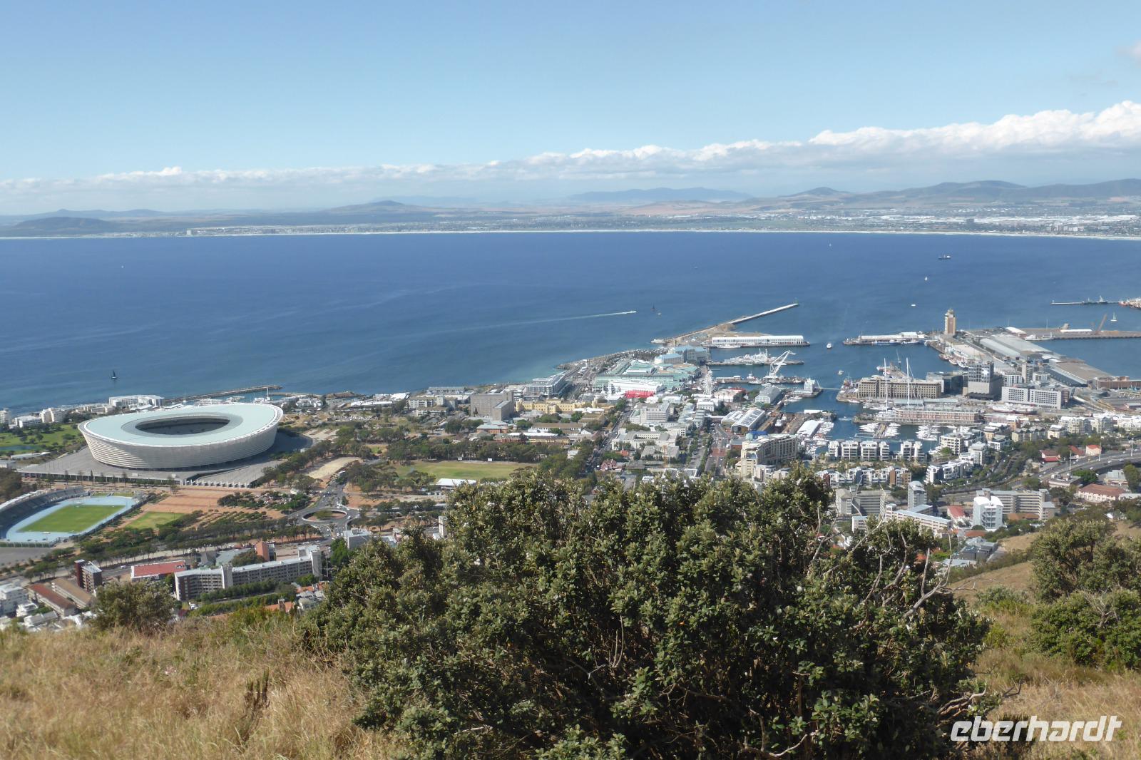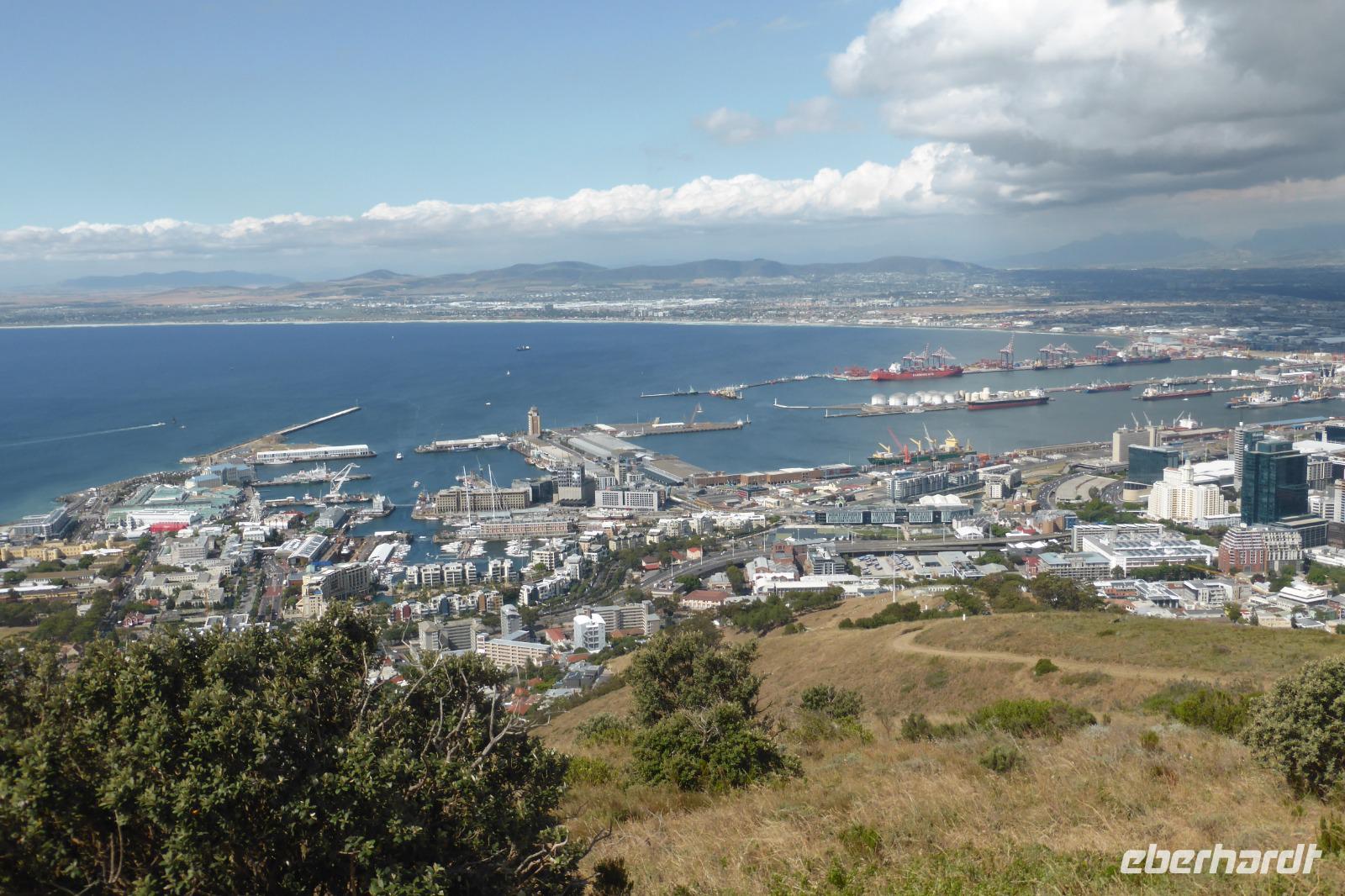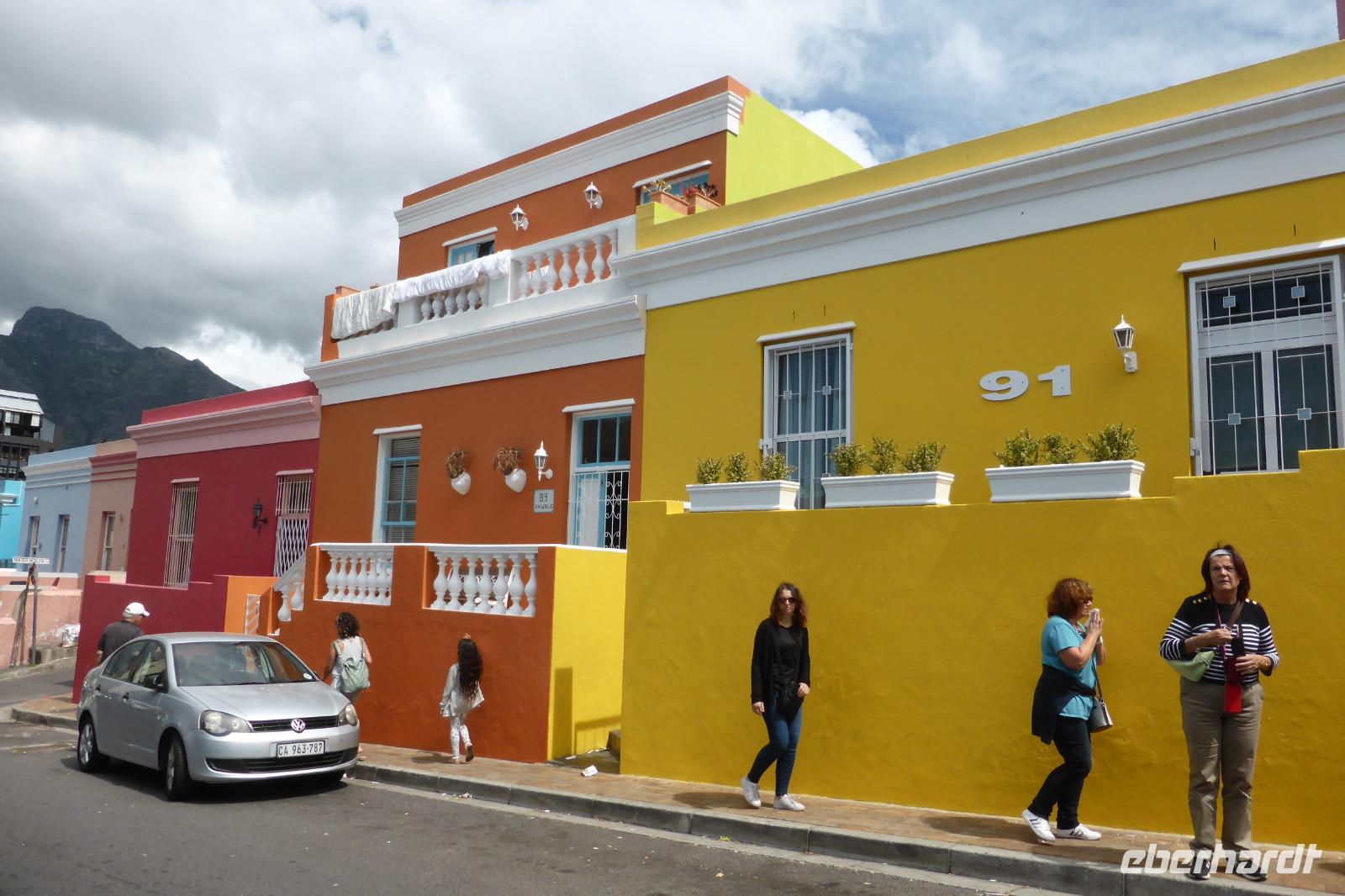 Erster Halt: das Castle of Good Hope, eine Festungsanlage der Holländer aus dem 17. Jahrhundert, teilweise aus Backsteinen errichtet, welche aus Holland importiert wurden. In ihrer Geschichte wurde die Festung nicht ein einziges Mal angegriffen. Wir dürfen ohne Eintrittsgeld einen Blick in den großen Innenhof werfen. Ein paar Schritte weiter kommen wir zum alten Rathaus, wo man mit einer Bronzenachbildung Nelson Mandela ein Denkmal gesetzt hat. Damit wird an seine berühmte Rede von 1990 an dieser Stelle erinnert. Anschließend kommen wir zum Company´s Garten im Herzen der Innenstadt. Ursprünglich für die Versorgung von Schiffen auf ihrer Route zwischen Europa und Asien angelegt, ist es heute eine wunderschöne Parkanlage, die zum Verweilen einlädt. Eine Buspanne nutzen wir für einen Spaziergang zum Greenmarket Square, wo wir im „Le Petit" eine Mittagspause einlegen. Inzwischen ist auch der Bus repariert, so können wir unsere Besichtigung Kapstadts mit dem BoKaap-Viertel fortsetzen. Es handelt sich um das älteste Stadtviertel. „BoKaap" bedeutet „oberhalb von Kapstadt", also Oberstadt. Als Zentrum der muslimischen Gemeinde Kapstadts wird es auch Malaiisches Viertel genannt, in welchem sich mehrere Moscheen befinden. Der Ursprung ist aber weniger auf Malaysia, sondern vielmehr auf Indonesien (Java) zurückzuführen, weil einst die Holländer von Java Sklaven nach Südafrika brachten und sich deren Nachfahren hier niederließen. Typisch für das BoKaap-Viertel sind die kleinen und meist knallbunt gestrichenen Häuschen aus dem 19. Jahrhundert entlang der steilen Pflastersteinstraßen. Schließlich fahren wir zur Talstation des Tafelberges. Dort müssen wir erkennen, dass wir mindestens 2,5 Stunden Wartezeit (Berg und Talfahrt) benötigen würden. Dazu kommt noch das unbeständige Wetter, bei dem man nicht weiß, ob Wolken am Berg hängen, wenn man es nach oben geschafft hat. Die Talstation der Table Mountain Cableway (Seilbahn) wurde 1929 nach Plänen eines norwegischen Ingenieurs errichtet und ist 90 Jahre später sicher nicht mehr gewappnet, um den Besucherandrang der Millionenmetropole gerecht zu werden. Wir entschließen uns für einen alternativen Aussichtspunkt, den Signal Hill. Hier scheint die Sonne und Kapstadt ist gut zu überblicken. Zu sehen sind das Cape Town Stadium, der Hafen, die Victoria&Alfred Waterfront und die einstige Gefängnisinsel Robben Island. An der V&A Waterfront befindet sich auch unser Hotel. Bevor wir dort Einchecken, verschaffen wir uns in der Waterfront noch einen ersten Überblick. Kapstadts Hafenviertel, einst eine heruntergekommene Gegend, gilt heute als ein äußerst gelungenes Stadtentwicklungsprojekt zur Belebung des Hafens und hat Vorbildcharakter weit über Afrika hinaus. Bei all den Geschäften, Cafés, Restaurants und Attraktionen kann man leicht vergessen, dass hier immer noch regulärer Hafenbetrieb herrscht. Was liegt also näher, als gleich heute das Abendessen hier einzunehmen. Das Restaurant heißt Quay 4, als Kai Nr. 4. Hier gibt es ein leckeres 3 Gang-Menü. Wie allerdings ein Bierglas in der Hand einfach mit einem lauten Knall den Boden rauskatapultiert, habe ich bis heute nicht verstanden.