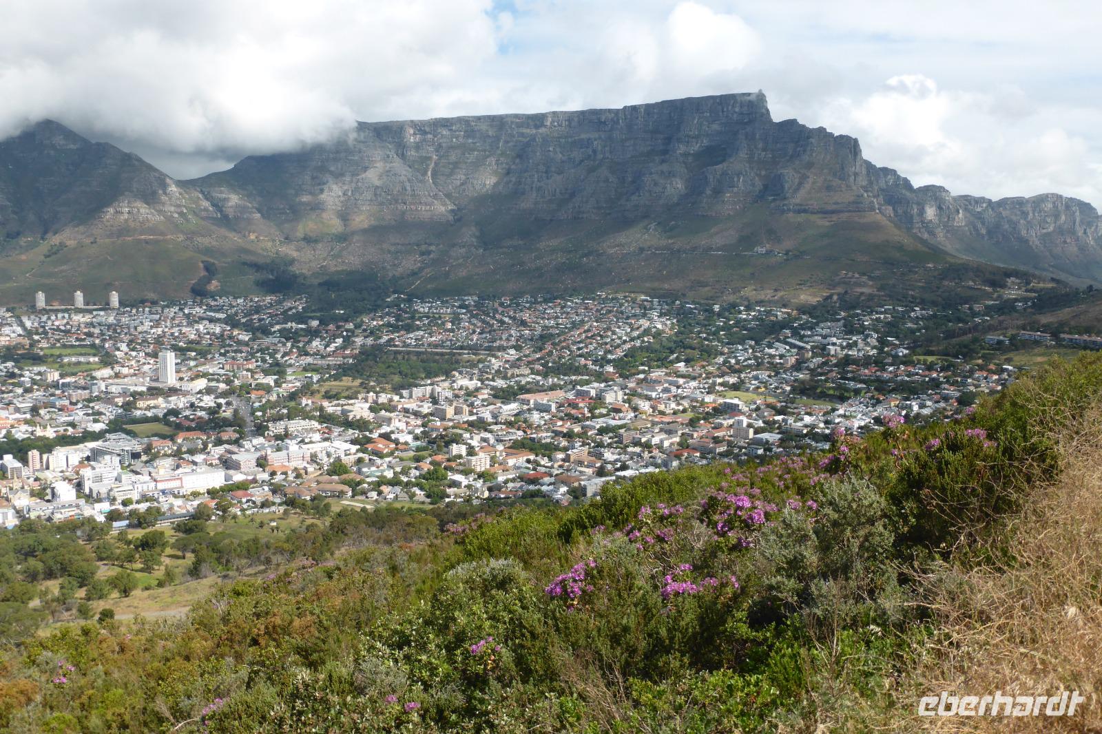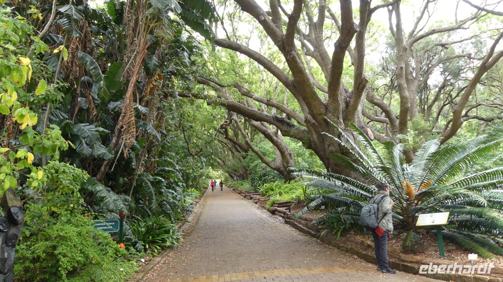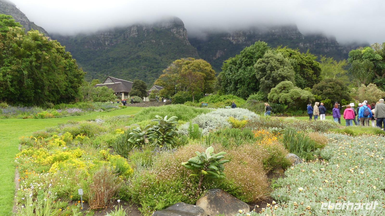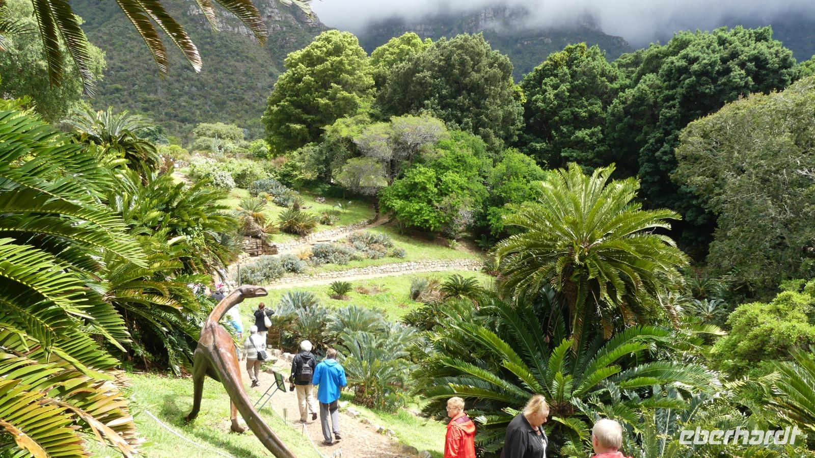 Der botanische Garten wurde 1913 angelegt und hat weit über Kapstadt hinaus einen ausgezeichneten Ruf. In traumhafter Hanglage zu Füßen des Tafelbergs sind tausende Vertreter der Kapflora und der Pflanzenwelt es südlichen Afrika vertreten. Der Garten ist thematisch gegliedert. So besichtigen wir zum Beispiel die Duft- und Gewürzpflanzen, vom Aussterben bedrohte Pflanzen, Arten des Fynbos wie die Nationalblume Protea oder die prähistorische Welt der Zikaden, welche schon zu Zeiten der Saurier existierten. Auf der elf Meter hohen Boomslang-Brücke schwanken wir in Baumgipfelhöhe durch den verwunschenen Wald.