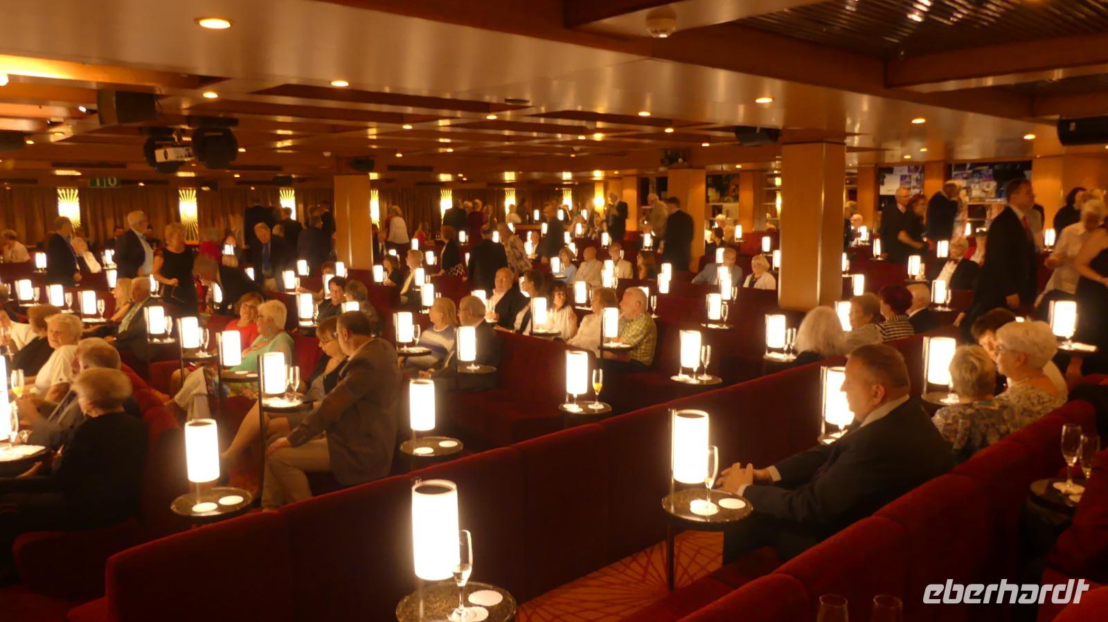 Am Abend heißt es dann gut rausputzen: in der Atlantic Lounge findet der Sektempfang des Kapitäns statt. Kapitän Robert Fronenbroek und Kreuzfahrtdirektorin Manuela Bzdega stellen ihre Mannschaften vor. Zu diesem Anlass fällt das anschließende Abendessen entsprechend festlich und kulinarisch auserwählt aus.