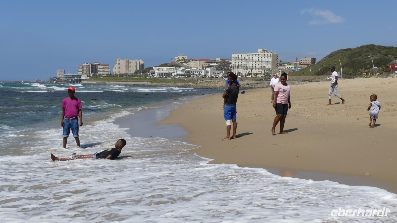 Am Nachmittag kommen einige Gäste mit mir an den Strand der Sunshine Coast. Ein Ausflug der sich wirklich lohnt. Denn zum Sonntag halten sich viele Südafrikaner mit Freunden und Familie am Strand auf. Es ist eine angenehme Atmosphäre. Und zufällig kommen wir bei einem Fotoshooting mit attraktiven Strandschönheiten vorbei :-).