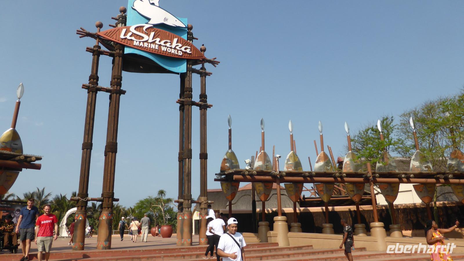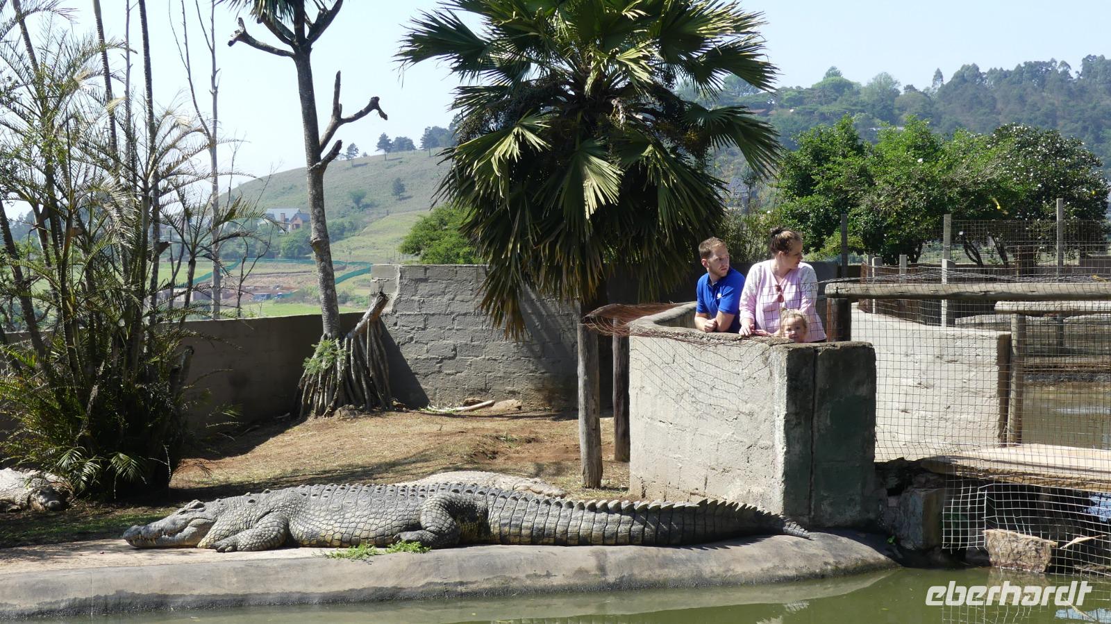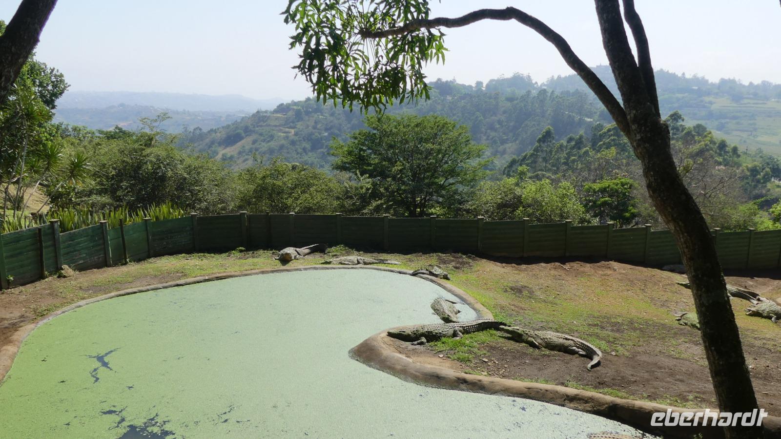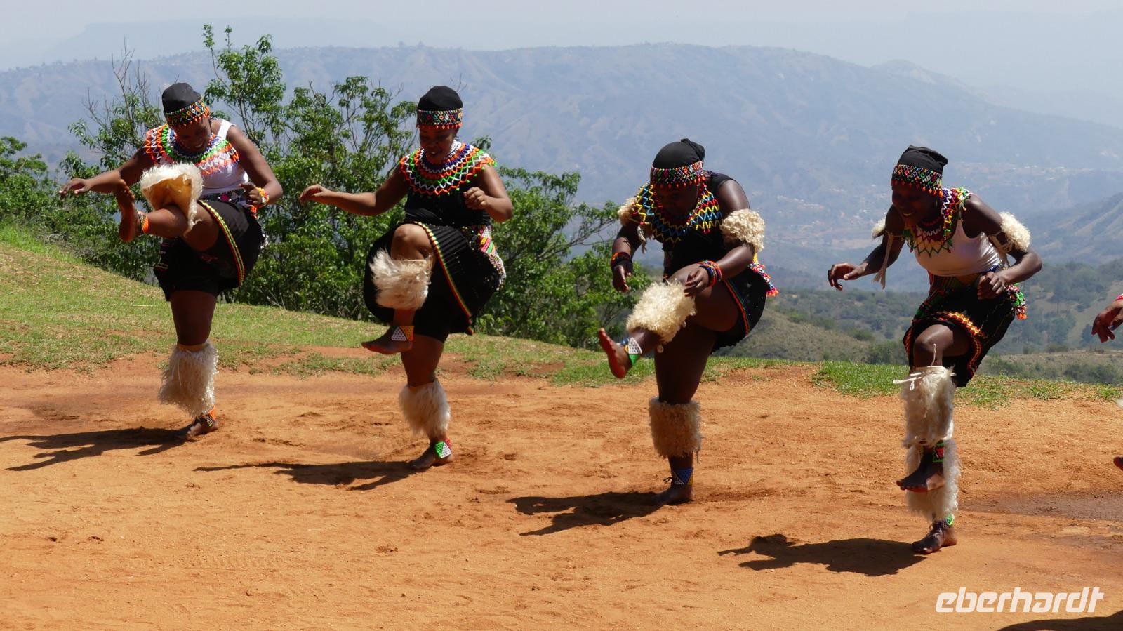 Die 9 Gäste, welche mit mir ins „Tal der 1.000 Hügel" reisen, bekommen zumindest bei der Durchfahrt einen Eindruck von der Millionenstadt. Im Hügelland hinter Durban besuchen wir ein Zulu-Dorf. Dabei handelt es sich um eine ehemalige Filmkulisse die heute touristisch für Aufführungen genutzt wird. Ein Videofilmer der MS Albatros nimmt ebenfalls an diesem Ausflug teil und sorgt mit seiner Fotodrohne für große Aufmerksamkeit besonders bei den Kindern. Am Zulu-Dorf werden wir außerdem durch den Reptilienpark geführt, wo sich insbesondere viele Krokodile in verschiedenen Altersgruppen von ganz klein bis zum 4,6 Meter großen und 99 Jahre alten Krokodil befinden. Auch Schildkröten, Schlangen und Echsen sind zu sehen.