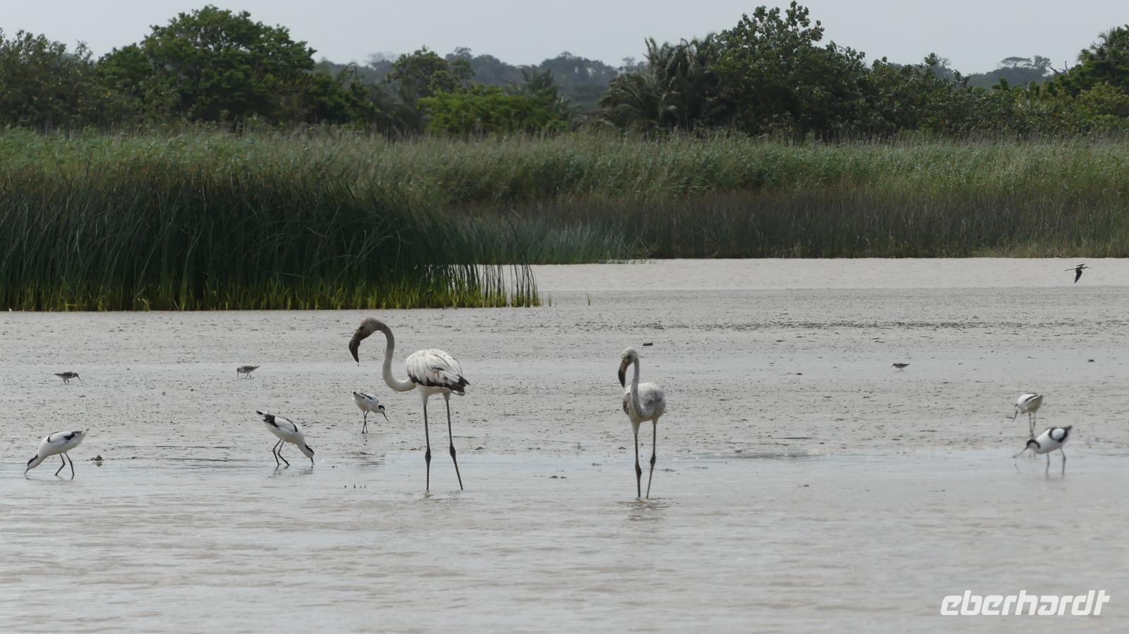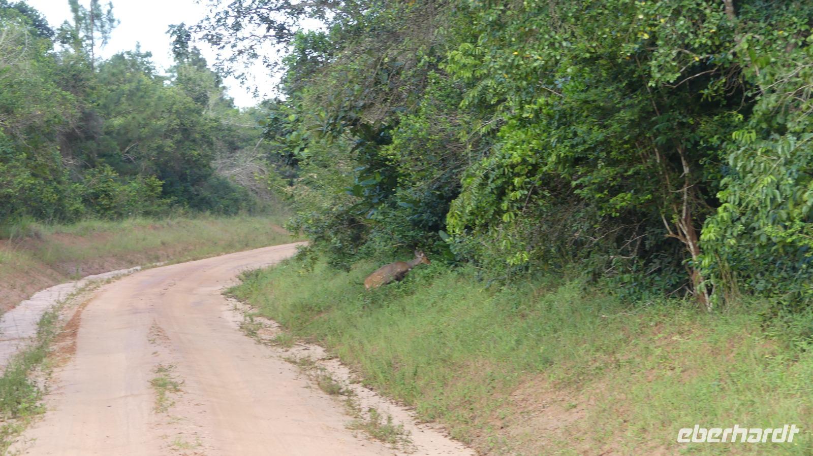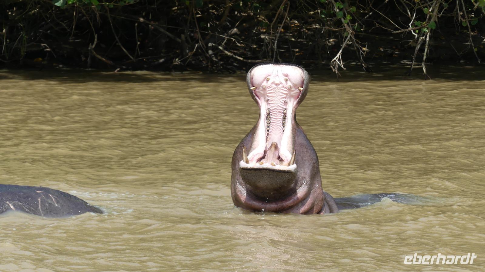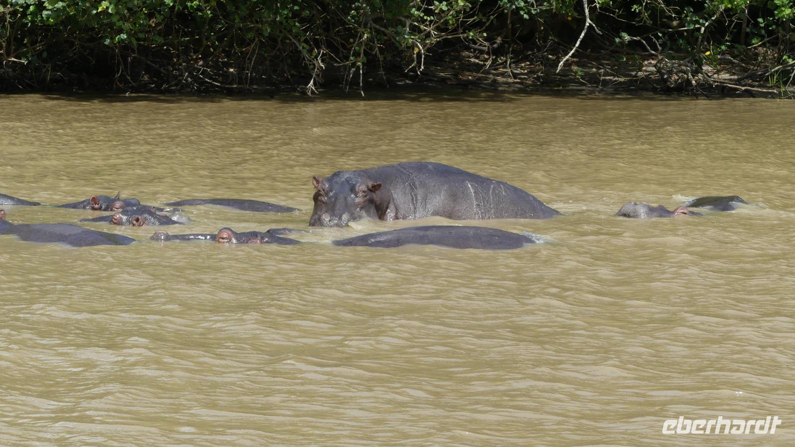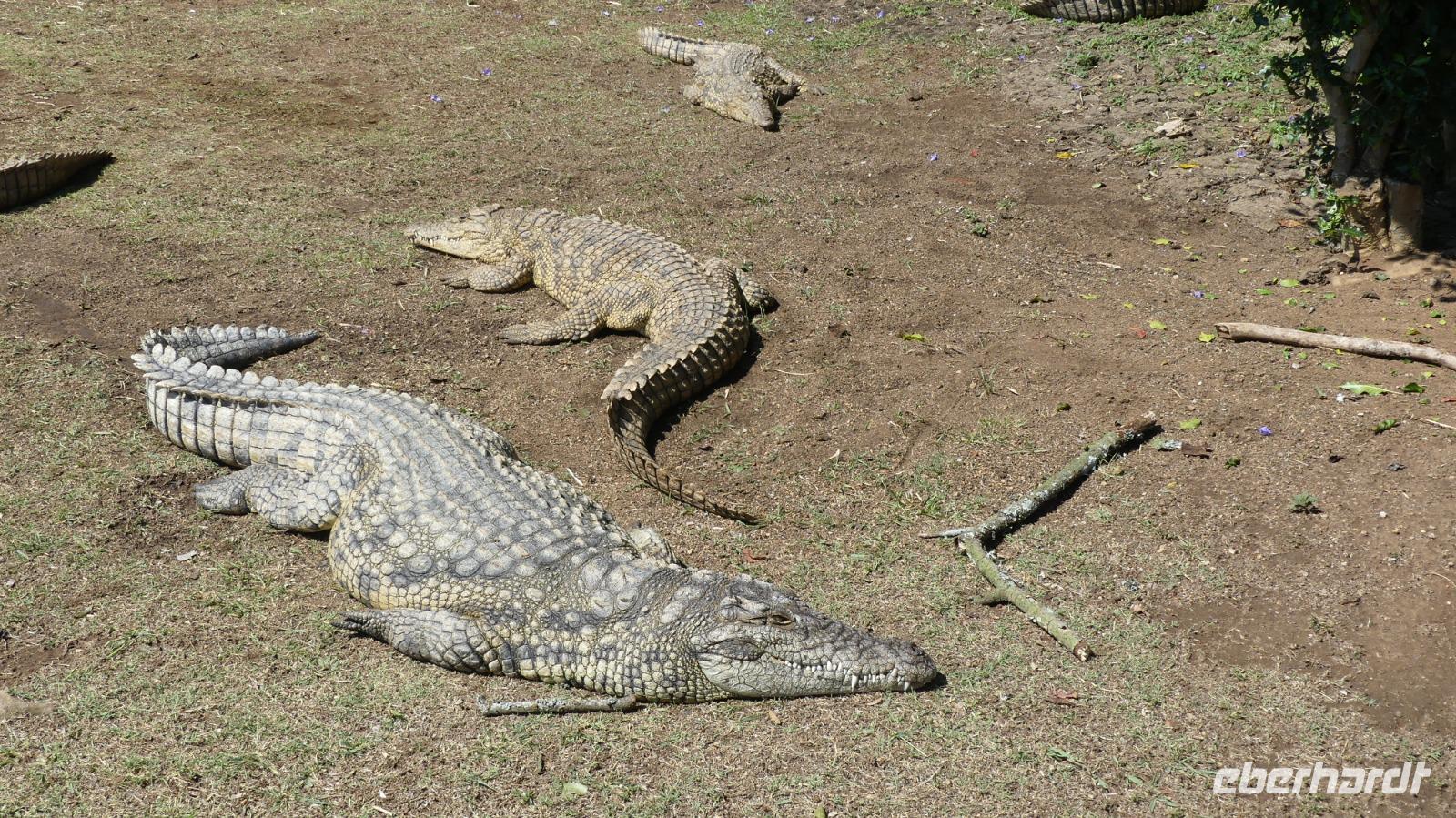 Unsere Ausflugsziele befinden sich sämtlich außerhalb der von Industrie geprägten Stadt. Wir verteilen uns auf folgende Ziele: Hluhluwe Nationalpark (spricht man „schluwe" aus), Thula Thula Pirschfahrt, Shakaland sowie Bootsfahrt auf dem St. Lucia See. Der Ausflug zum St. Lucia See führt uns zunächst an weitreichenden Monokulturen von Eukalyptusbäumen vorbei. Ihre Stämme werden im Bergbau eingesetzt oder zu Zellulose verarbeitet. Nach einem Stopp am Crocodile Centre bei St. Lucia kann man anschließend bei der Bootsfahrt auf dem St. Lucia See Krokodile auch in freier Wildbahn sichten. Aber die Hauptattraktion sind die Flußpferde, von denen es hier am See ca. 900 geben soll. Auch Flamingos und andere Wasservögel sind hier zu sehen.