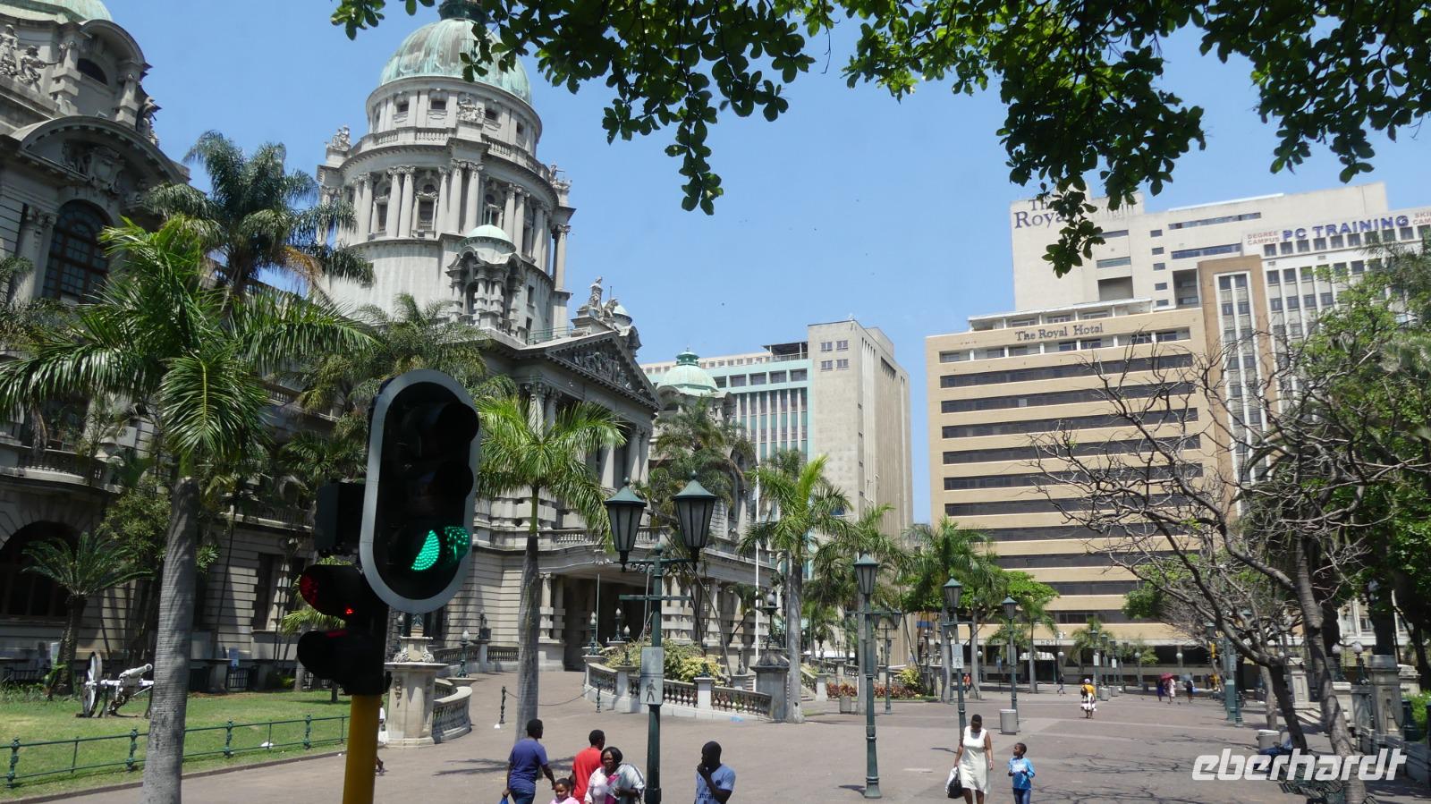 In Deutschland beginnt heute die Winterzeit begleitet von sinkenden Temperaturen. Wir dagegen nähern uns dem Sommer. Hier im subtropischen Durban spüren wir den klimatischen Unterschied zur Kapregion - die Luft ist feuchter und die Temperaturen sollen heute 27 Grad erreichen.