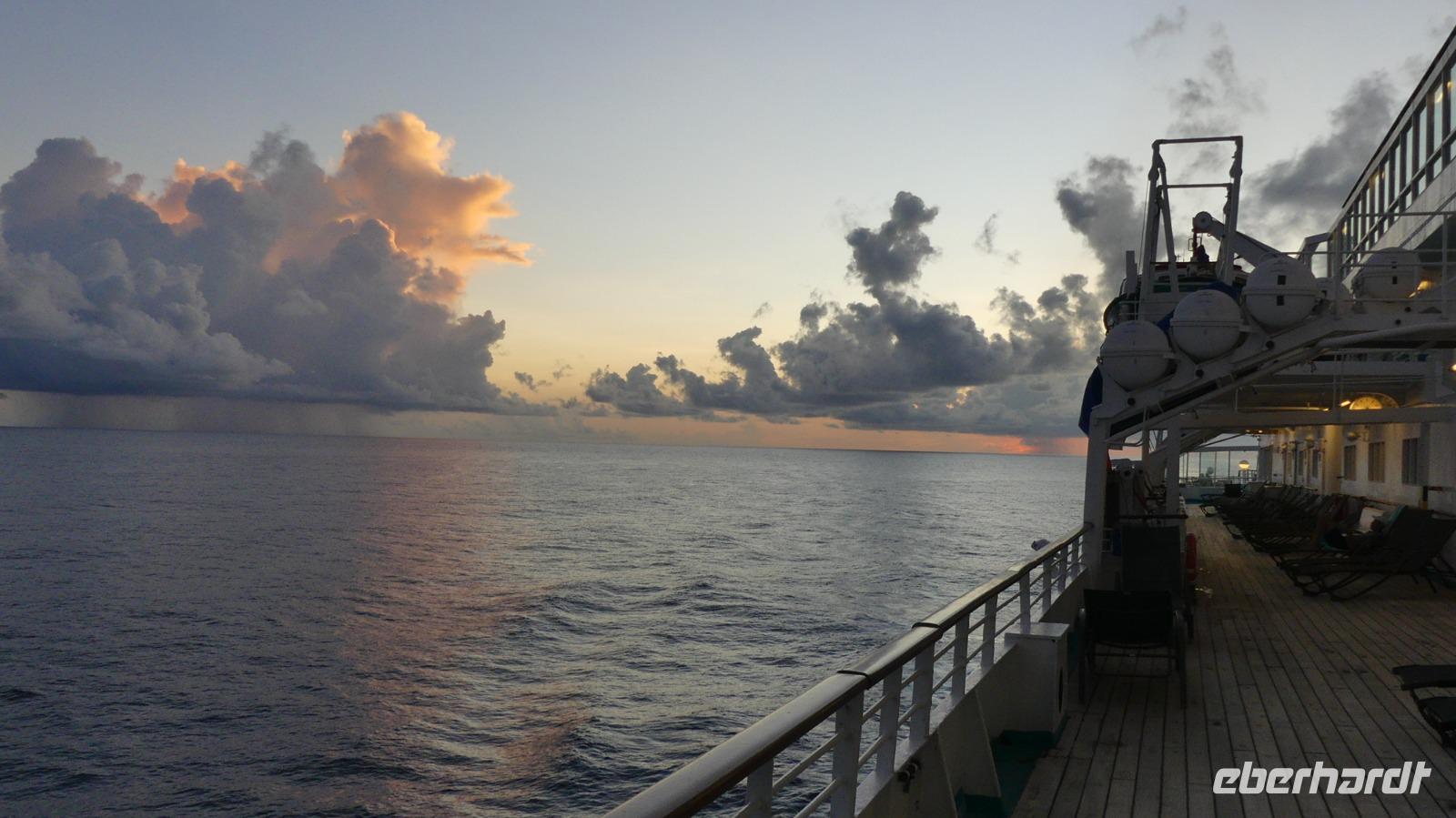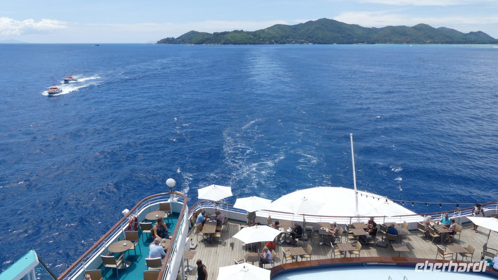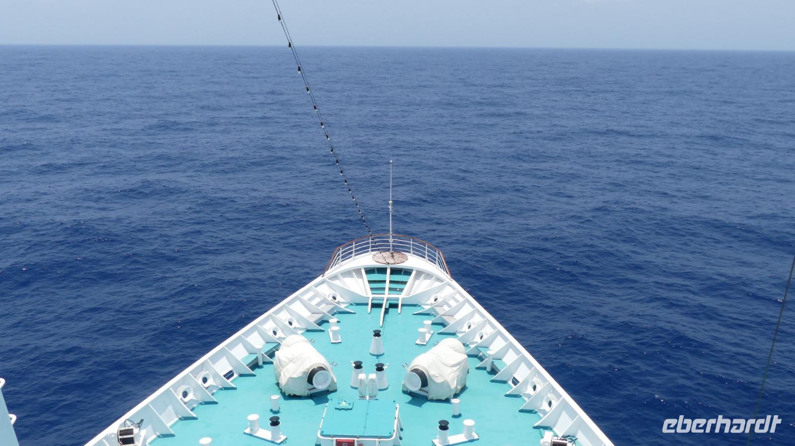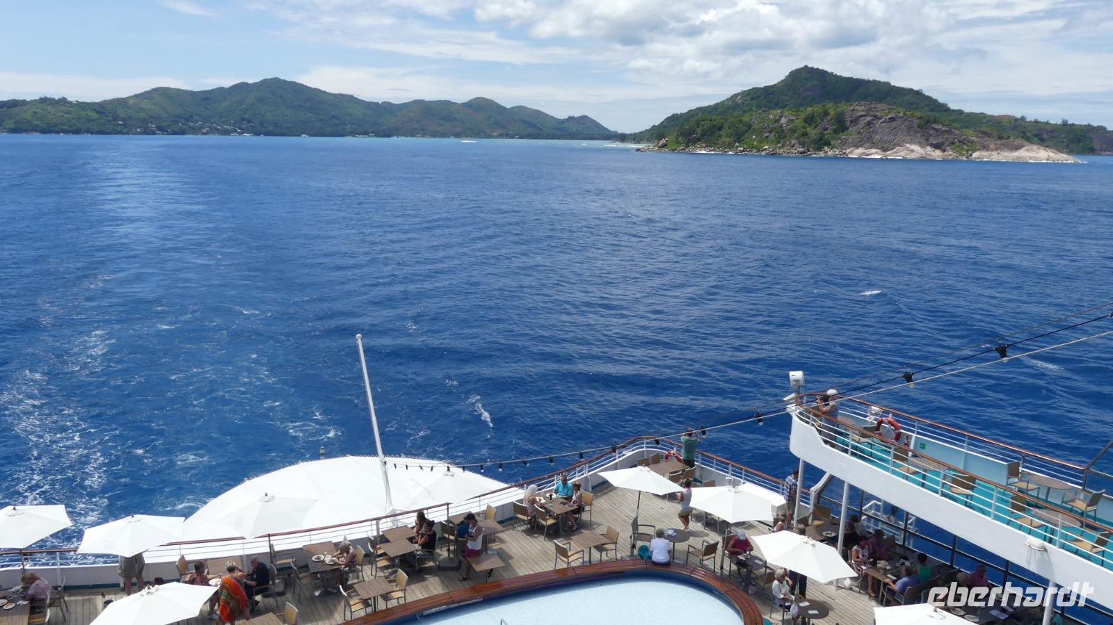 Nach zwei Tagen mit Landgängen freuen wir uns jetzt auf zwei erholsame Seetage, die wir für die 1.600 Kilometer bis zu den Seychellen benötigen.